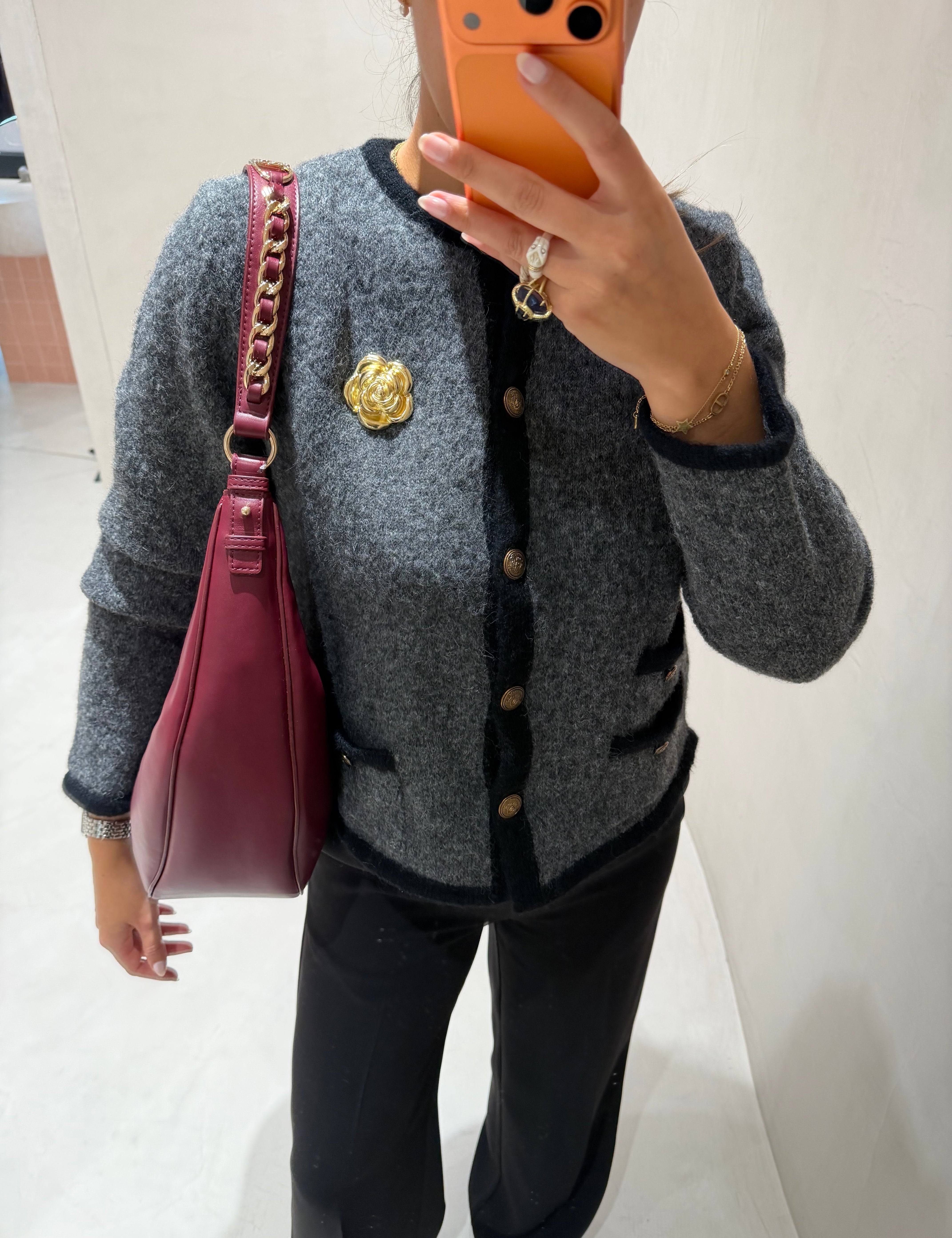Cardigan em Malha de Alpaca Cinza Dulcinea | SEMICOUTURE