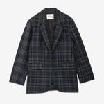 Jaqueta em mistura de lã com estampa xadrez patchwork, corte oversize e fechamento por botão único. O mix de padrões cria um visual moderno e sofisticado, ideal para elevar looks básicos ou complementar produções urbanas. Perfeita para sobreposições estilosas nos dias mais frios.