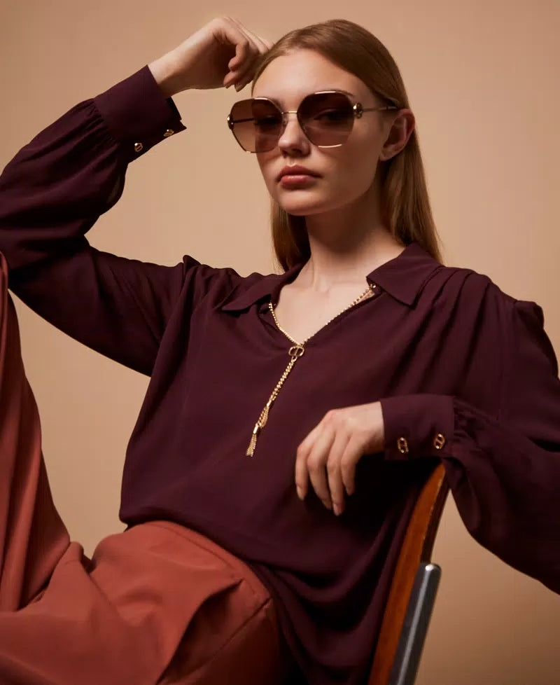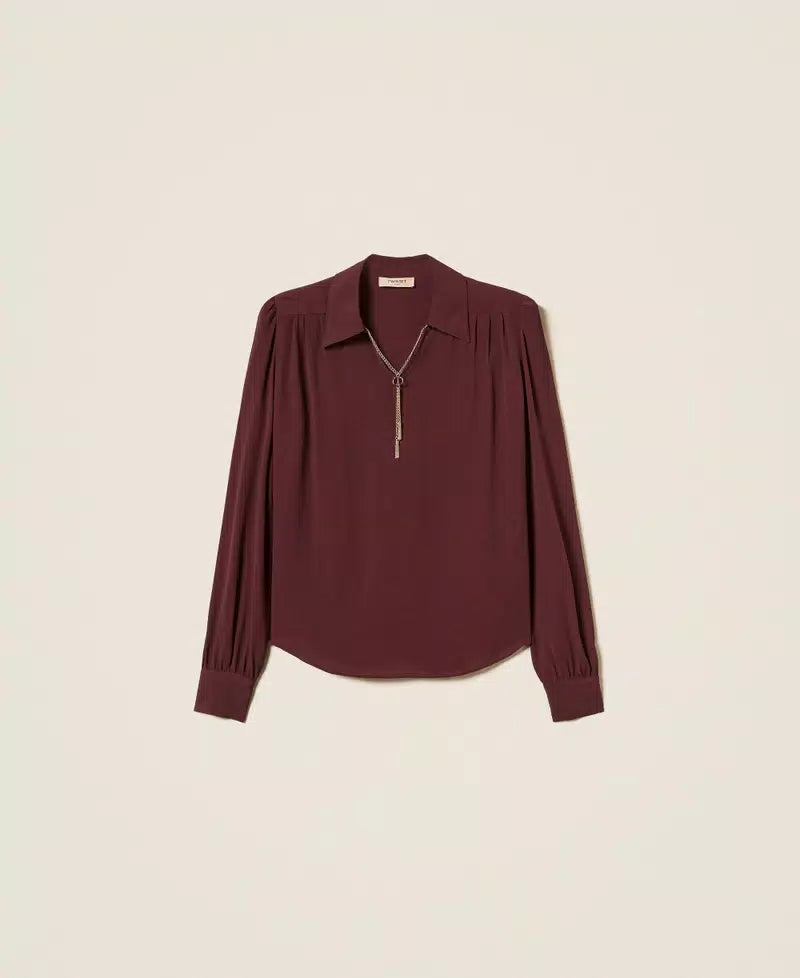 Blusa Bordeuax com Corrente e Franzidos | TWINSET