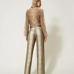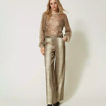 Calça de cetim de perna larga com estampa TWINSET