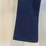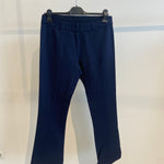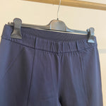 Calça elástica em ponto de Milão, com cintura elástica, detalhe de ponto ao longo da perna frontal.
