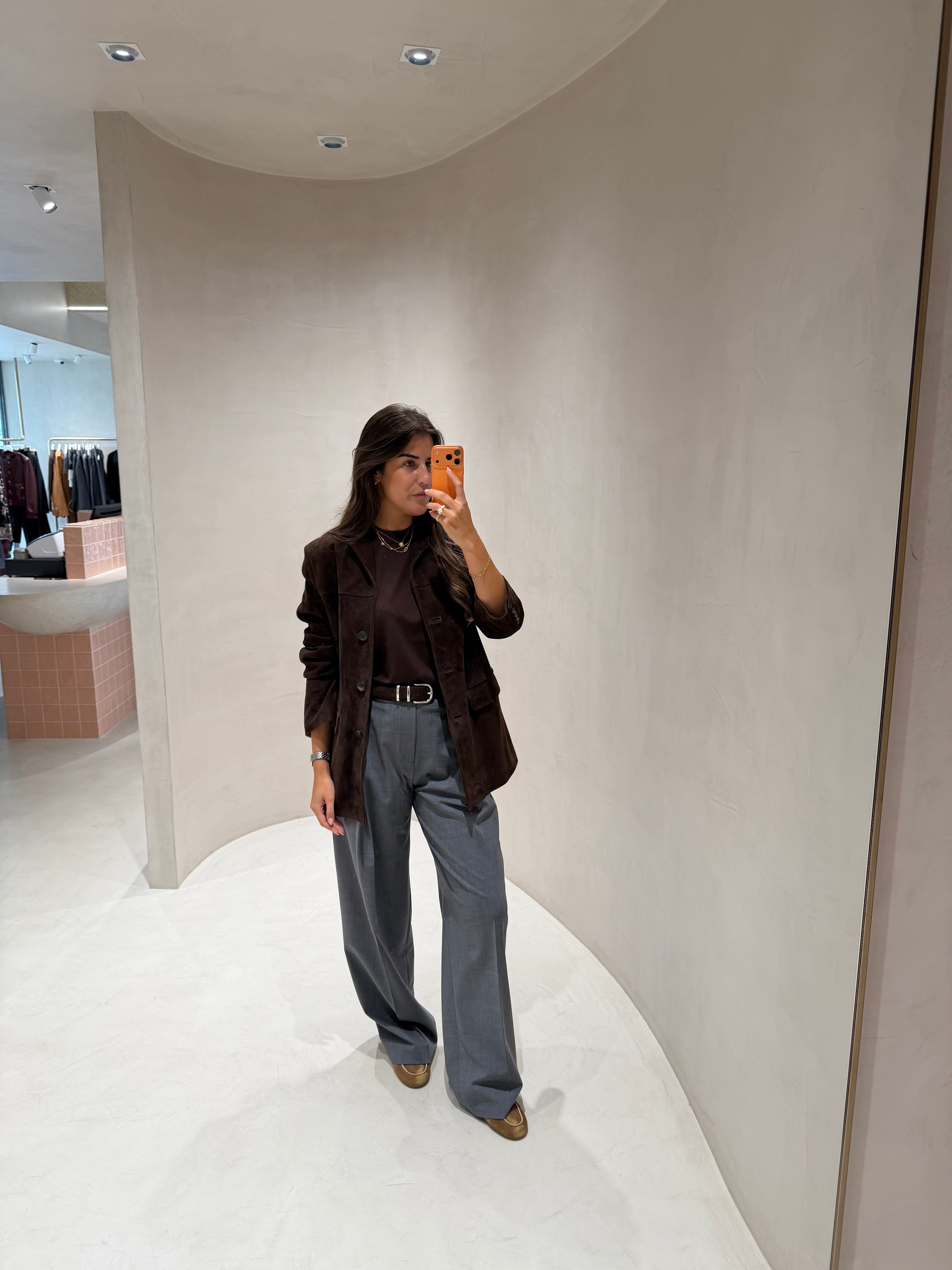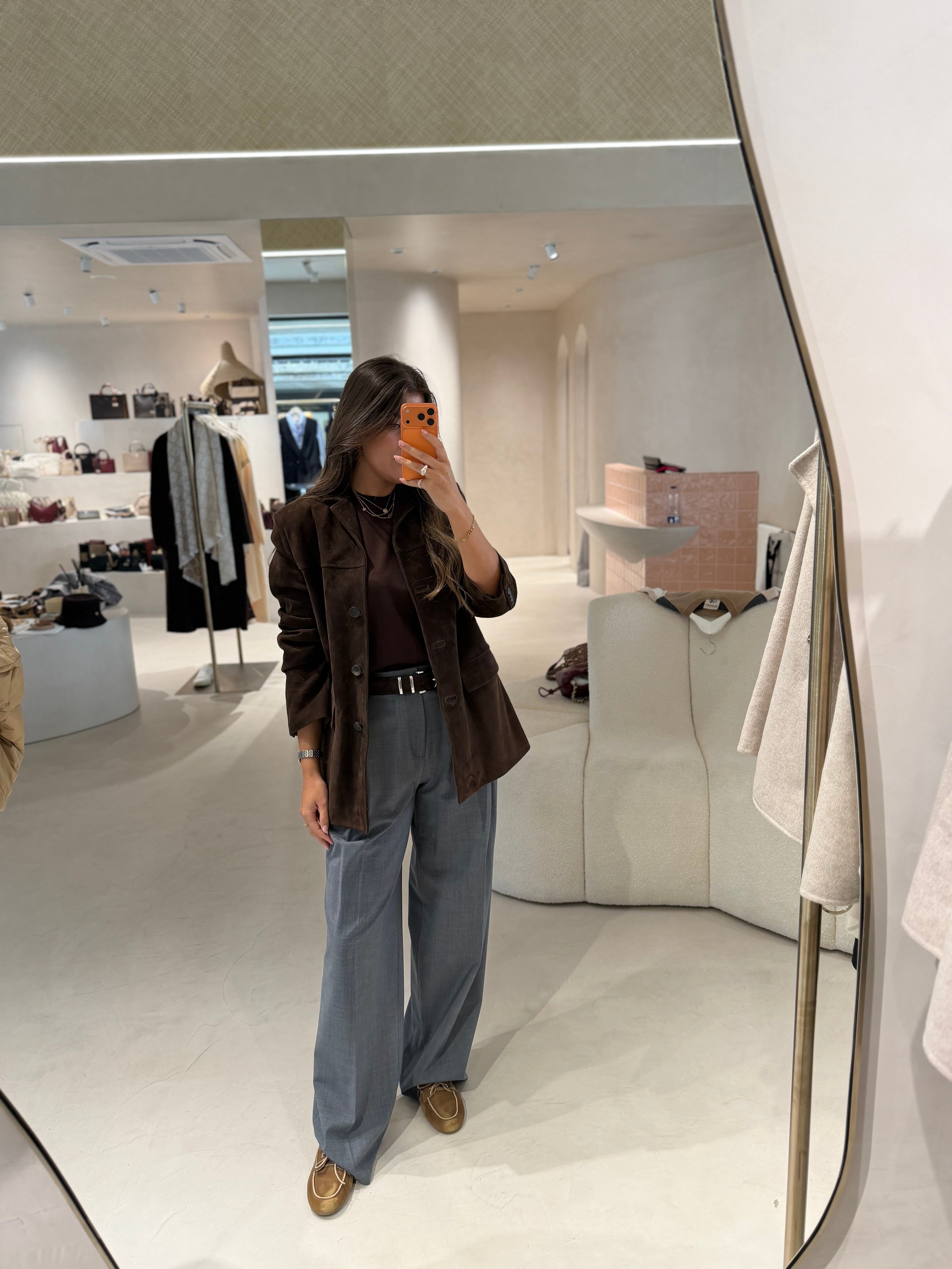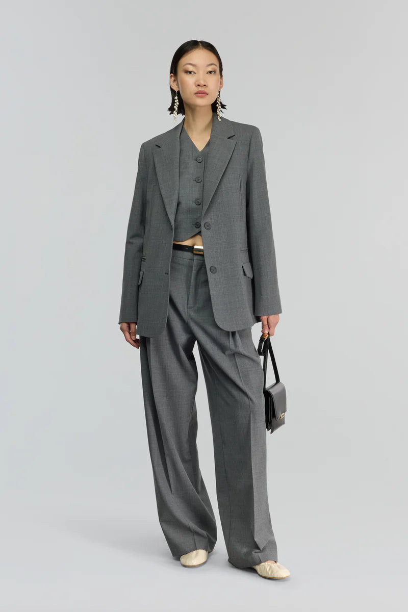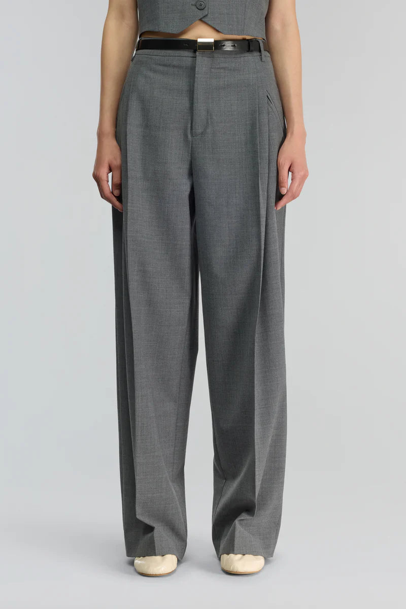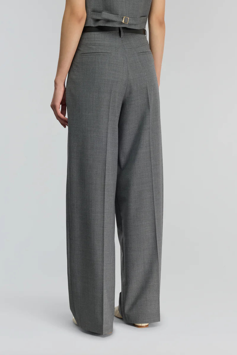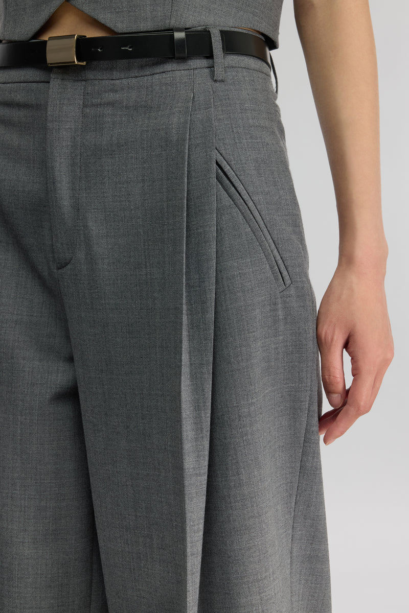 Calças Palazzo Cinza em Lã Stefania | SEMICOUTURE