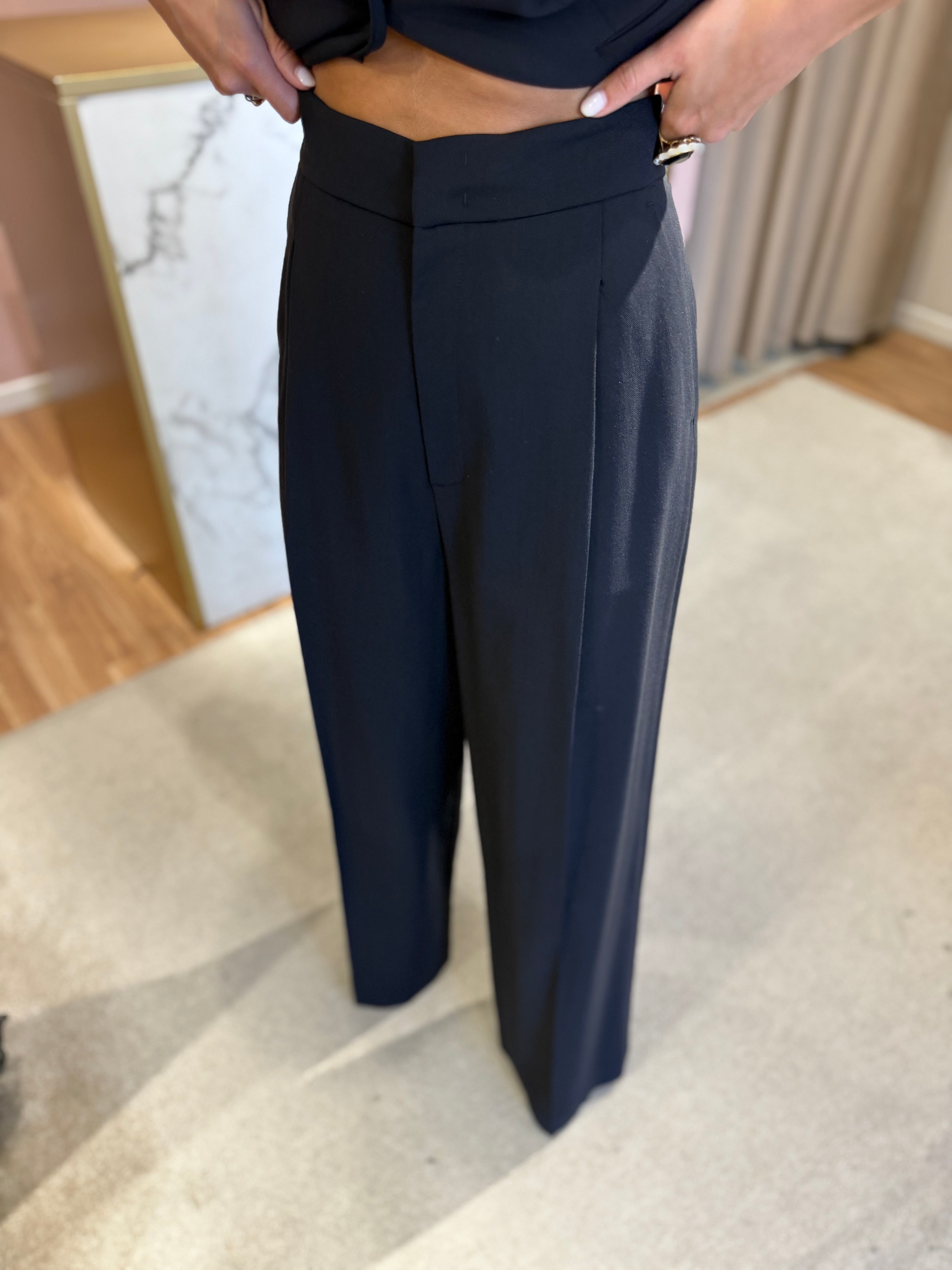 Esta calça Twinset representa elegância e conforto num só modelo. Com corte palazzo e cintura subida, estas calças alongam a silhueta. O design incorpora bolsos laterais, fecho com botão, além de um corte com barra recta que contribui para um visual clássico e refinado. Como acabamento a assinatura da marca, o modelo inclui botão de pressão e logótipo metálico.