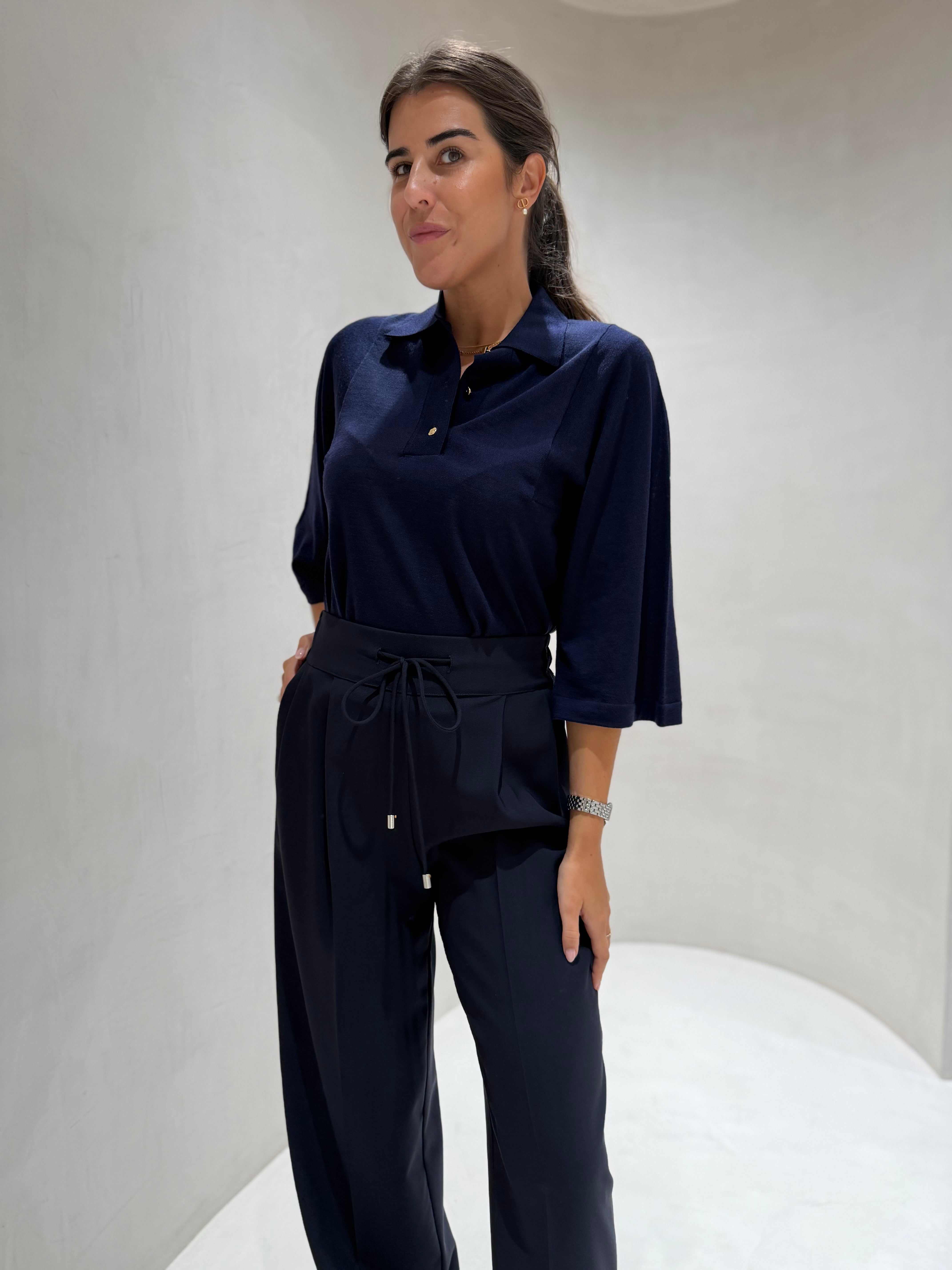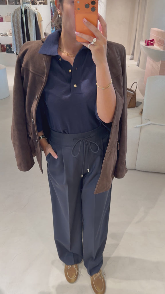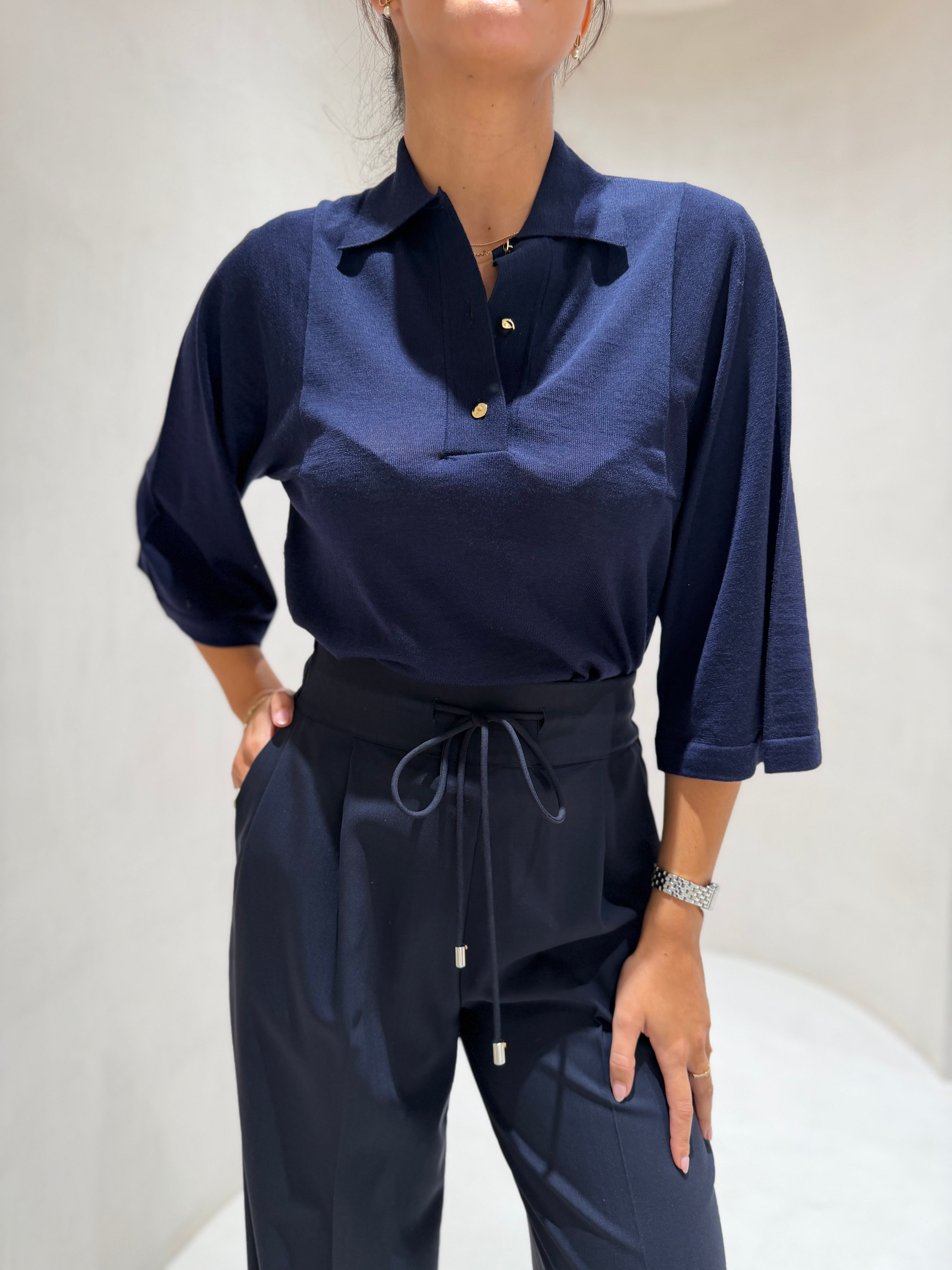 O Libby Sweater da Liviana Conti eleva o básico com detalhes refinados: malha 100% lã merino extra-fina em tom Night, gola de camisa, botões parciais e mangas três-quartos que equilibram elegância e conforto. O comprimento até o quadril permite combinações versáteis com calças de cintura alta ou saias midi, ideal para looks sofisticados no dia a dia ou para um encontro à noite.