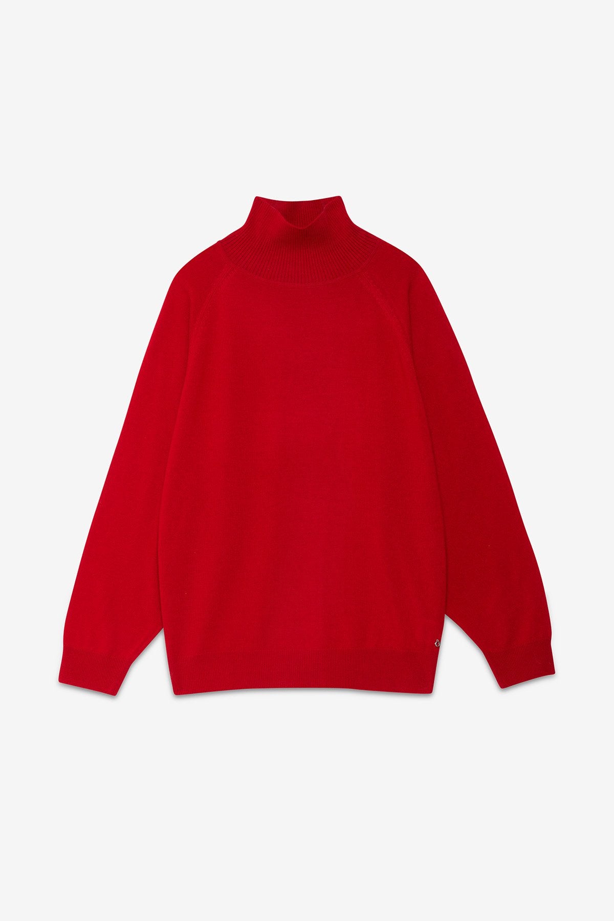 Camisola em Lã Merino Vermelha de Gola Alta | ottod'ame