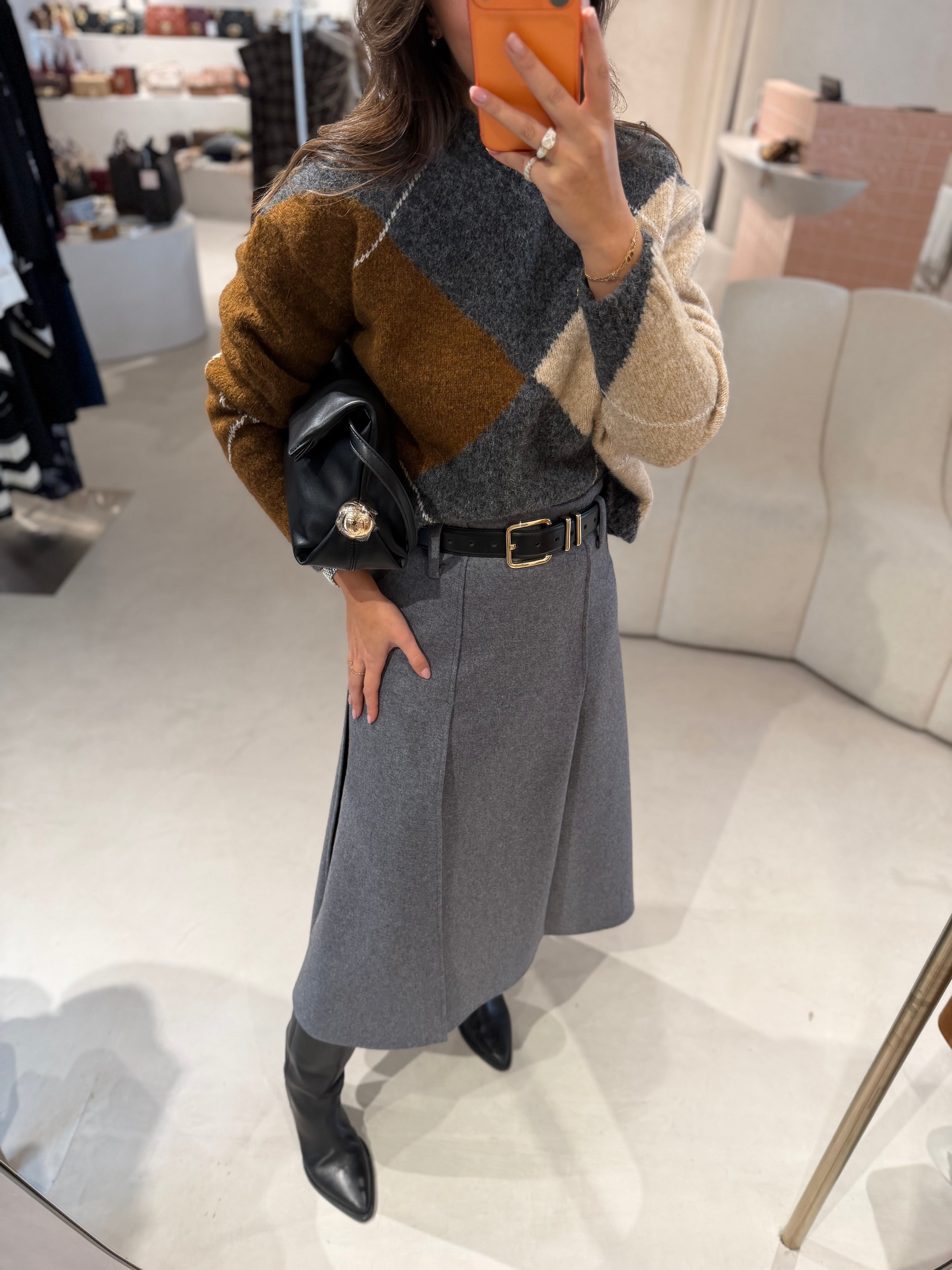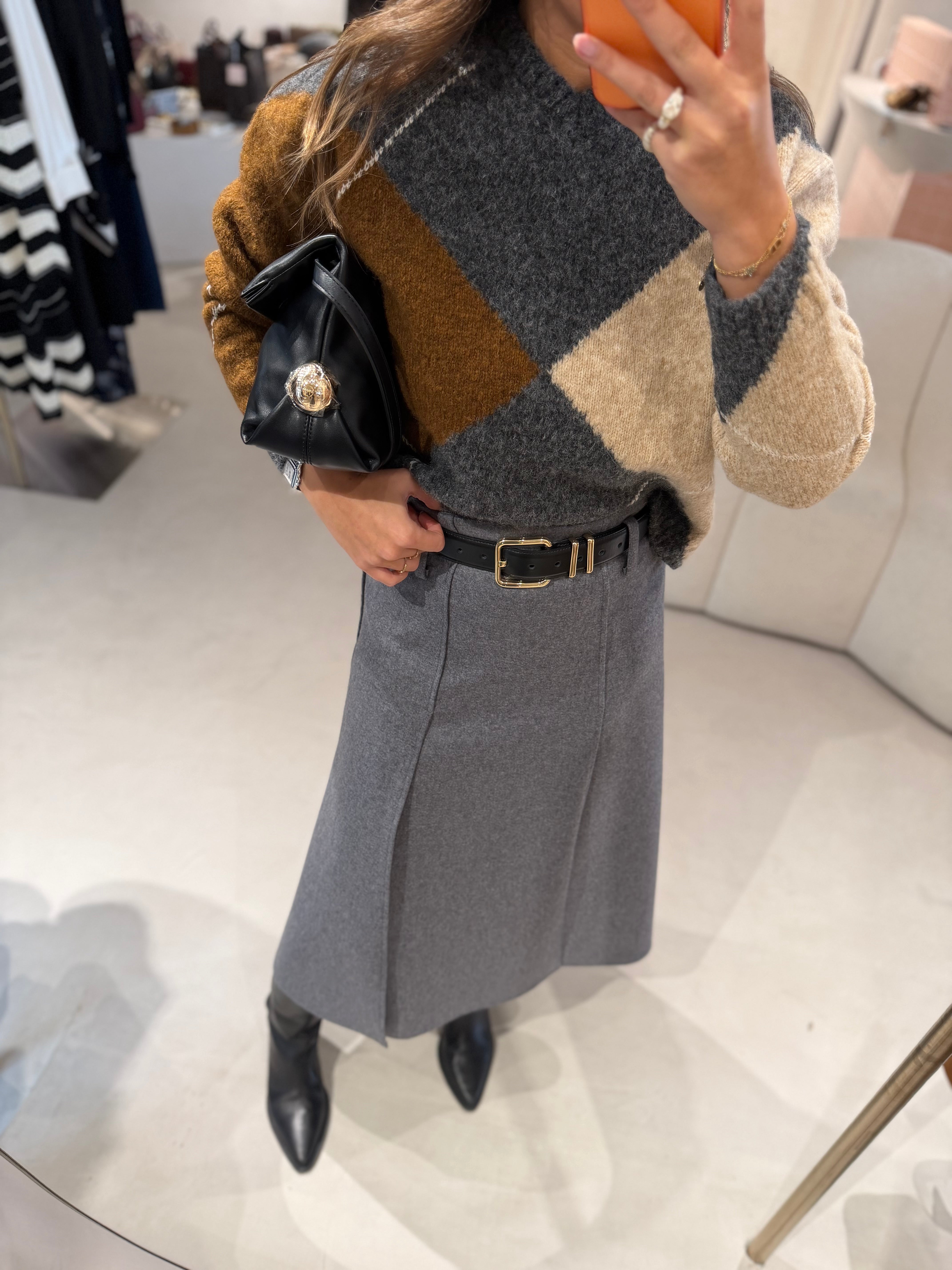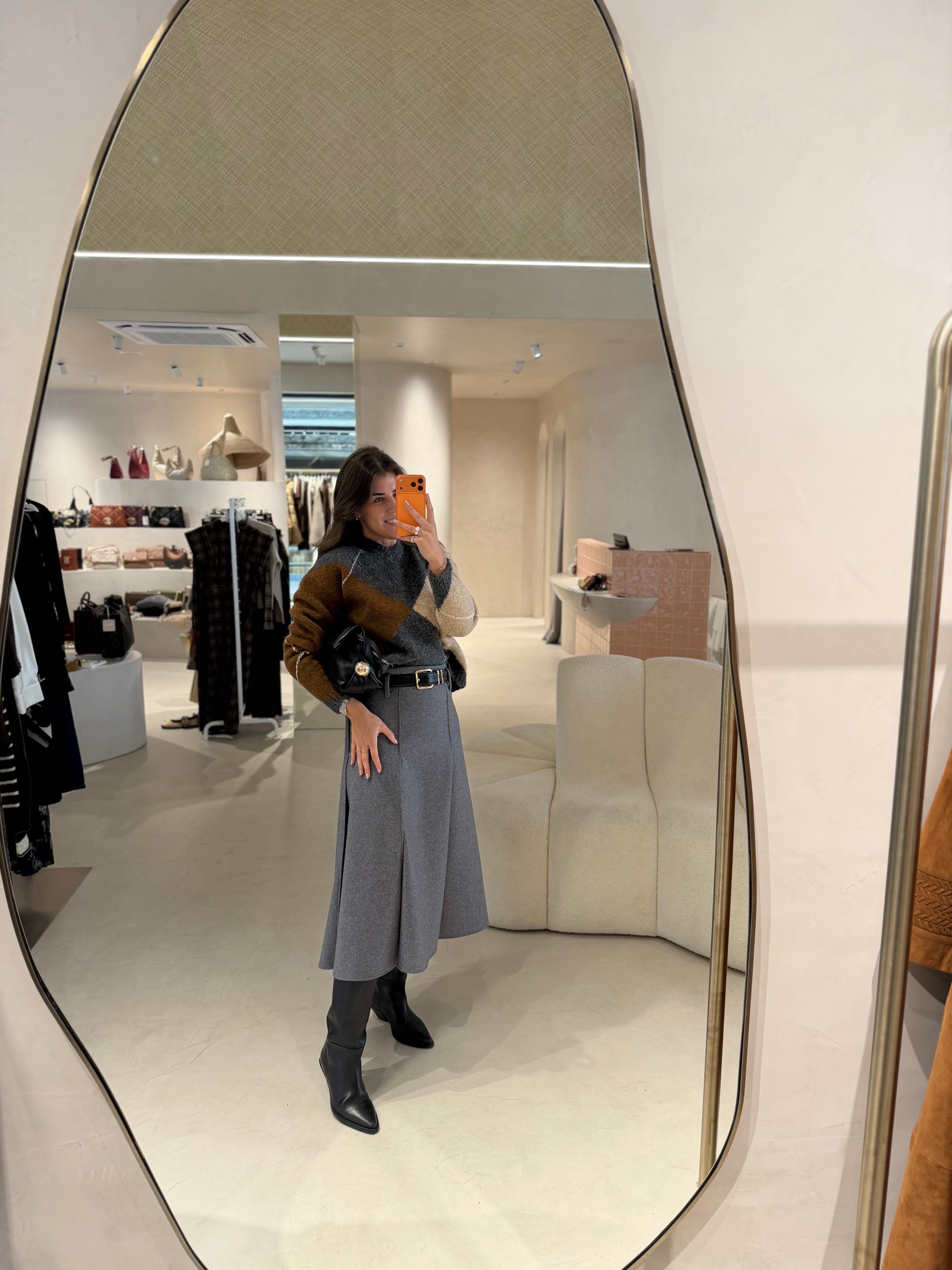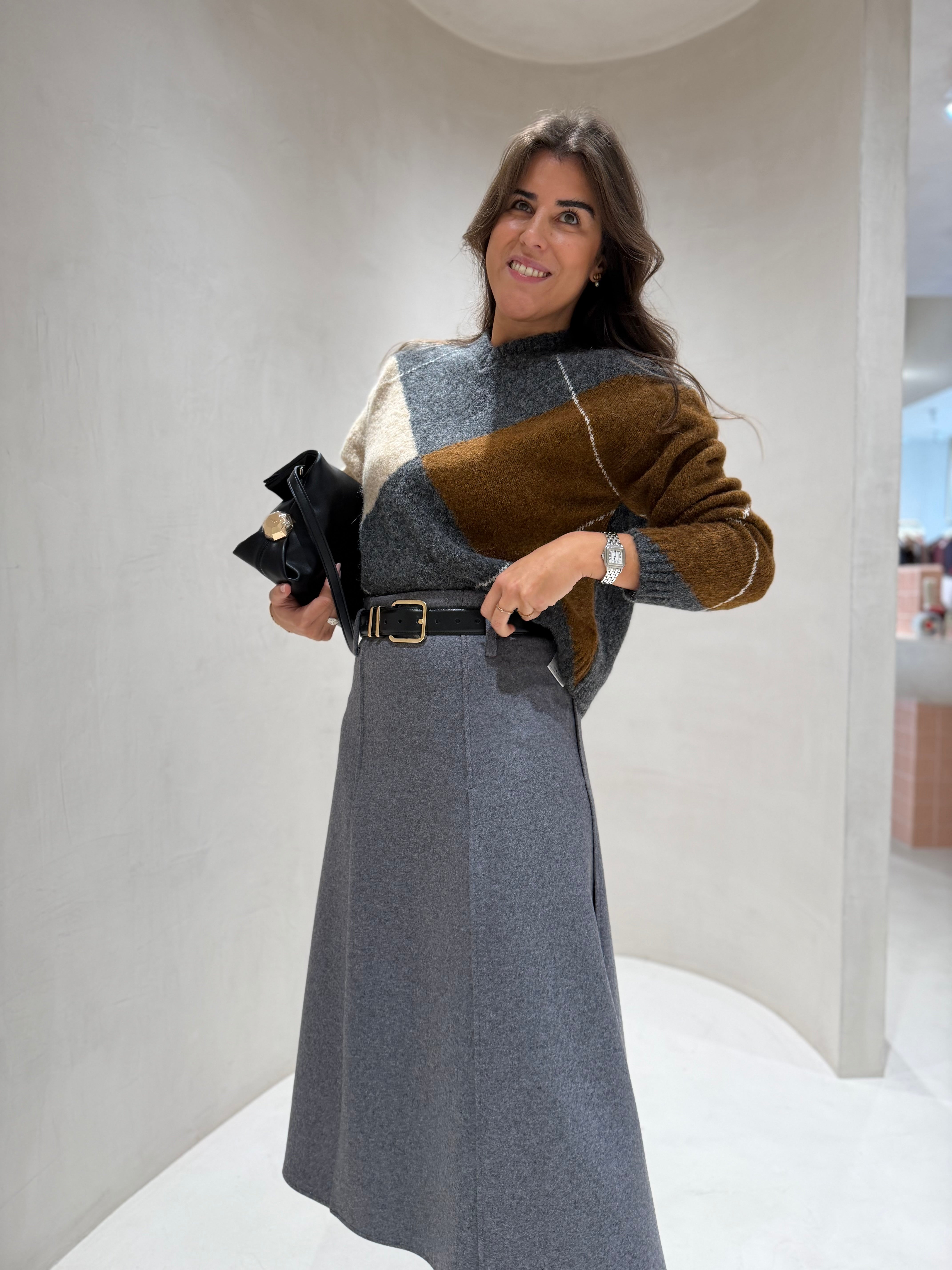 Camisola Oversized em Mistura de Alpaca Cinza e Camel Gaston | SEMICOUTURE