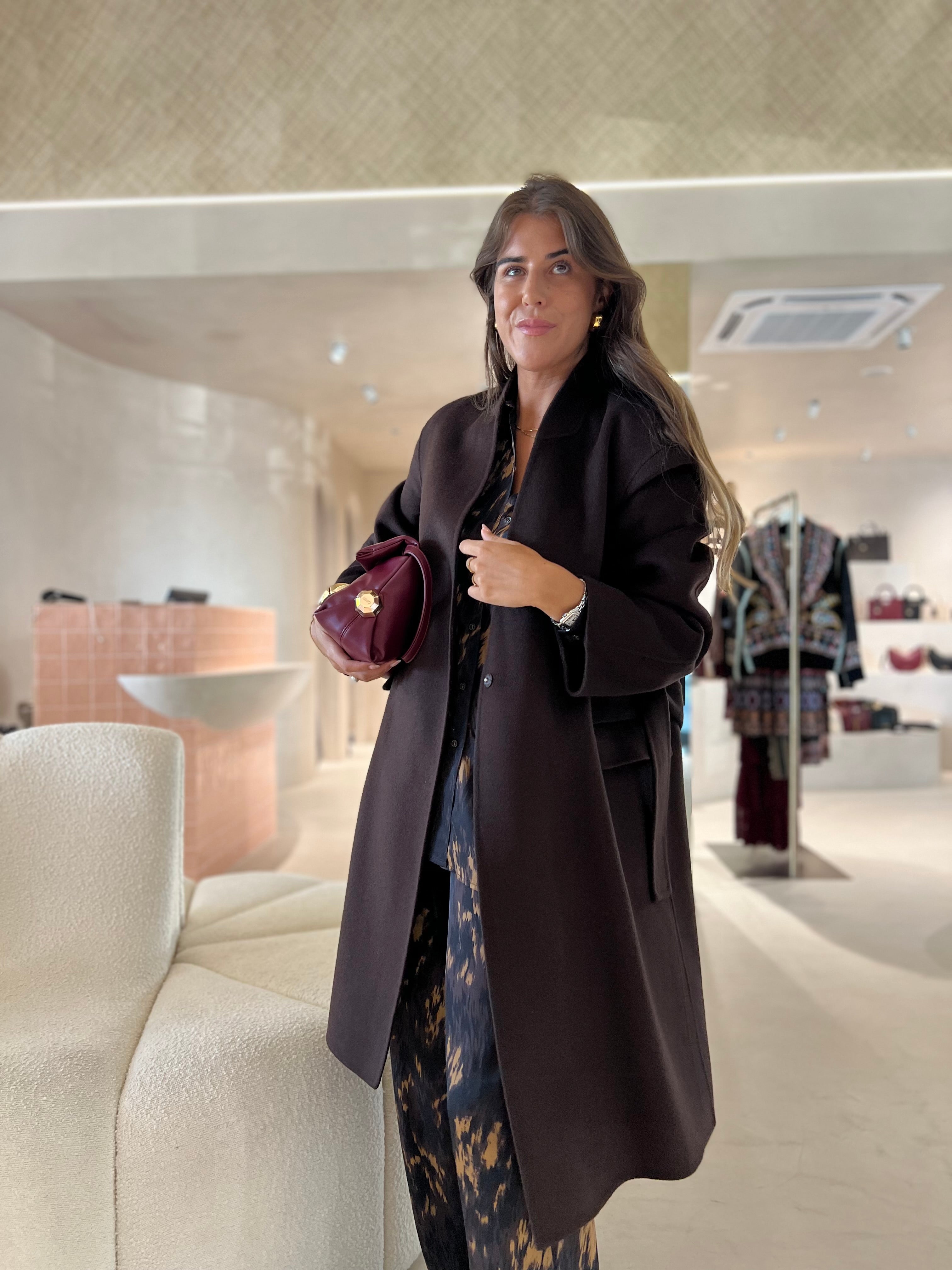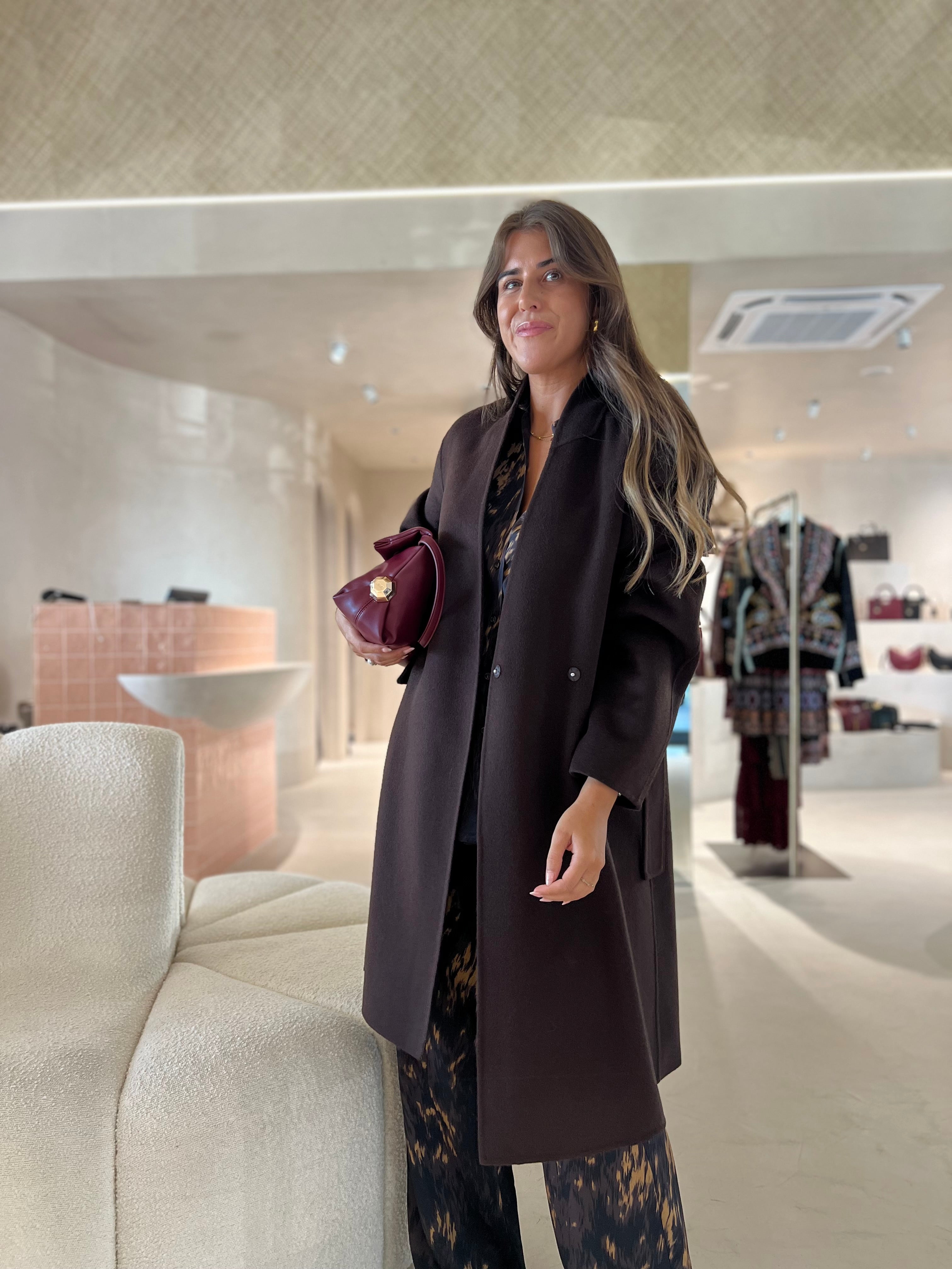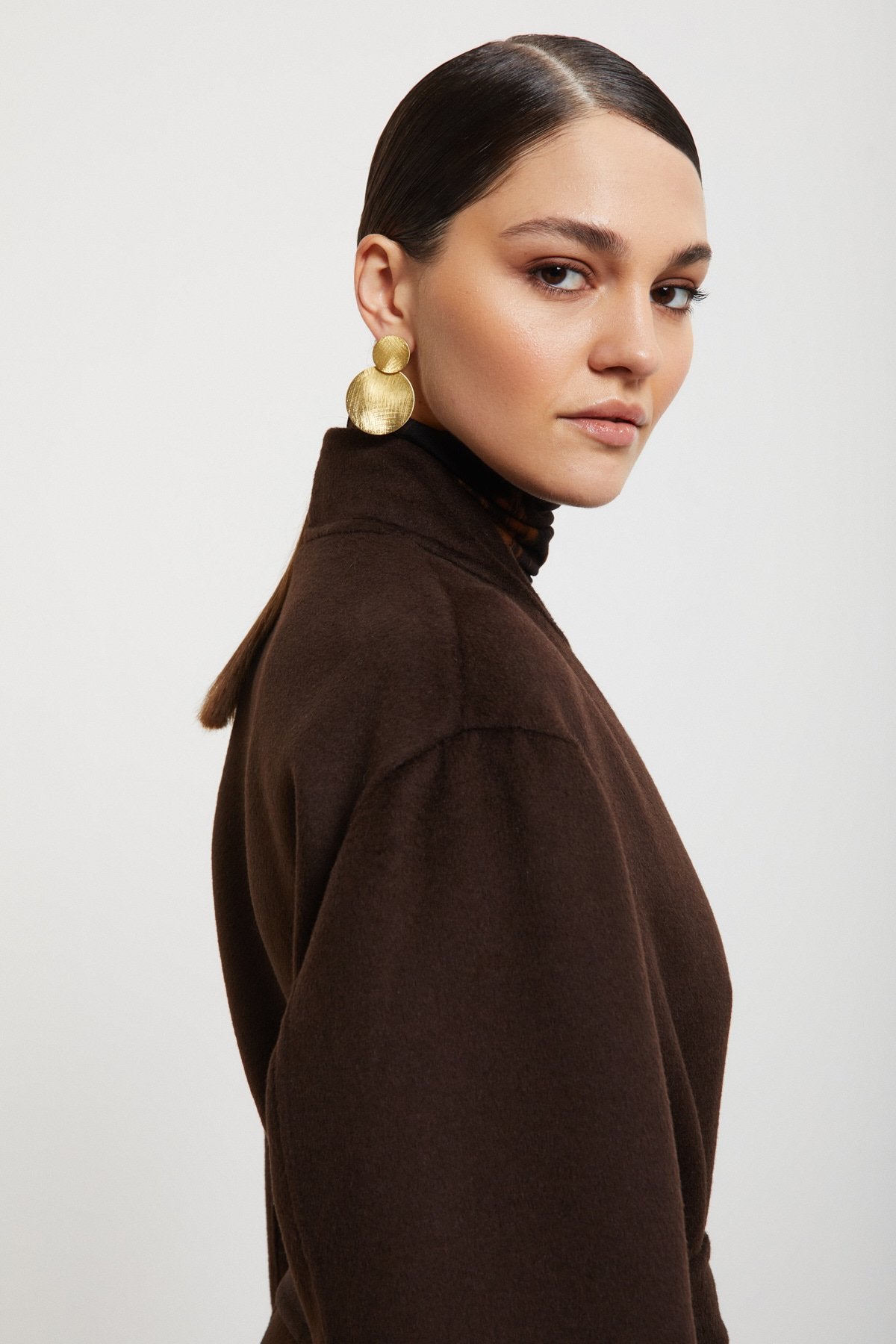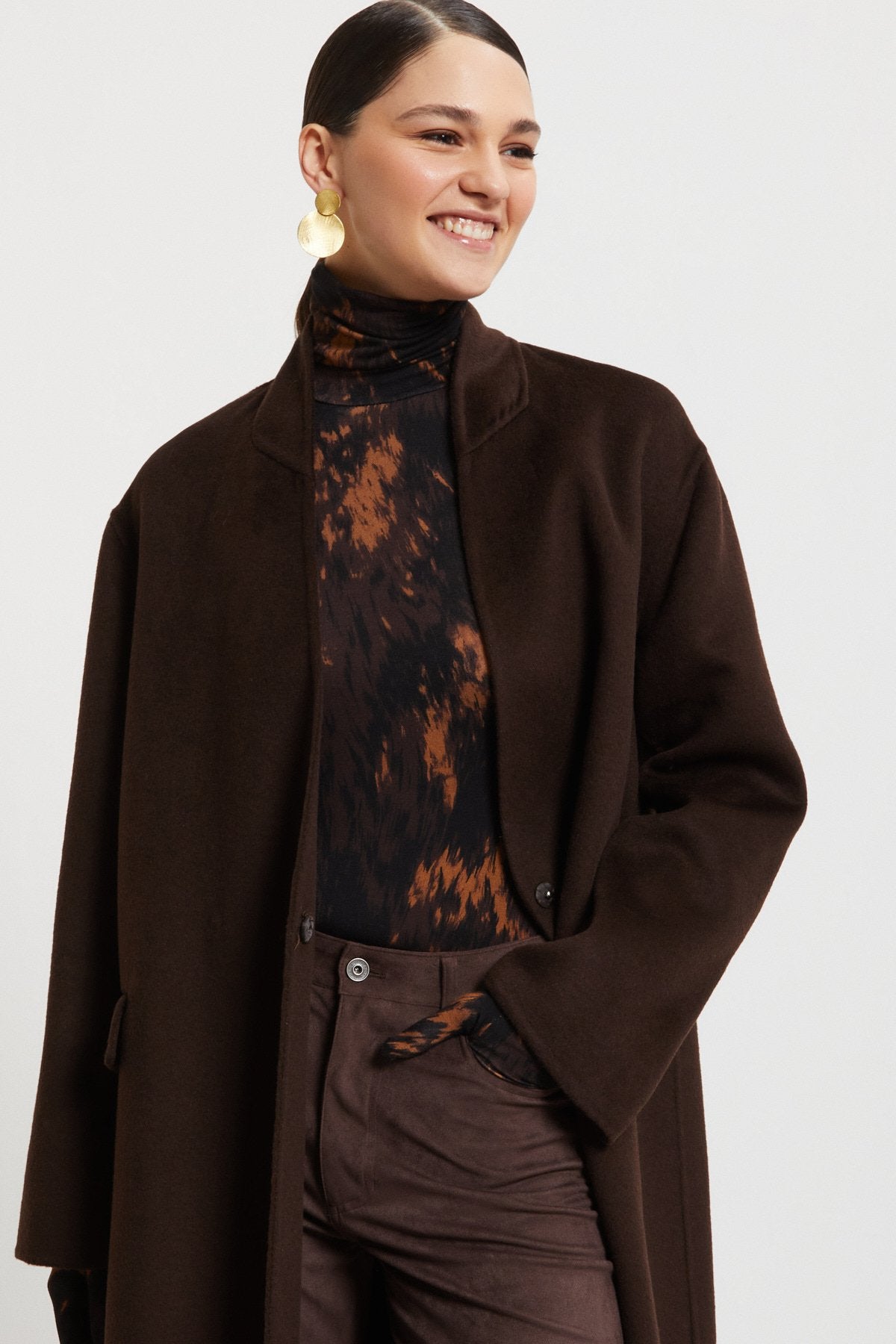 Casaco Midi Castanho em Fazenda de Lã com Cinto | ottod'ame