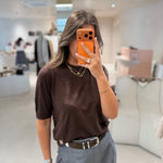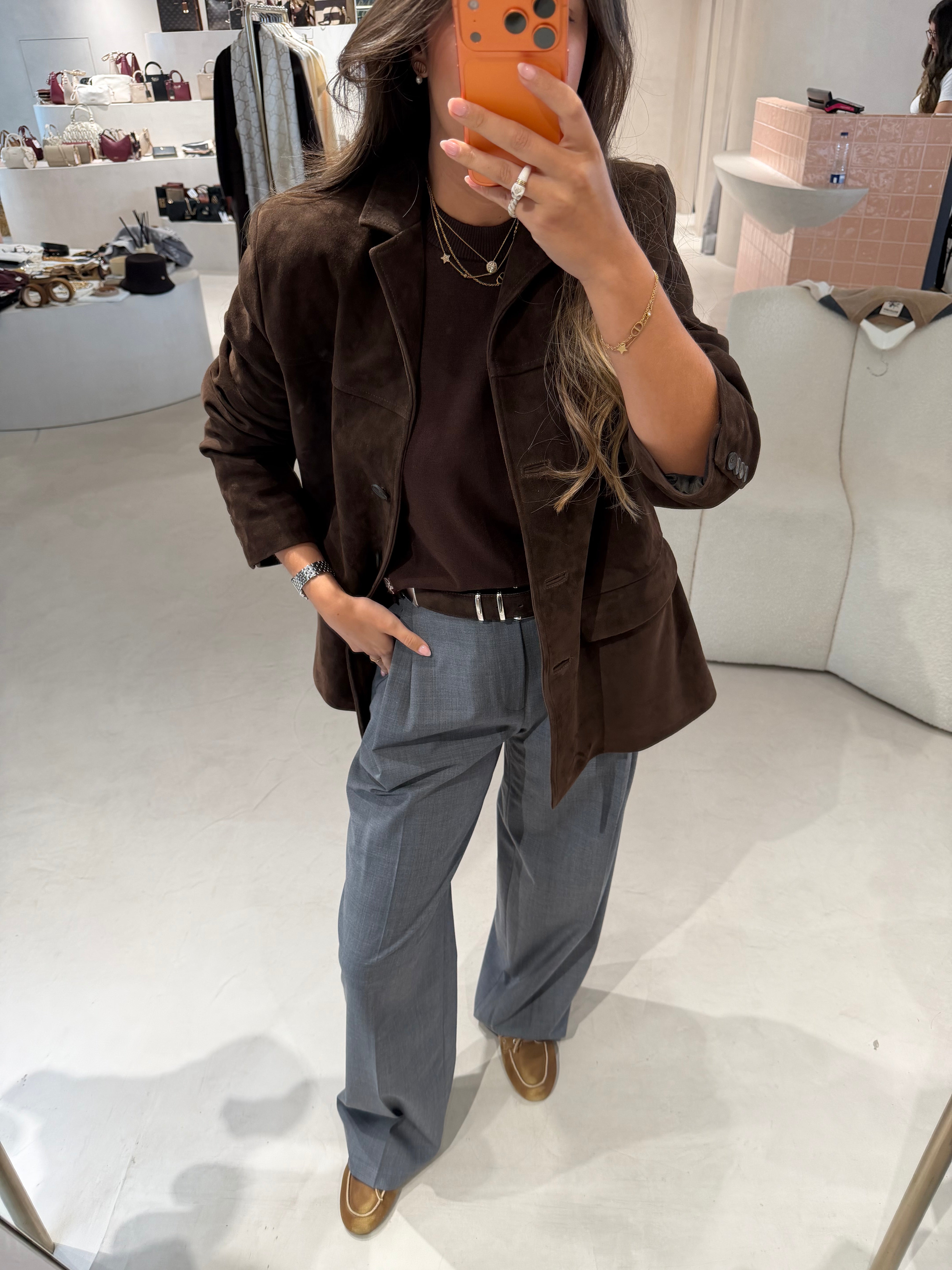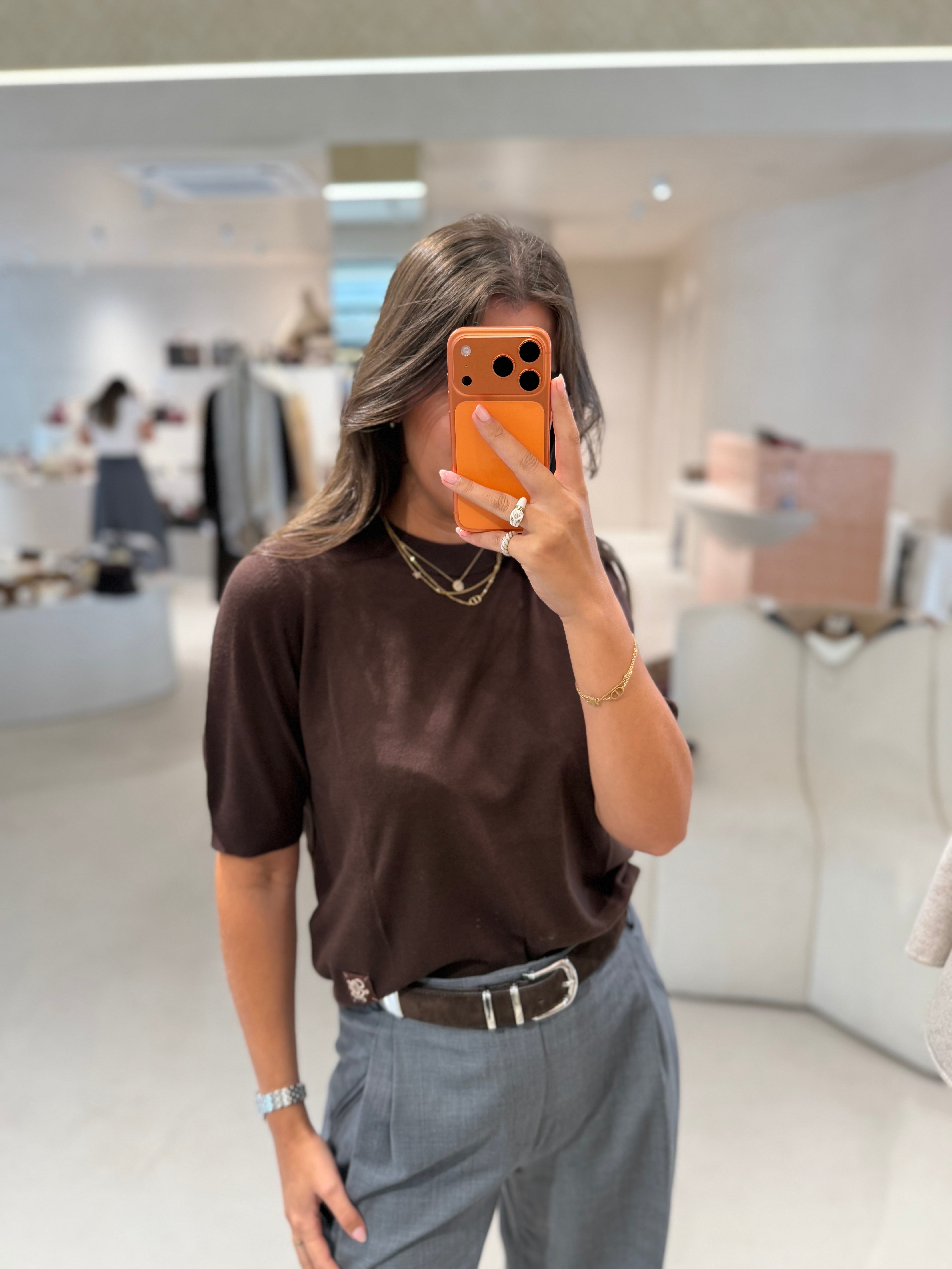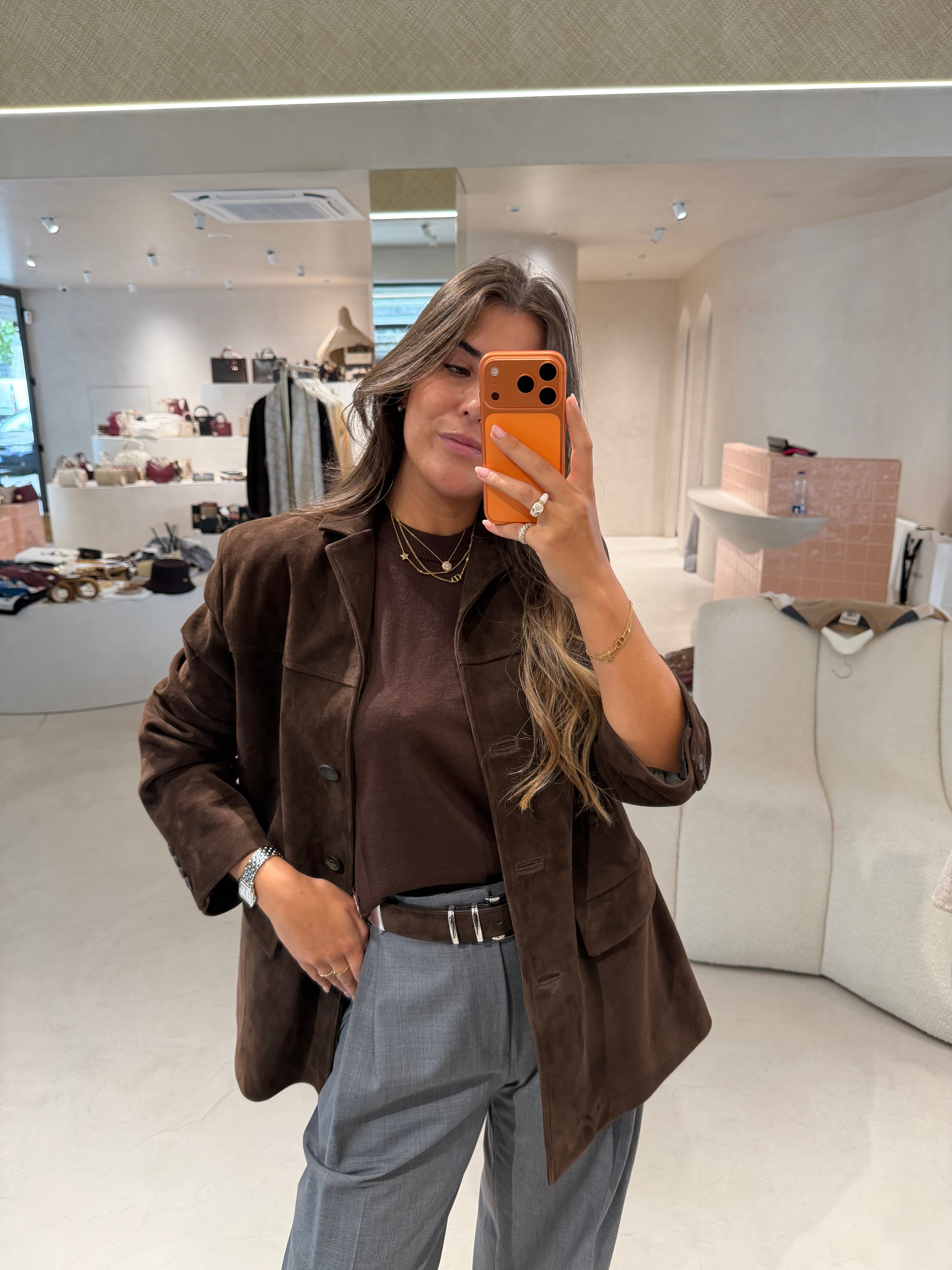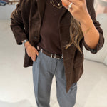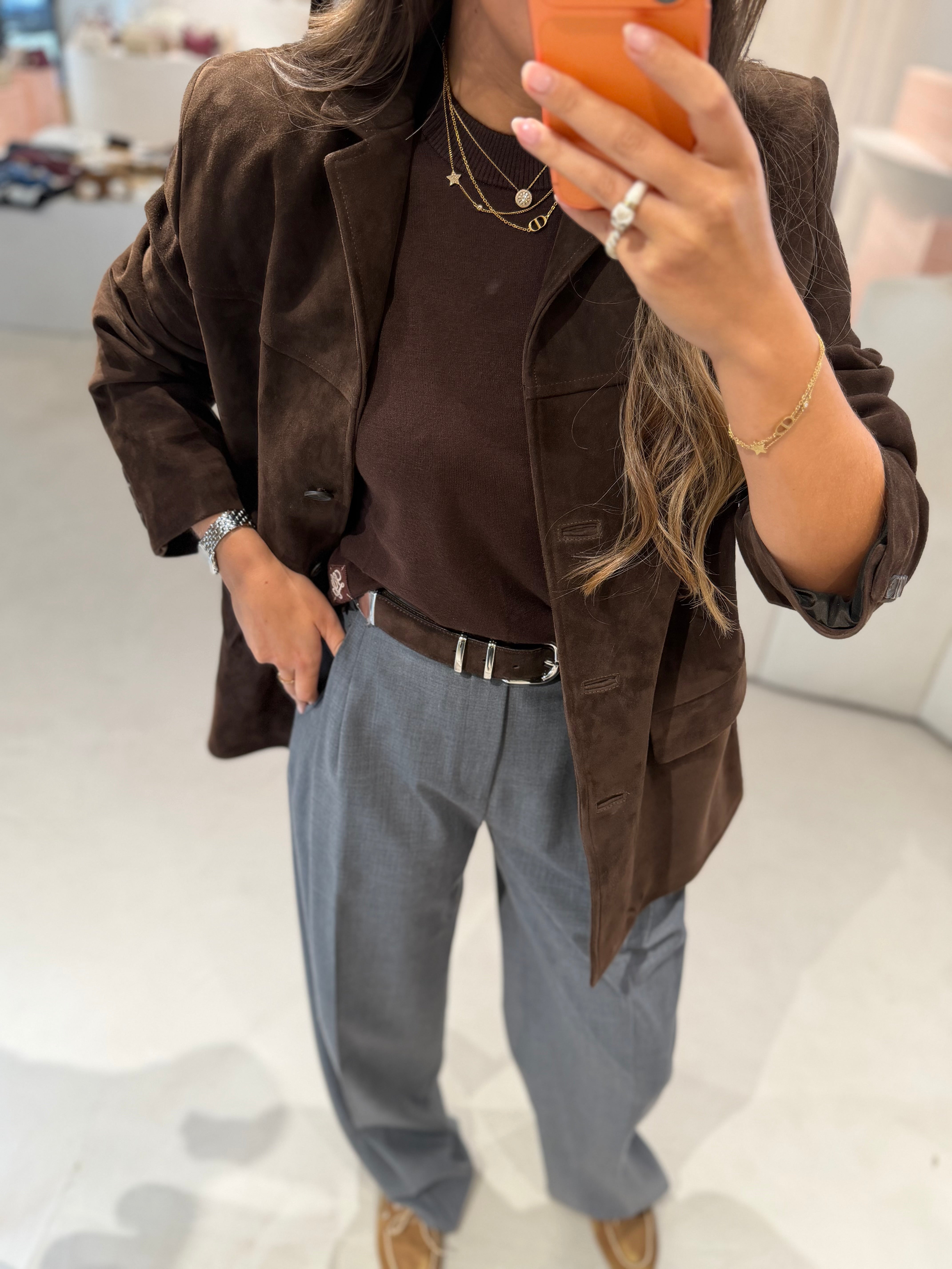 Cinto em Suede Castanho com Fivela Prateada | Liviana Conti