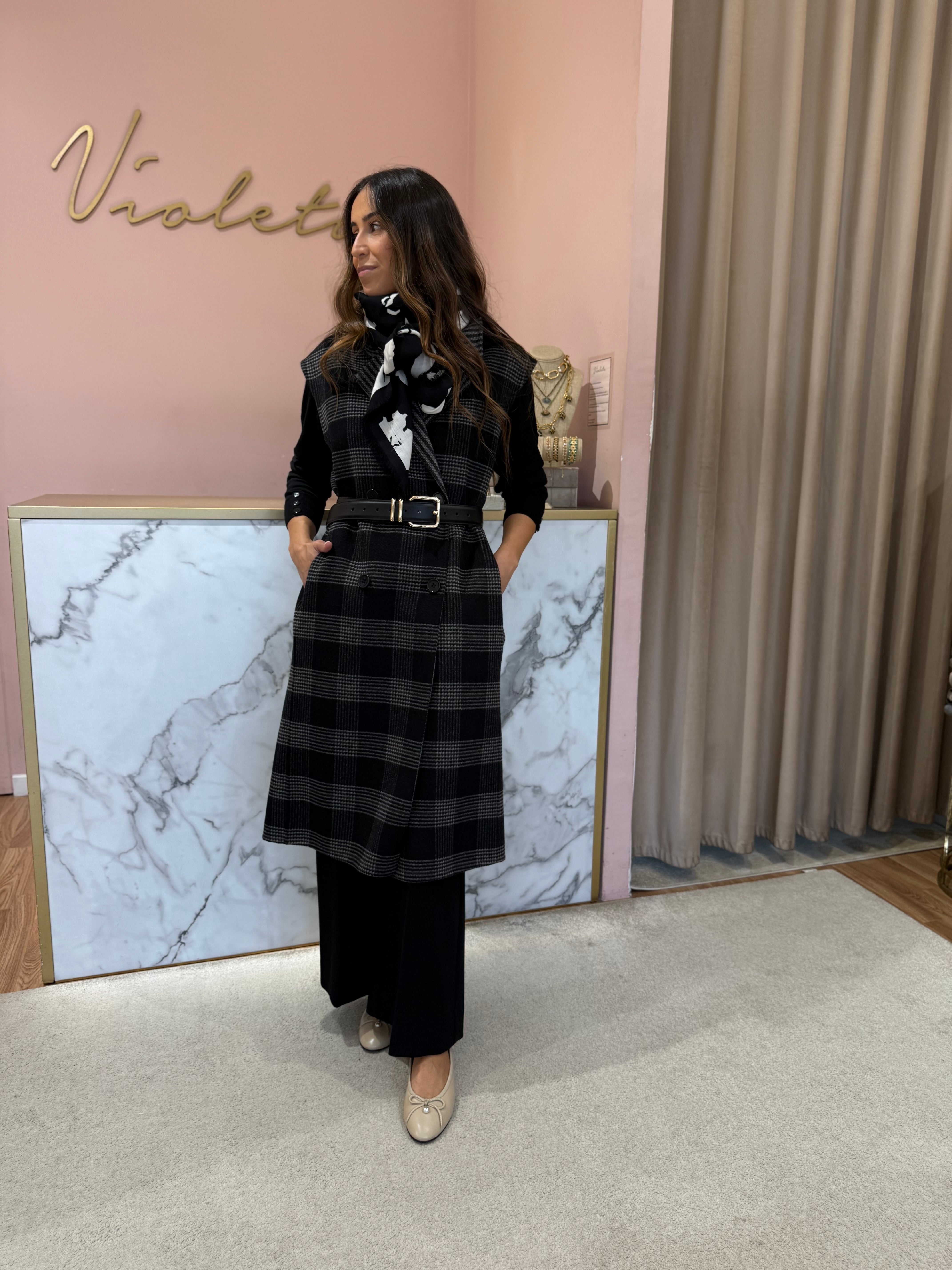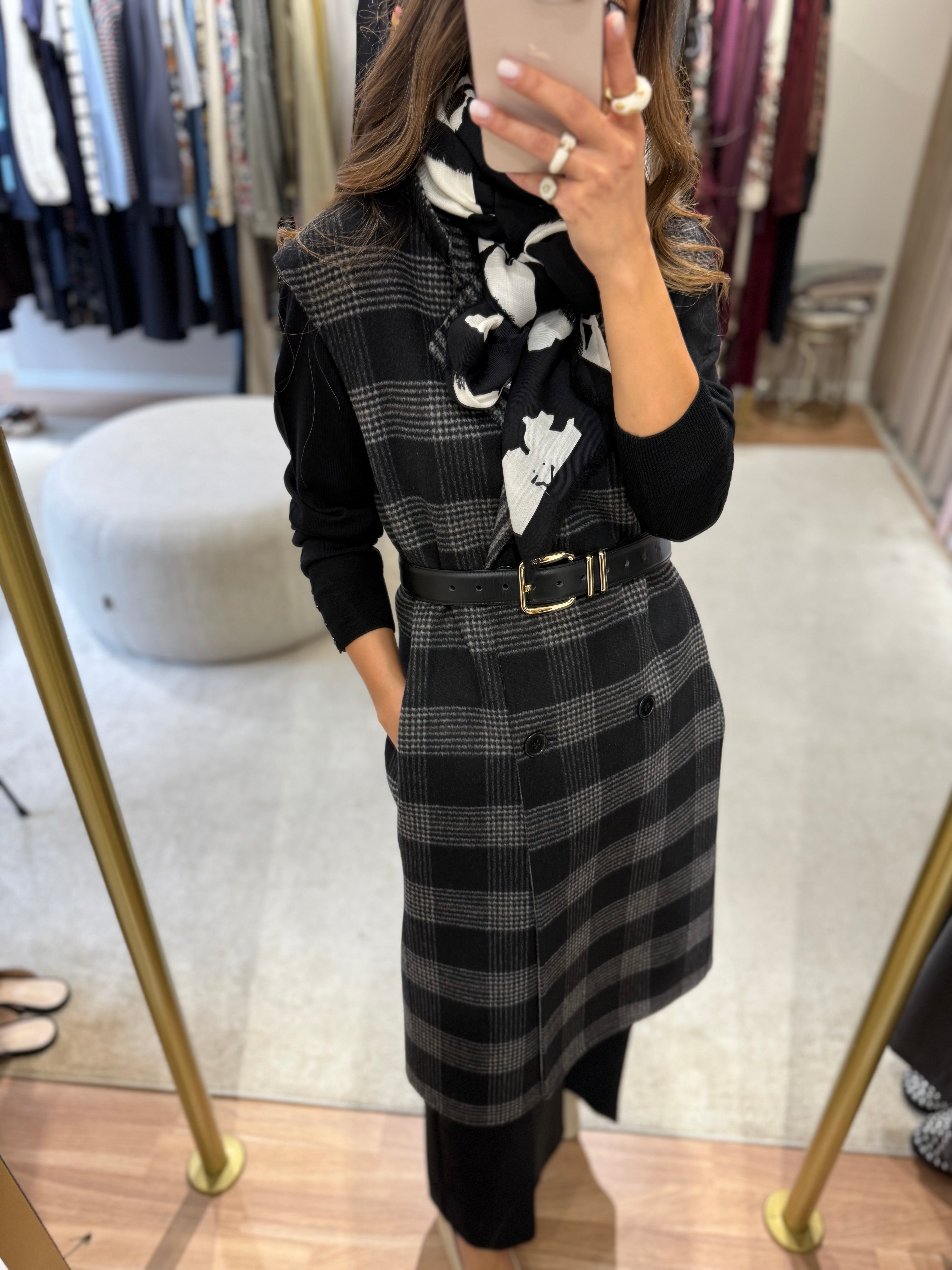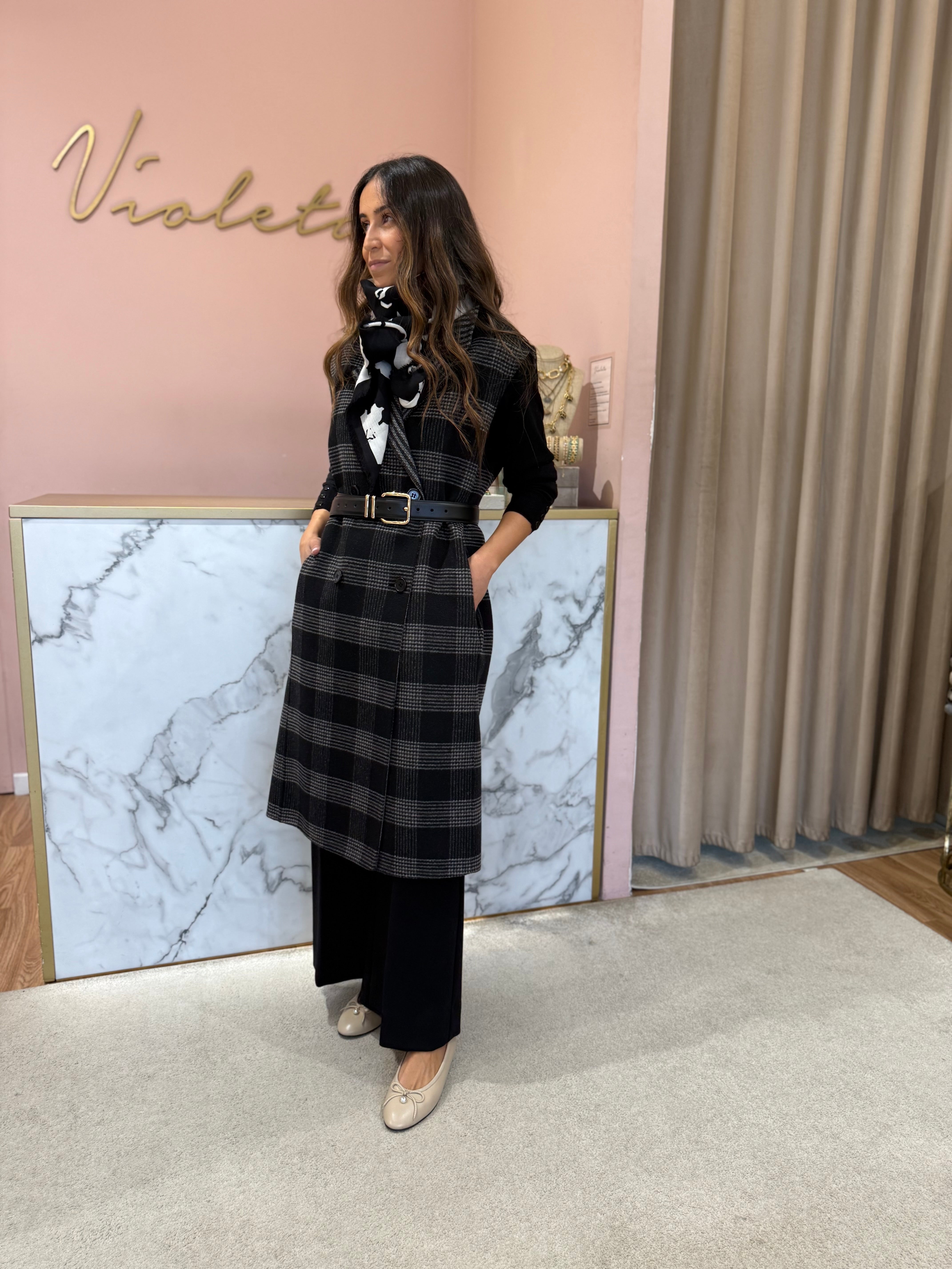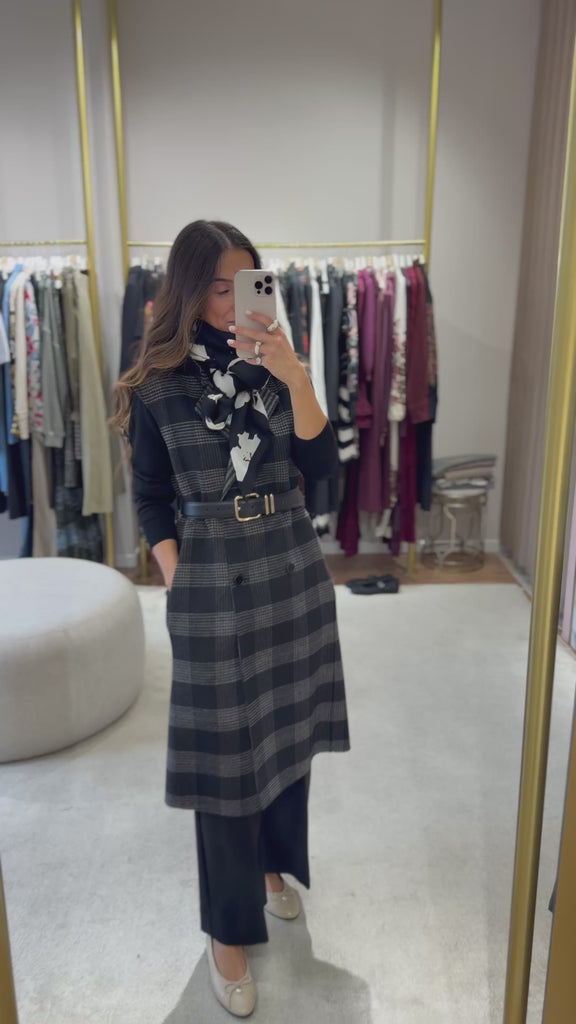 Este colete Twinset reversível combina dois estilos num só: um lado liso, outro xadrez — ideal para mudar o visual conforme o teu mood. Confeccionado em tecido duplo de lã com detalhes modernos, oferece um corte oversize elegante e lapelas clássicas. Leve, sem forro e em dois padrões distintos, é a peça statement para estares estilosa durante todo o outono/inverno.