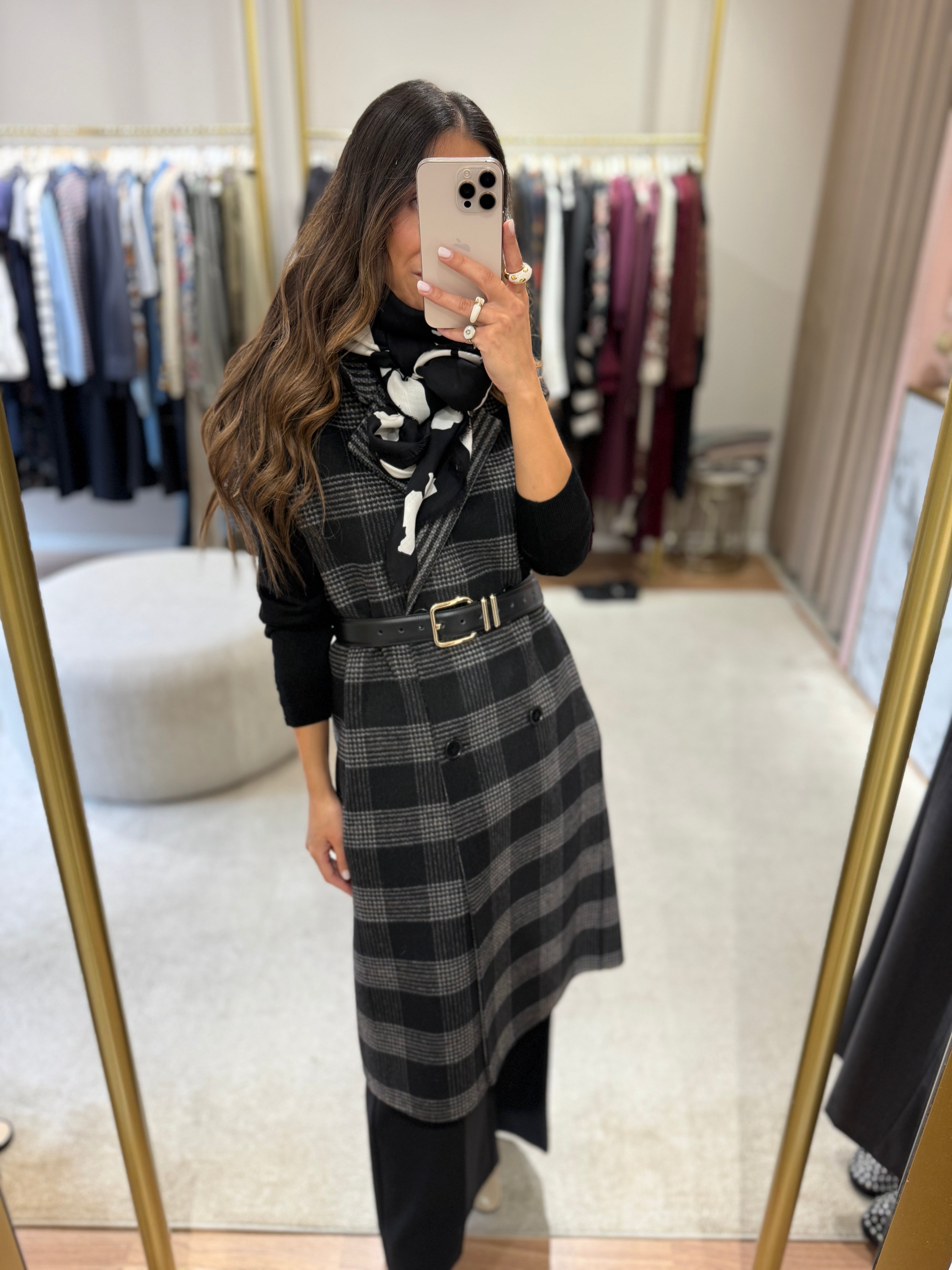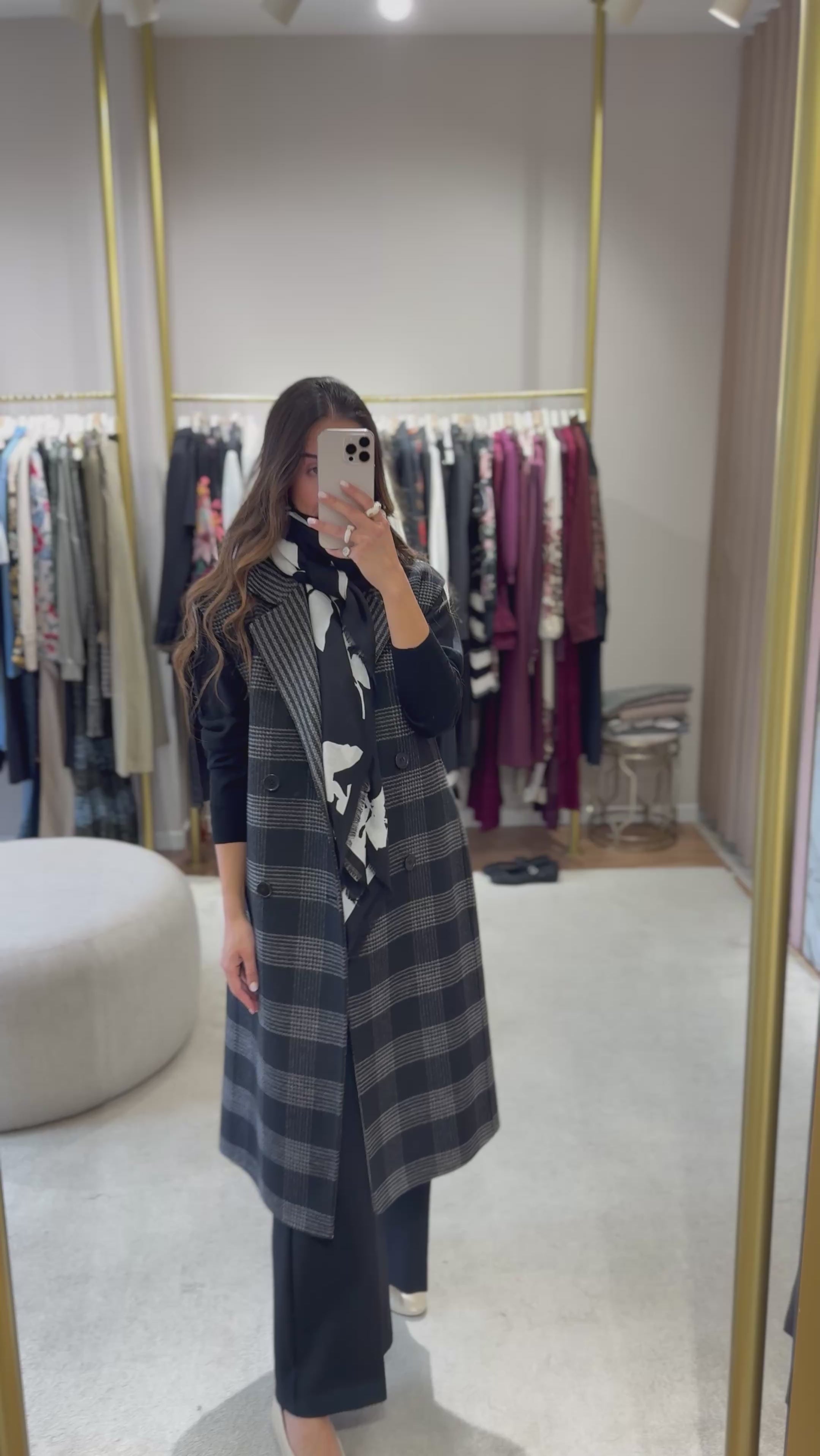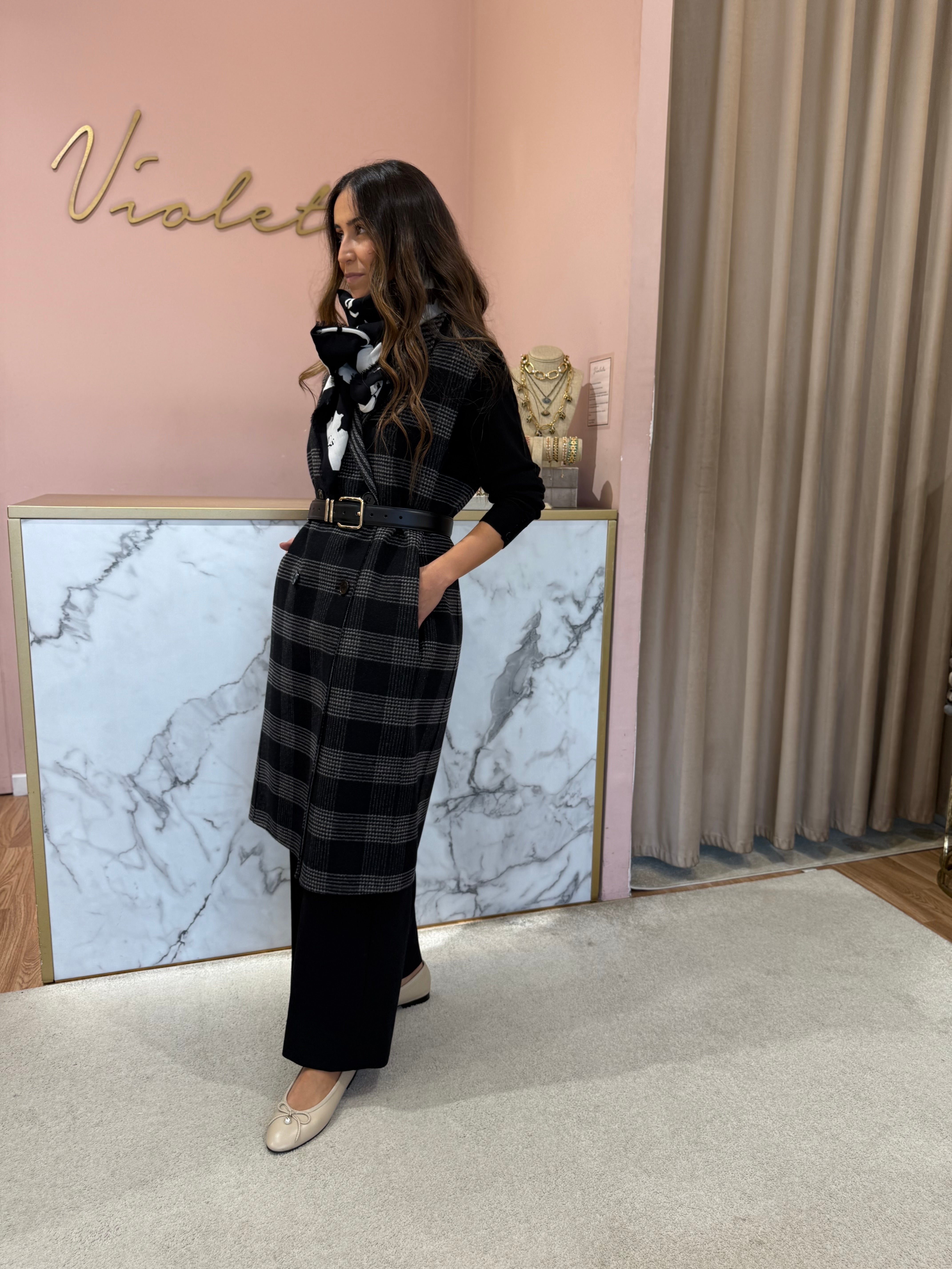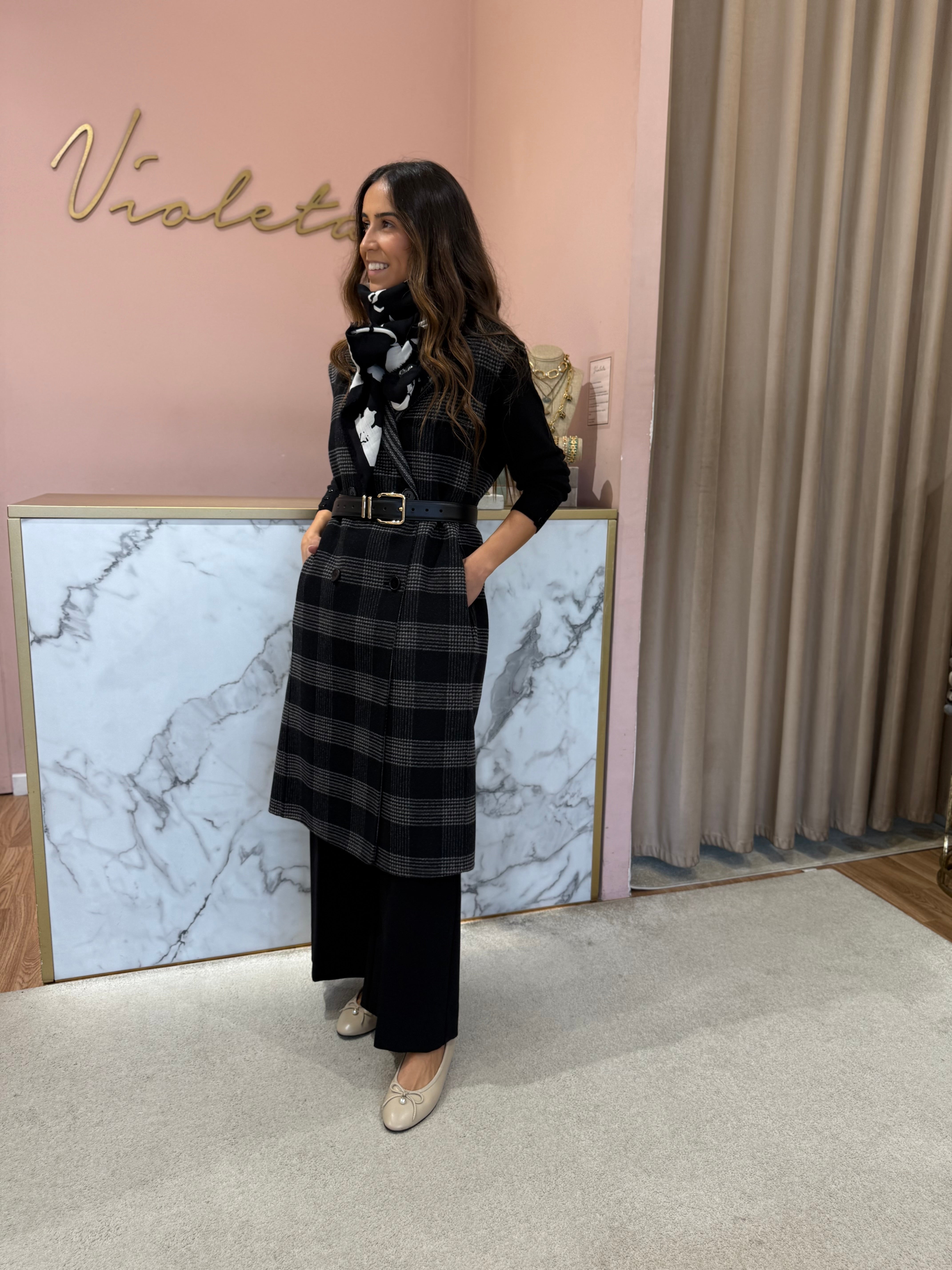 Este colete Twinset reversível combina dois estilos num só: um lado liso, outro xadrez — ideal para mudar o visual conforme o teu mood. Confeccionado em tecido duplo de lã com detalhes modernos, oferece um corte oversize elegante e lapelas clássicas. Leve, sem forro e em dois padrões distintos, é a peça statement para estares estilosa durante todo o outono/inverno.