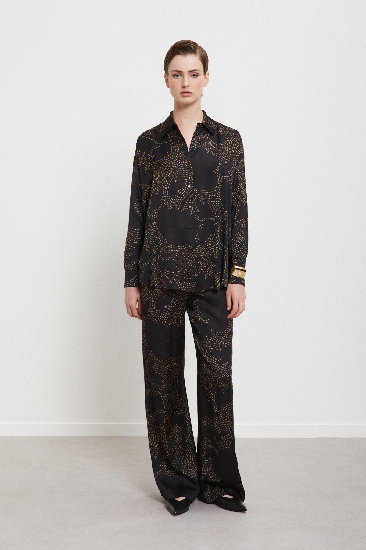 Conjunto Camisa e Calças Acetinado Preto | ottod'ame