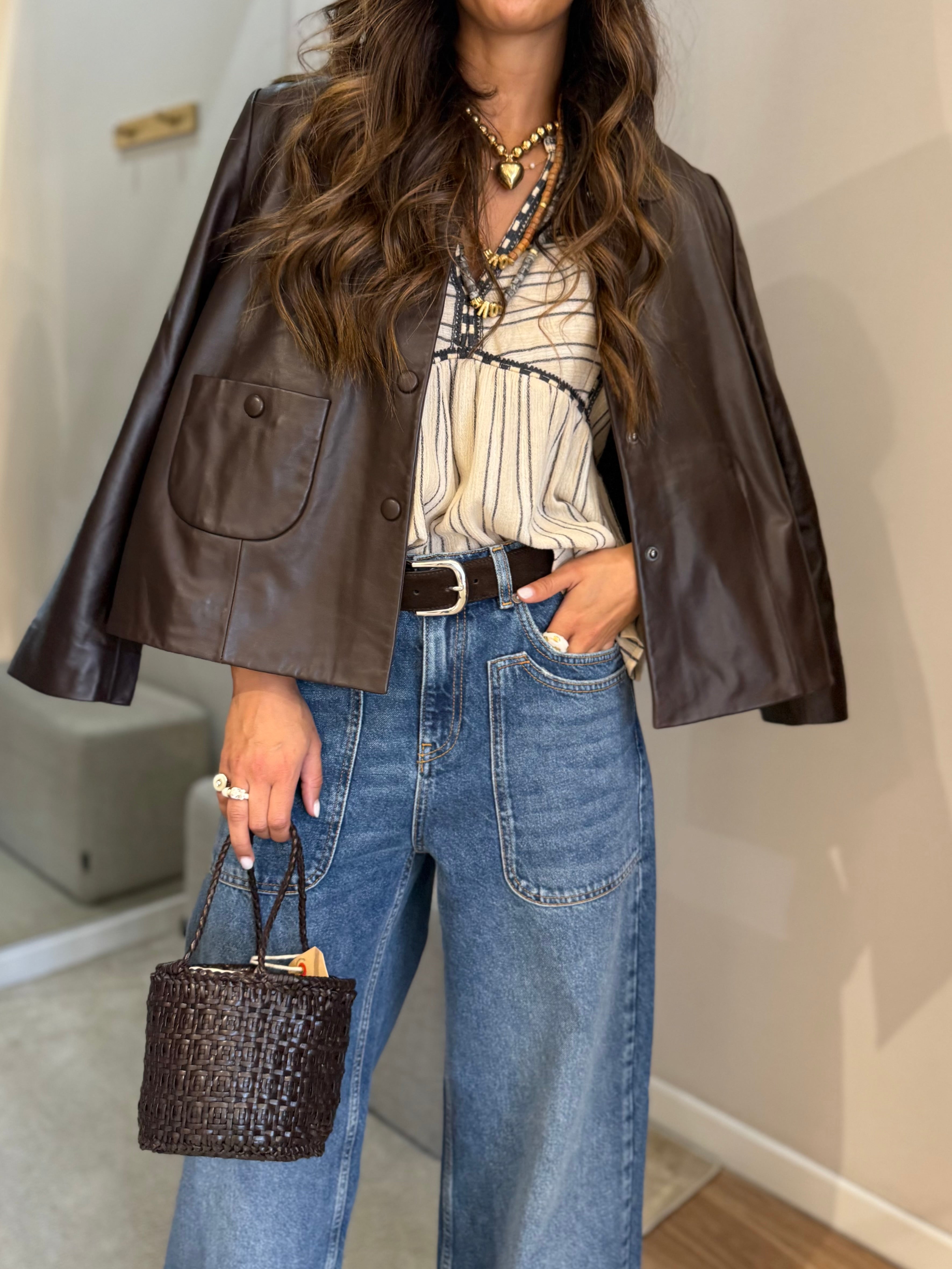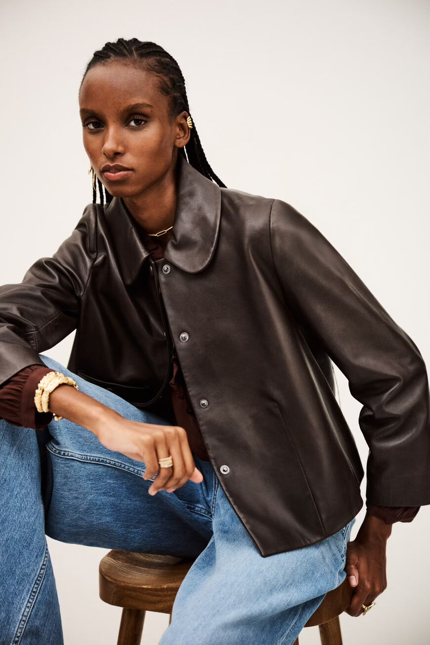 Jaqueta em Pele Castanha Milos | ba&sh