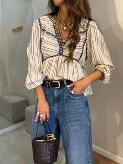 A Jaqueta Milos em Castanho da ba&sh é uma peça icónica que combina estilo vintage com um toque moderno. Com um corte curto e mangas de comprimento médio, este casaco apresenta uma gola Peter Pan que confere um charme retrô e glamoroso. Os recortes e franzidos na peça adicionam um toque de originalidade, tornando-a perfeita para um look sofisticado e feminino.