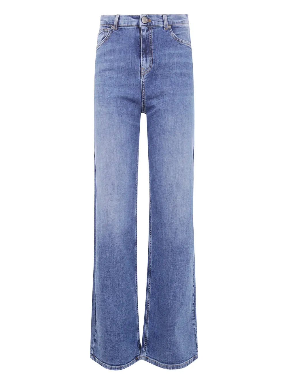 As calças flared da Twinset são perfeitas para quem procura uma silhueta retro com uma vibe atual. Com corte flare e uma lavagem azul com efeito gasto, criam um aspeto informal e cheio de personalidade. Apresentam fecho de botão e braguilha com fecho, três bolsos frontais e dois bolsos de trás, ideais para um look prático e moderno.