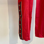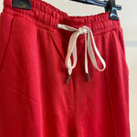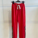 Joggers com cintura elástica e cordão, bolsos laterais e botões no final da perna.
