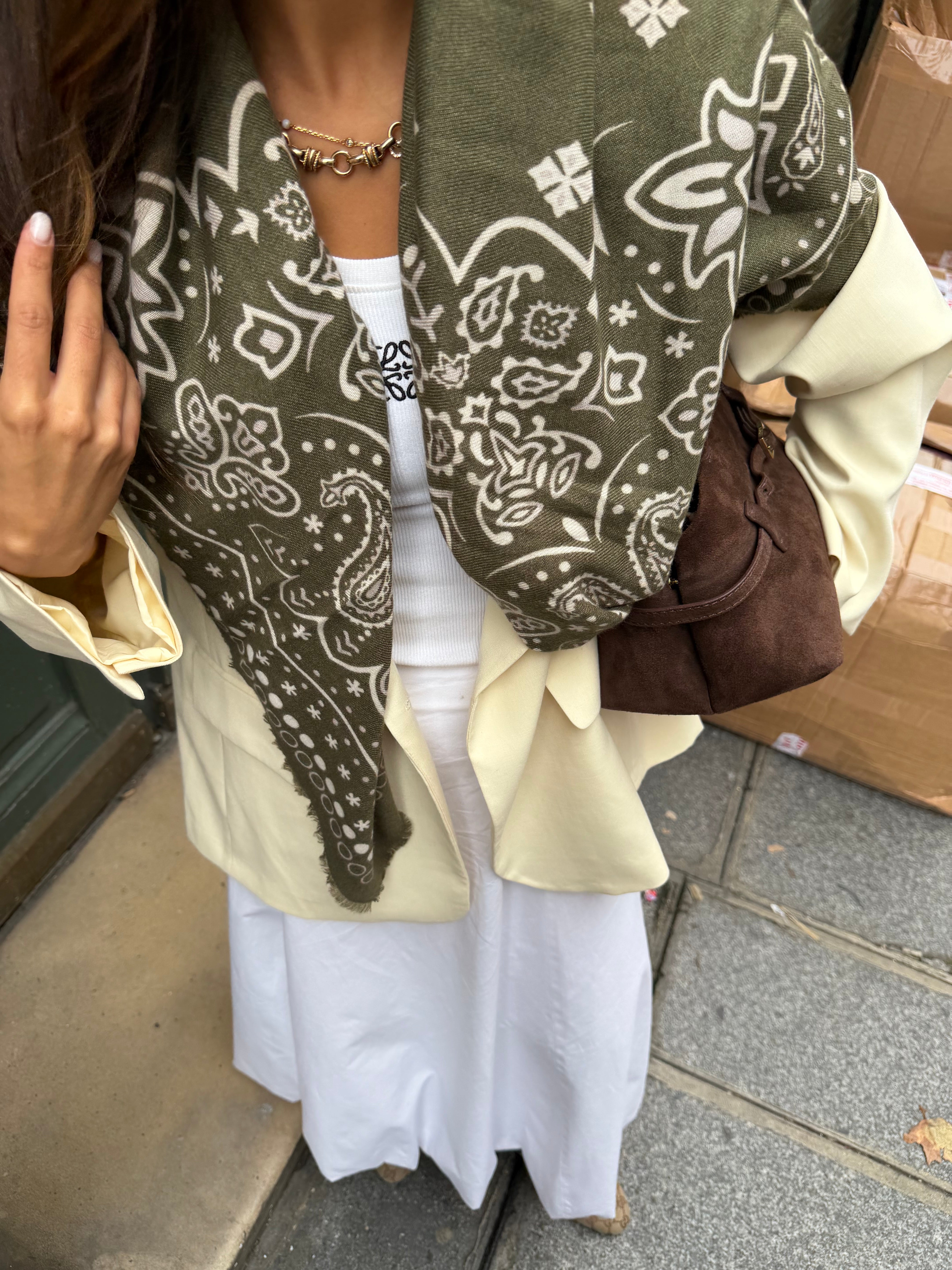 O clássico da moda ganha uma nova interpretação neste lenço com estampa bandana, que une o charme intemporal ao toque contemporâneo do estilo urbano chic. Confeccionado em tecido leve e delicado, ele oferece caimento impecável e versatilidade para compor desde looks despojados até produções elegantes com personalidade.