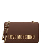 Mala de ombro em castanho com logo metálico | Love Moschino