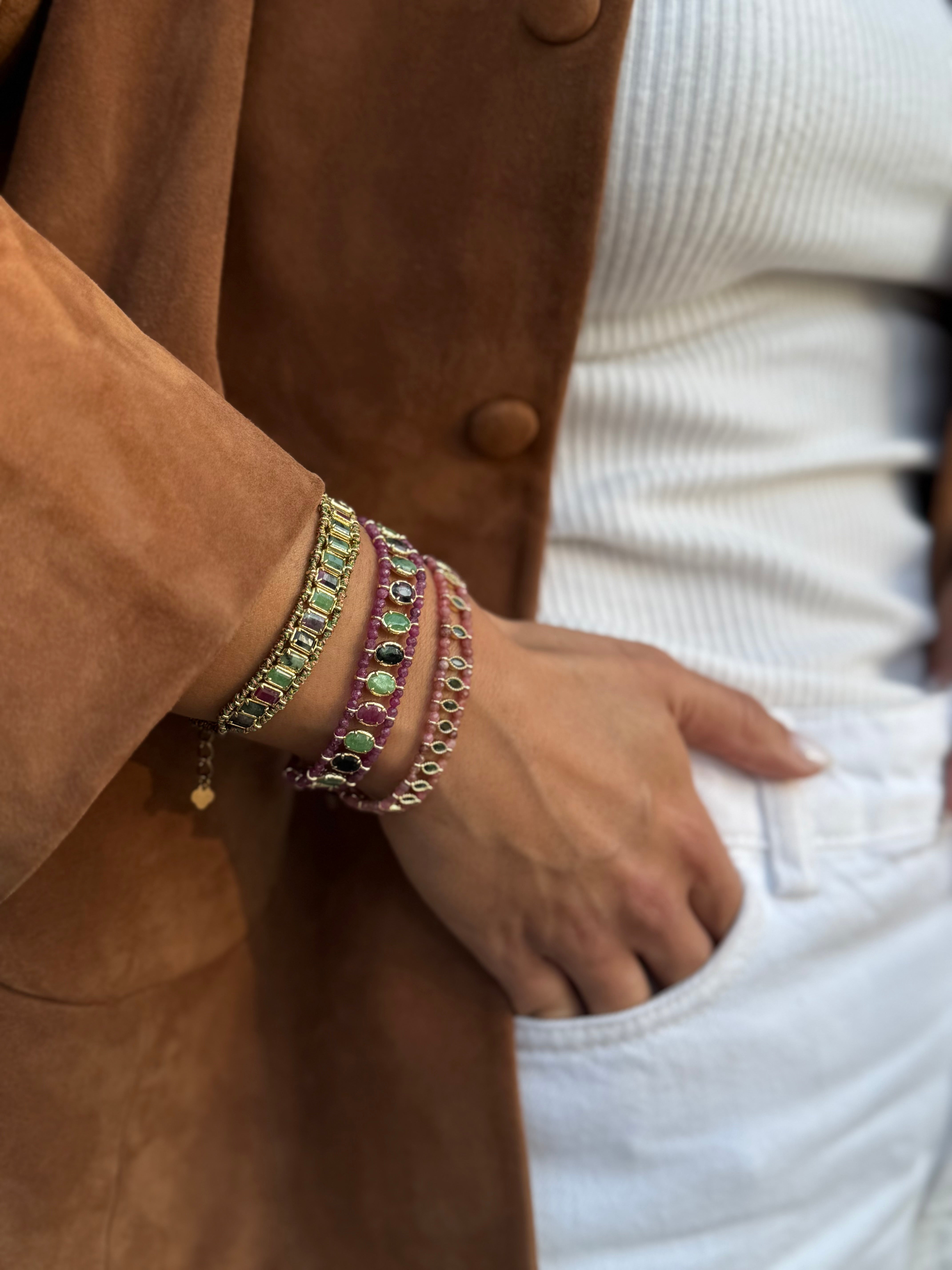 Pulseira de Dois Fios com Pedras Naturais Rosa e Verde