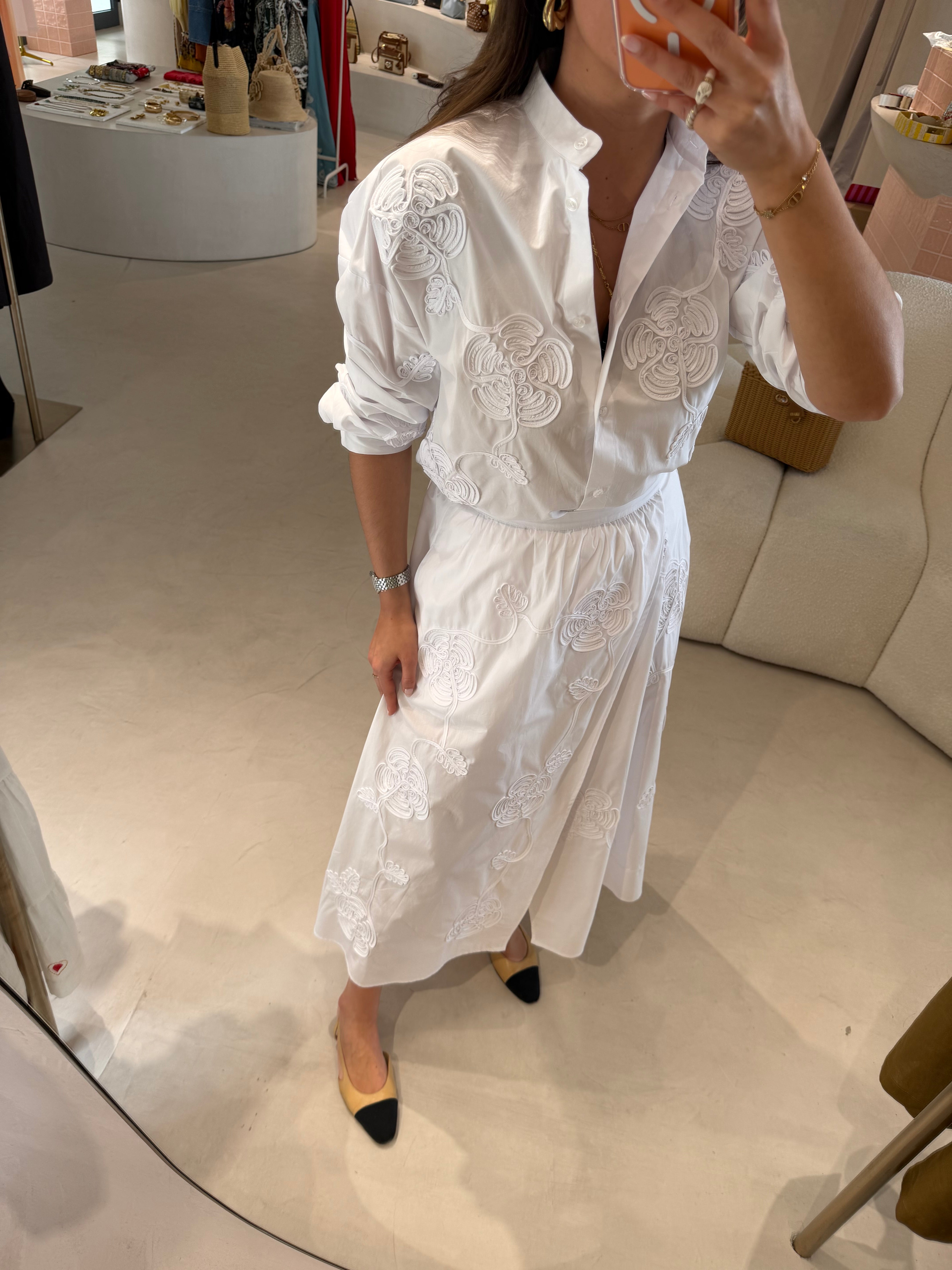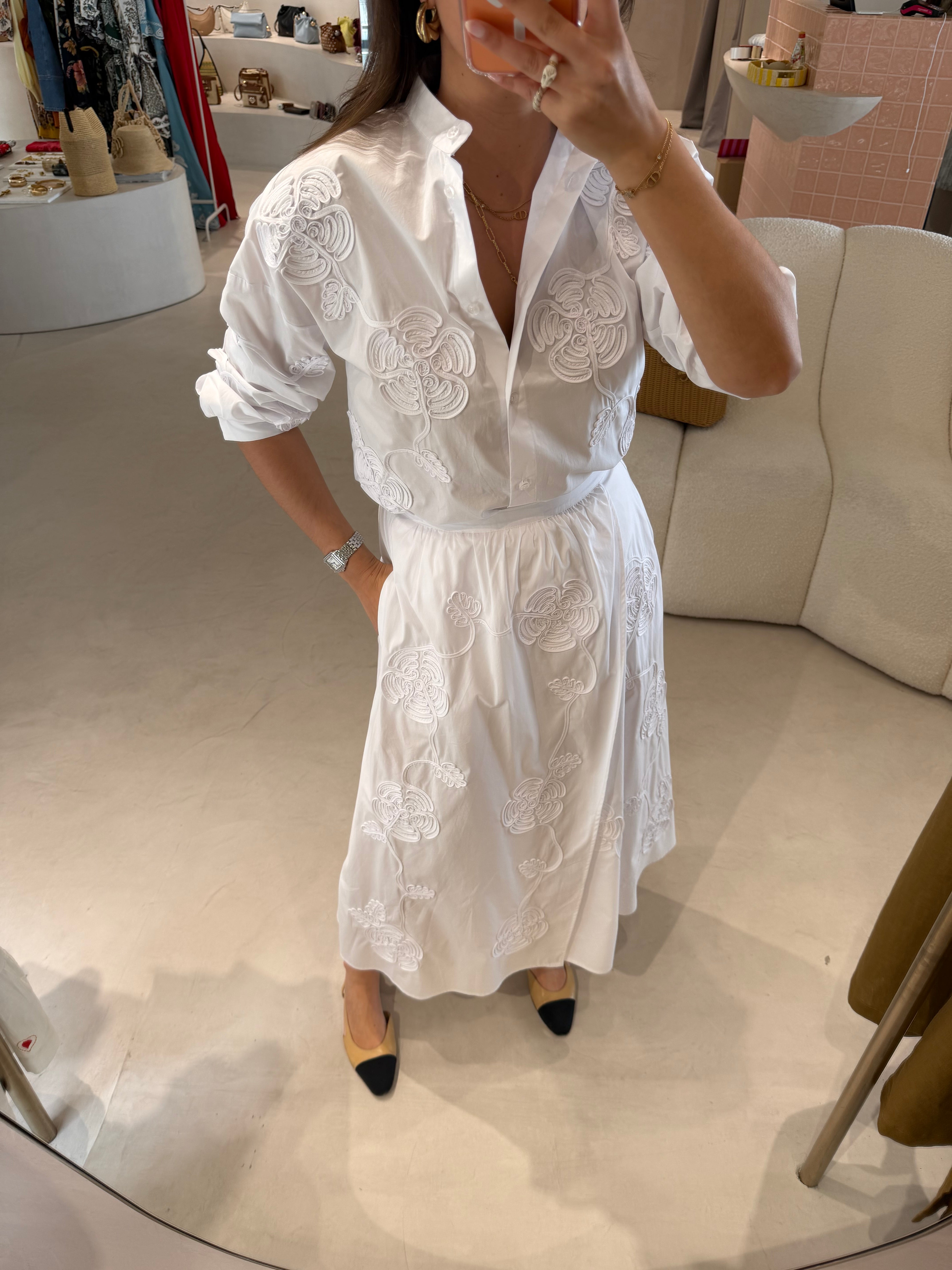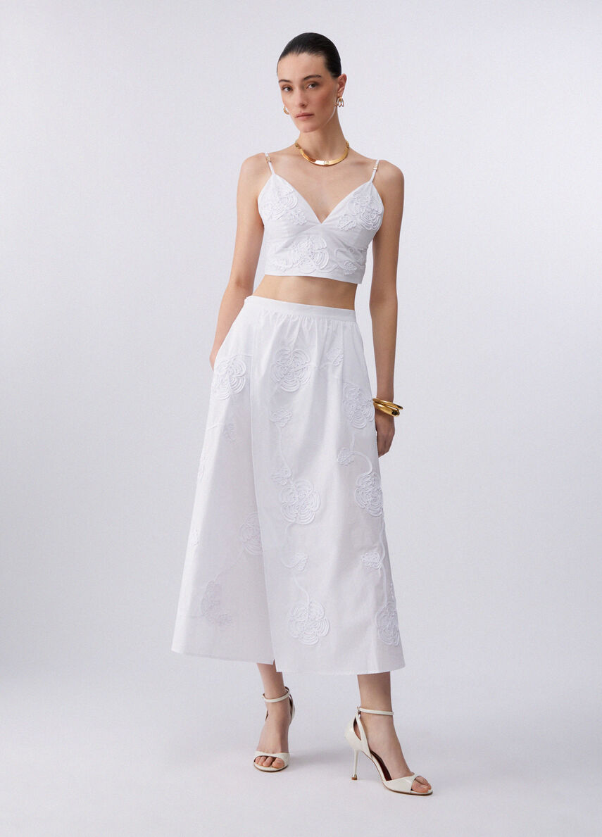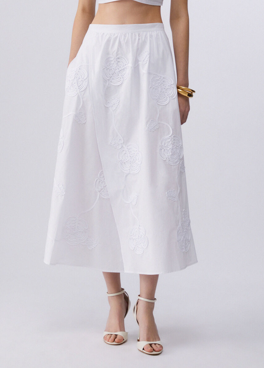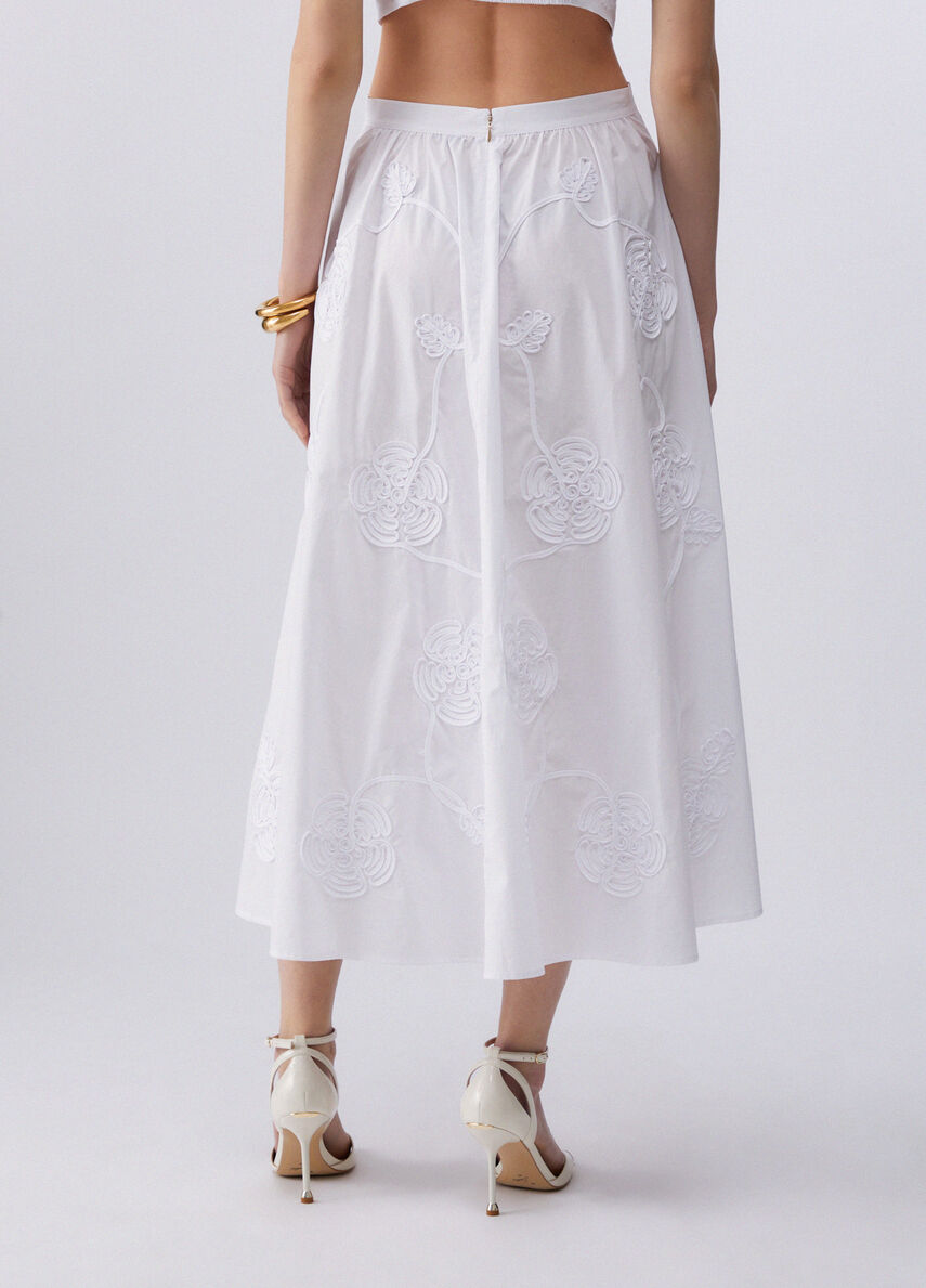 A saia midi com bordado da Liu Jo é uma peça feminina elegante e leve, ideal para looks sofisticados de verão. Confeccionada em popelina de algodão puro, apresenta um comprimento longo com bordados em relevo de efeito 3D que acrescentam textura e delicadeza ao design. O modelo inclui fecho nas costas com zíper e uma pequena abertura na bainha que cria movimento e um caimento fluido. Versátil e intemporal, é perfeita para combinar com tops leves ou camisas para um visual feminino e refinado.