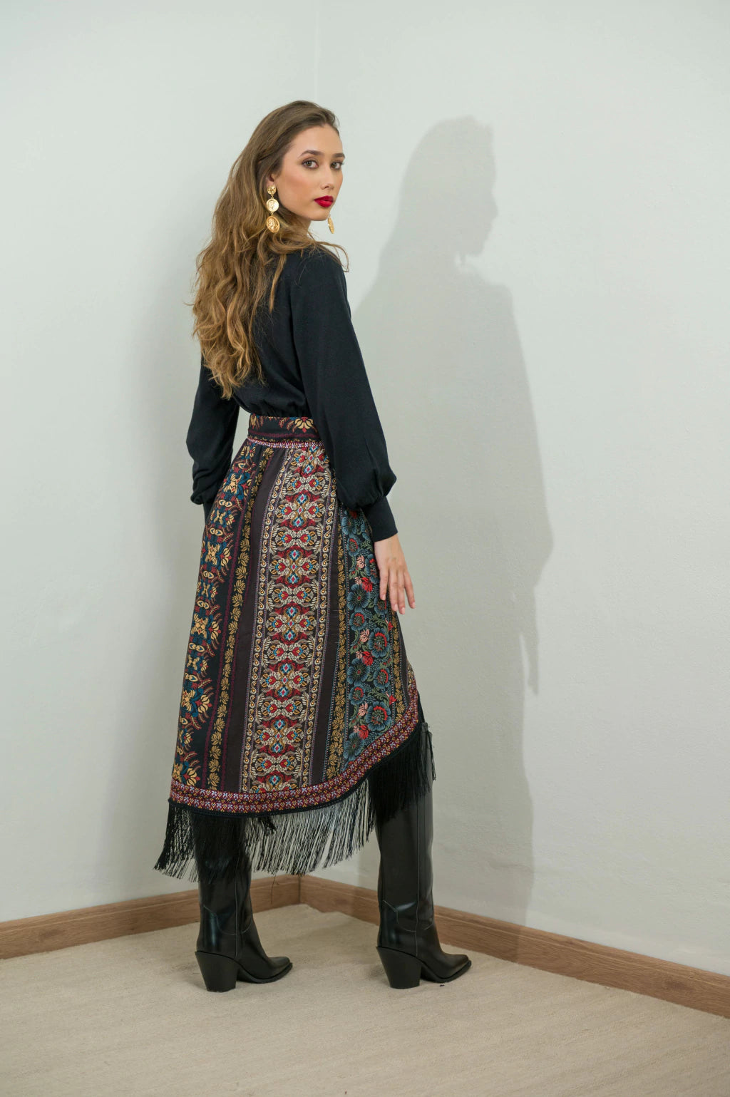 Saia Midi em Tricot com Franjas e Tecido Moana | CECILIA PRADO