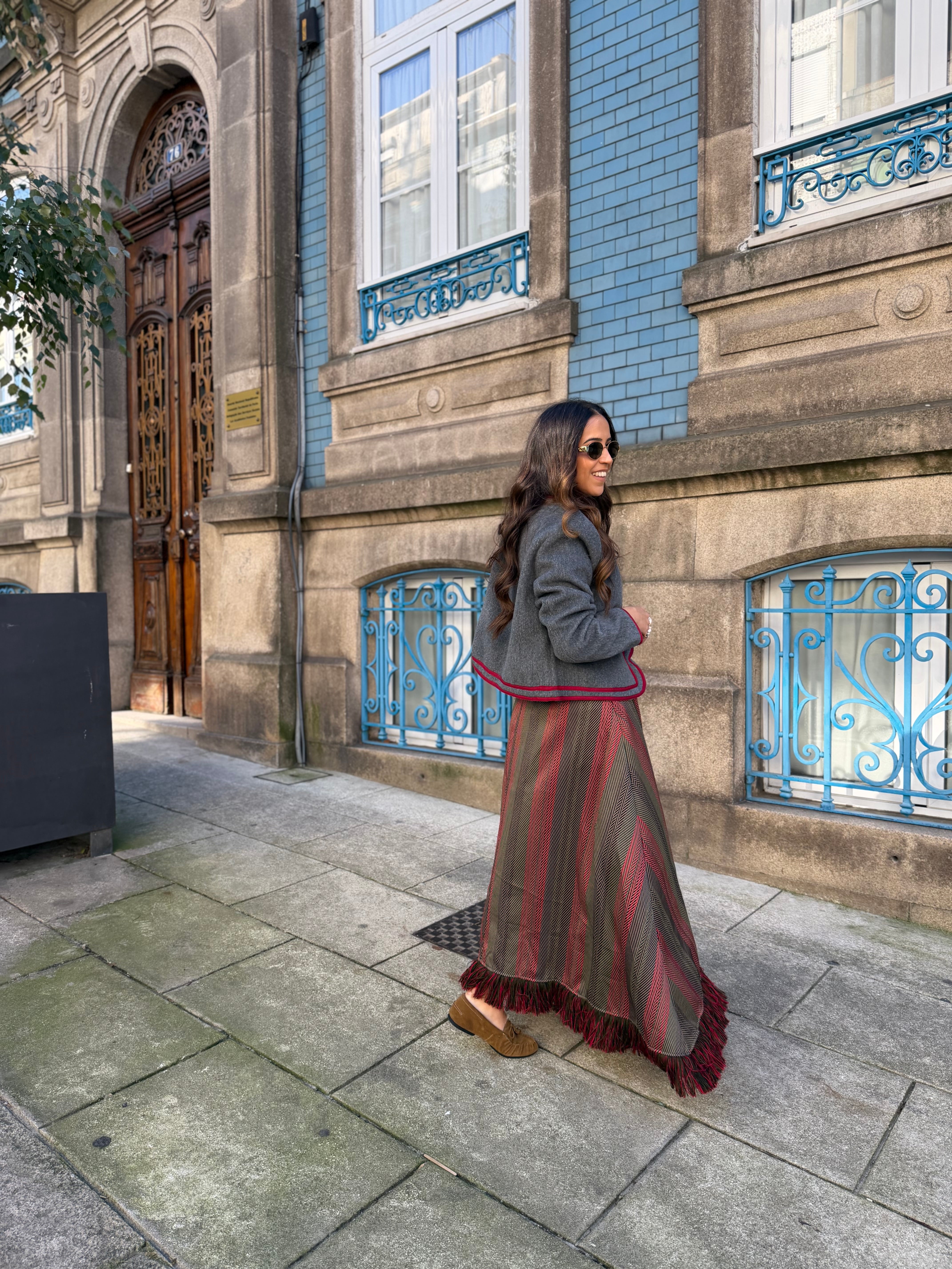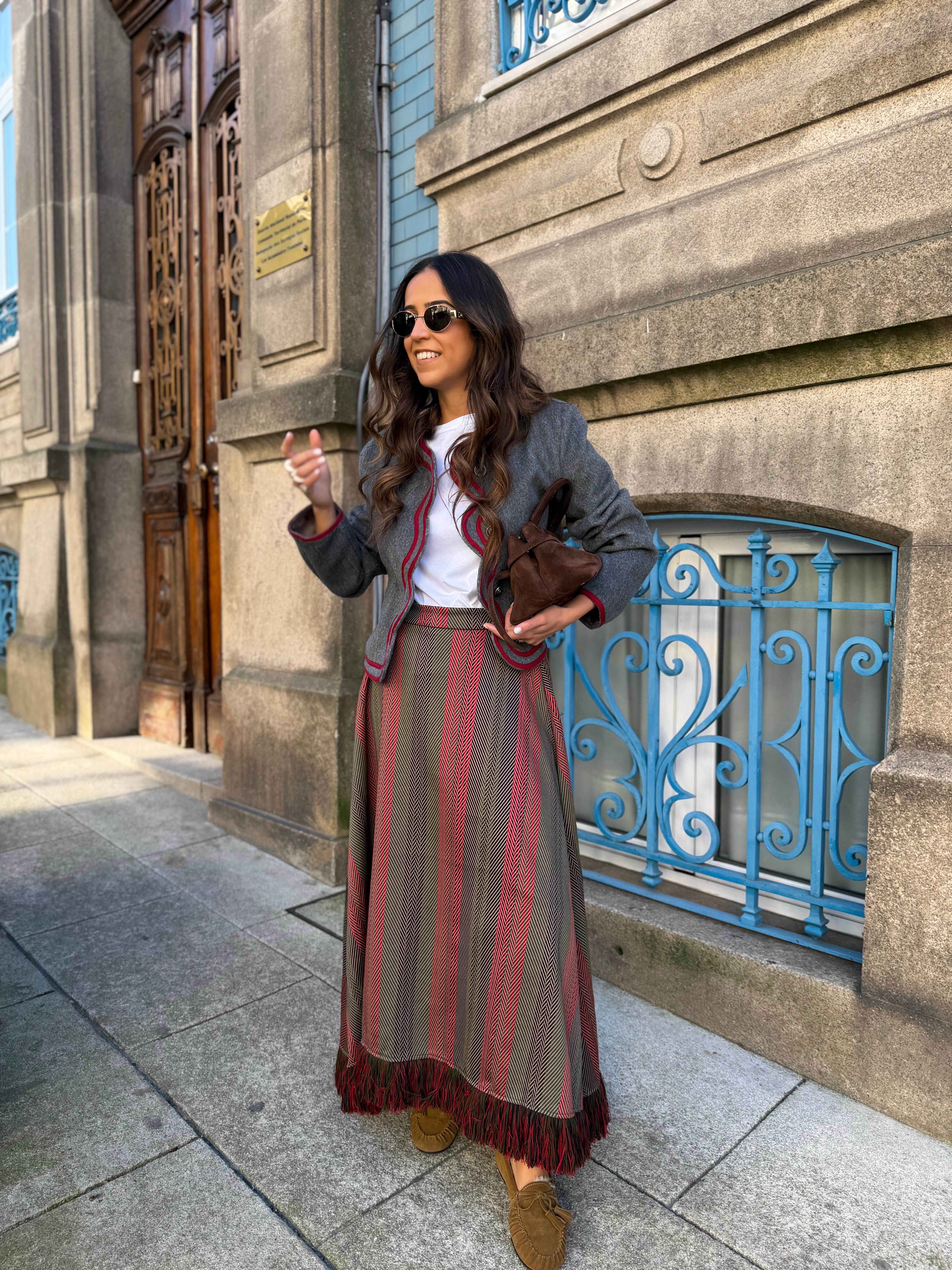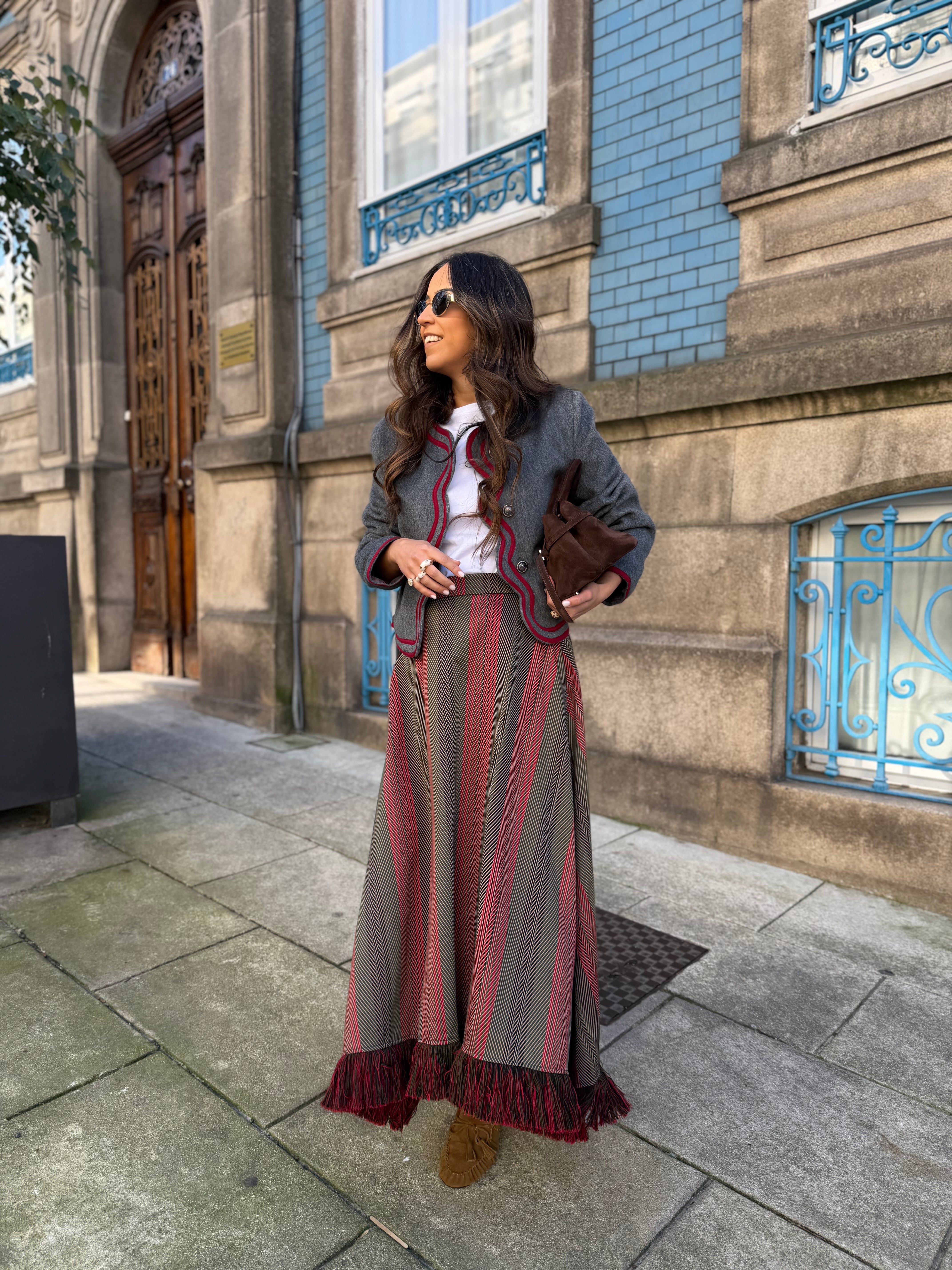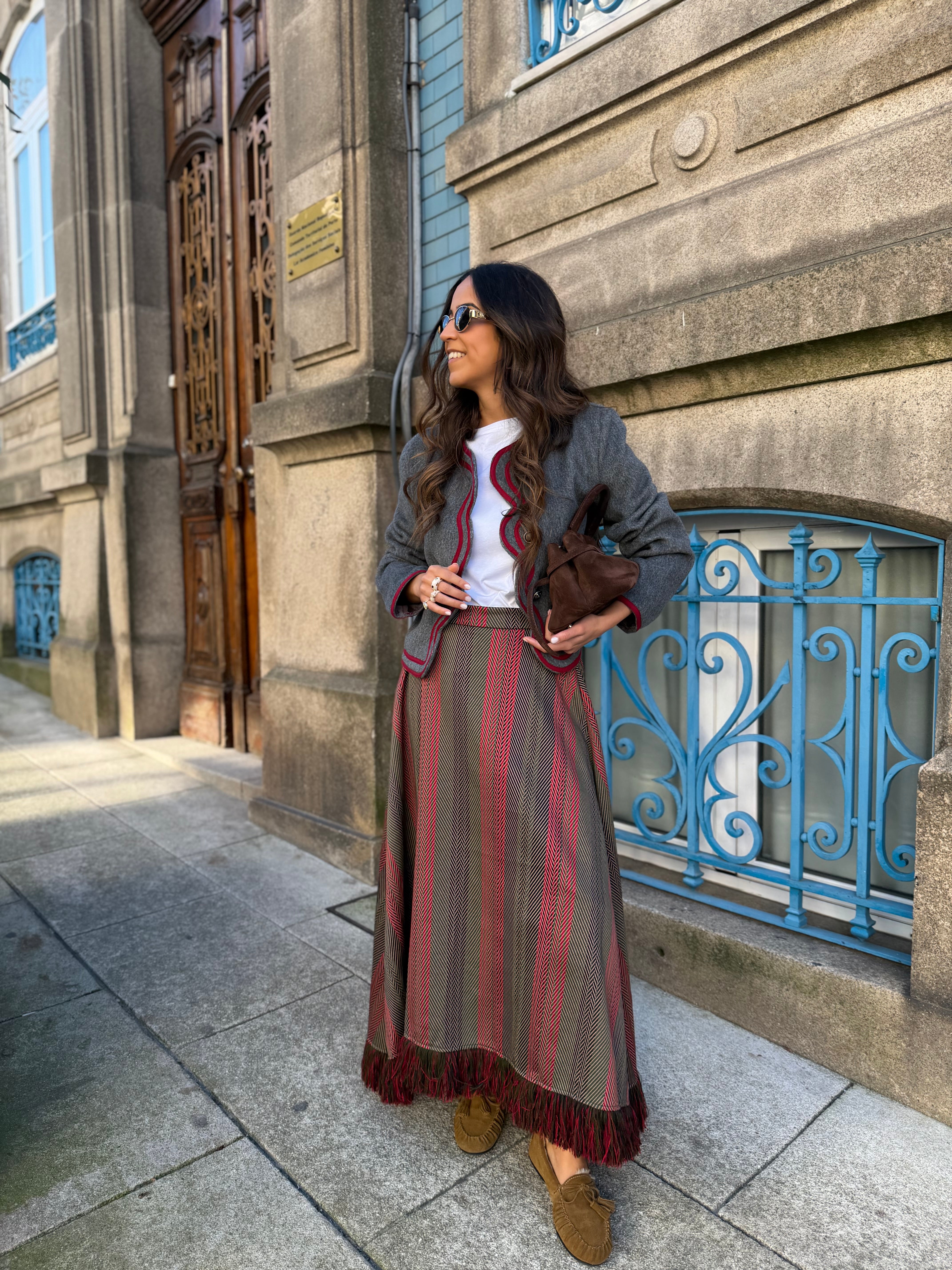 Saia Midi Espiga em Vermelho e Verde | VIOLETA STORE