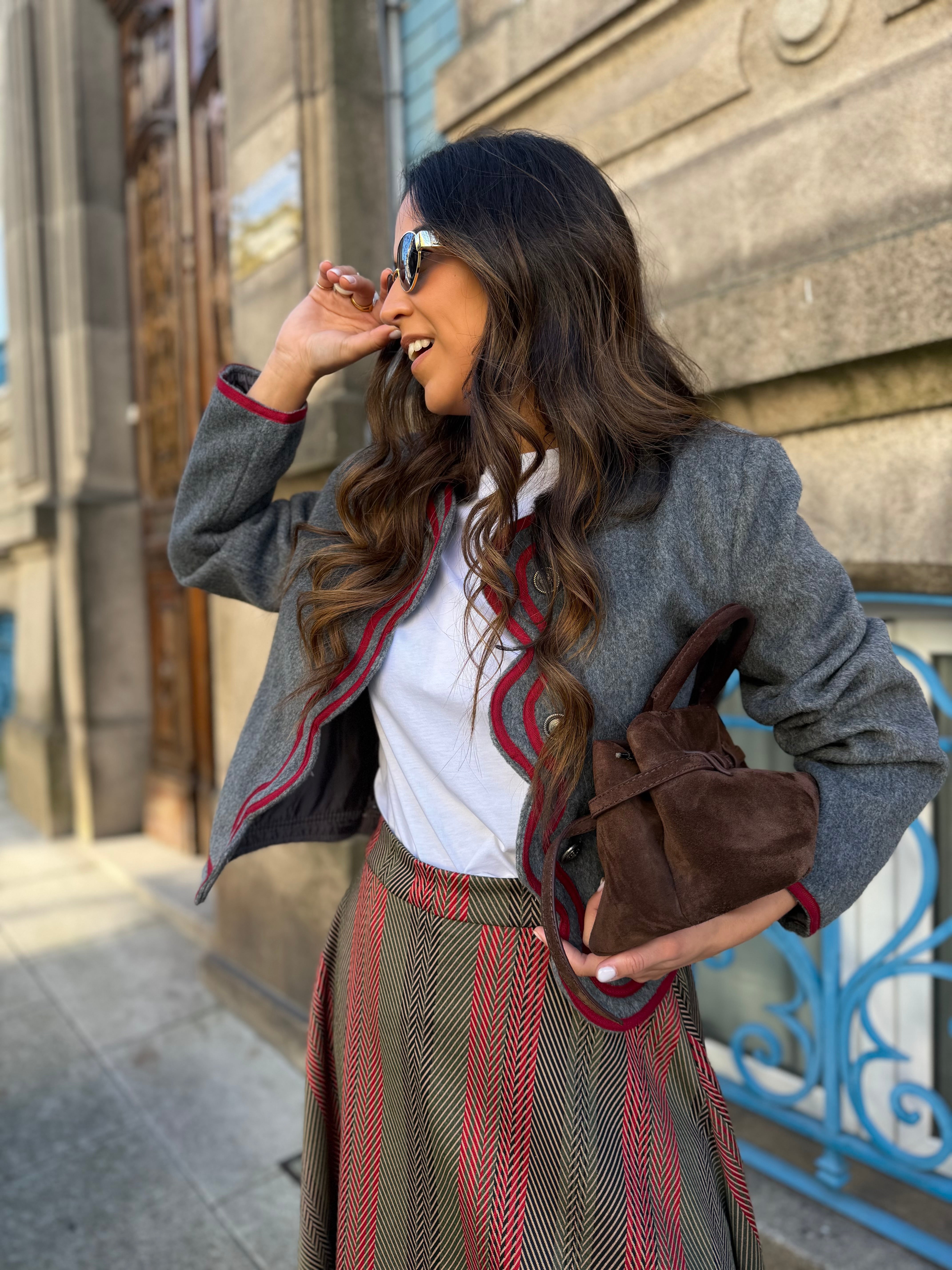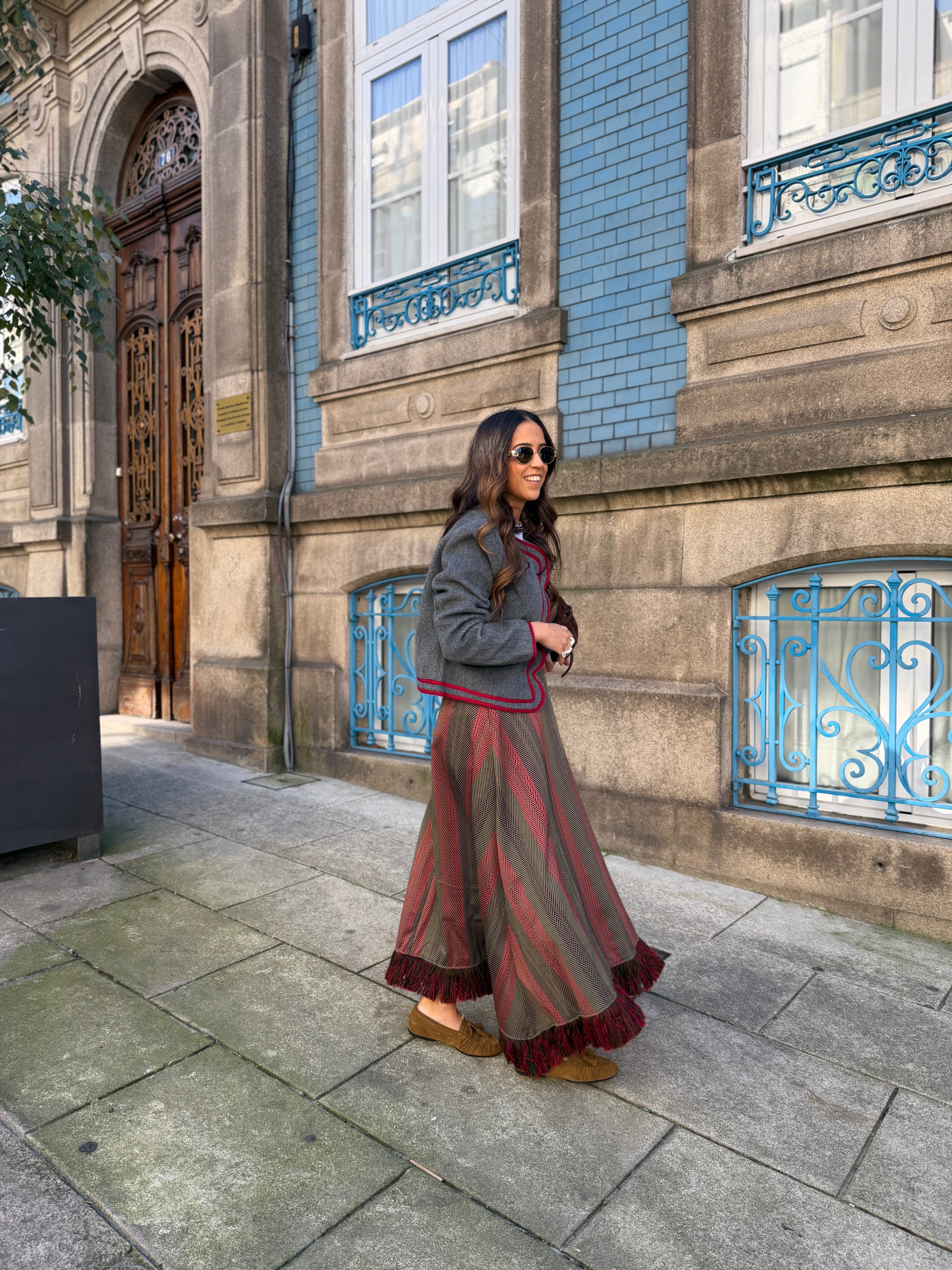 A Saia Midi Liz em verde e vermelho traz um toque de frescor e feminilidade ao look. Com modelagem evasê, cintura alta e elástica com corte assimétrico, valoriza a silhueta enquanto oferece leveza e movimento. A estampa chevrón adiciona modernidade, e as franjas conferem charme extra a cada passo. Elegante e versátil, é a peça ideal para compor produções sofisticadas — do dia a dia aos momentos especiais.