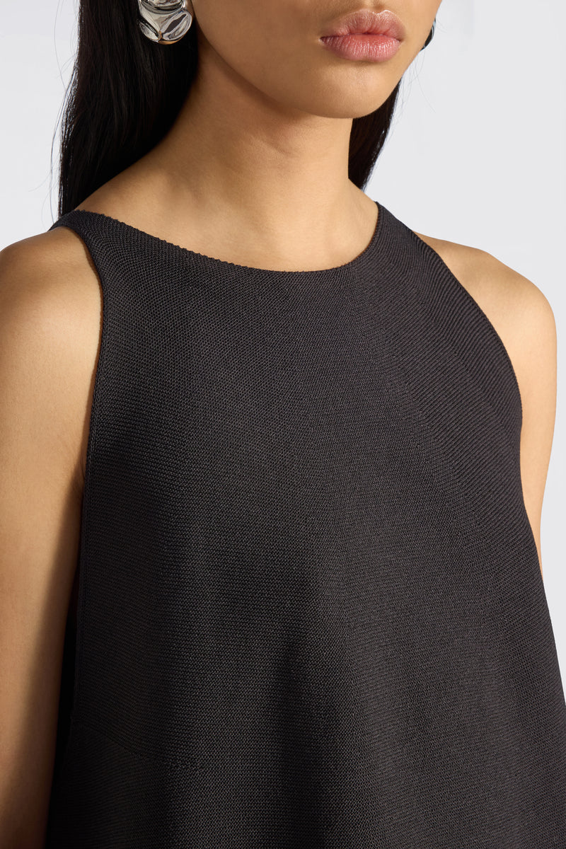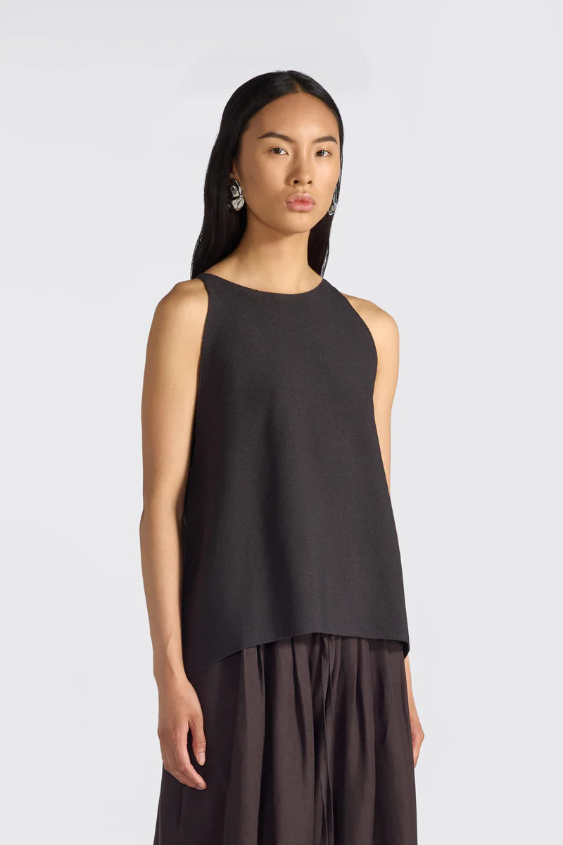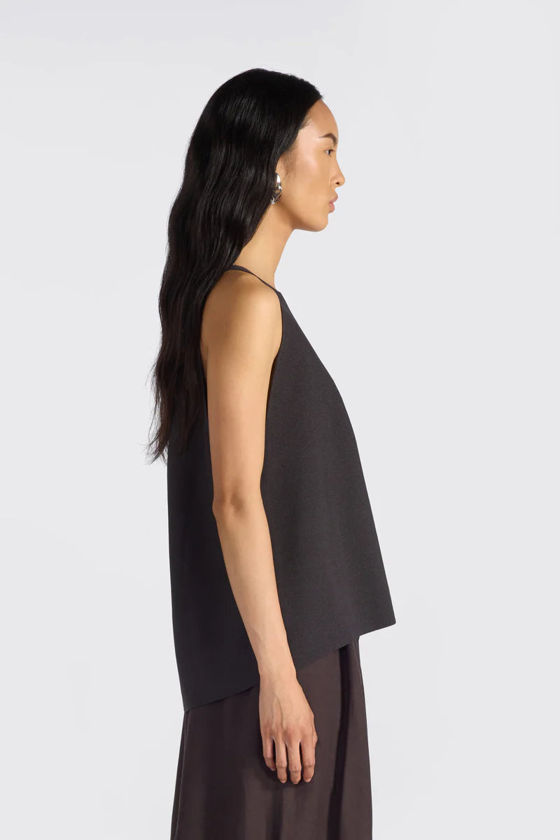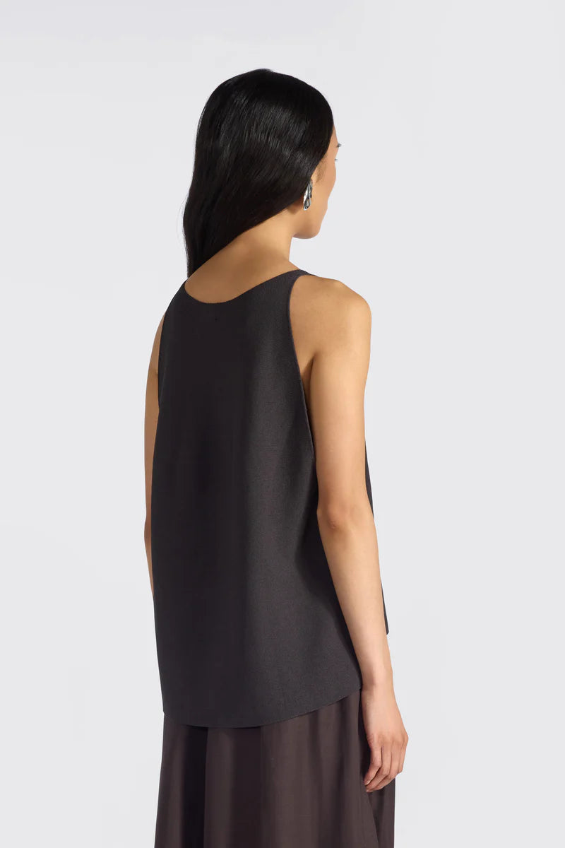 Um top de design clean e sofisticado, que combina linhas simples com caimento fluido, refletindo a estética “effortless chic” característica da Liviana Conti um minimalismo elegante e discreto ideal para guarda-roupas executivos.