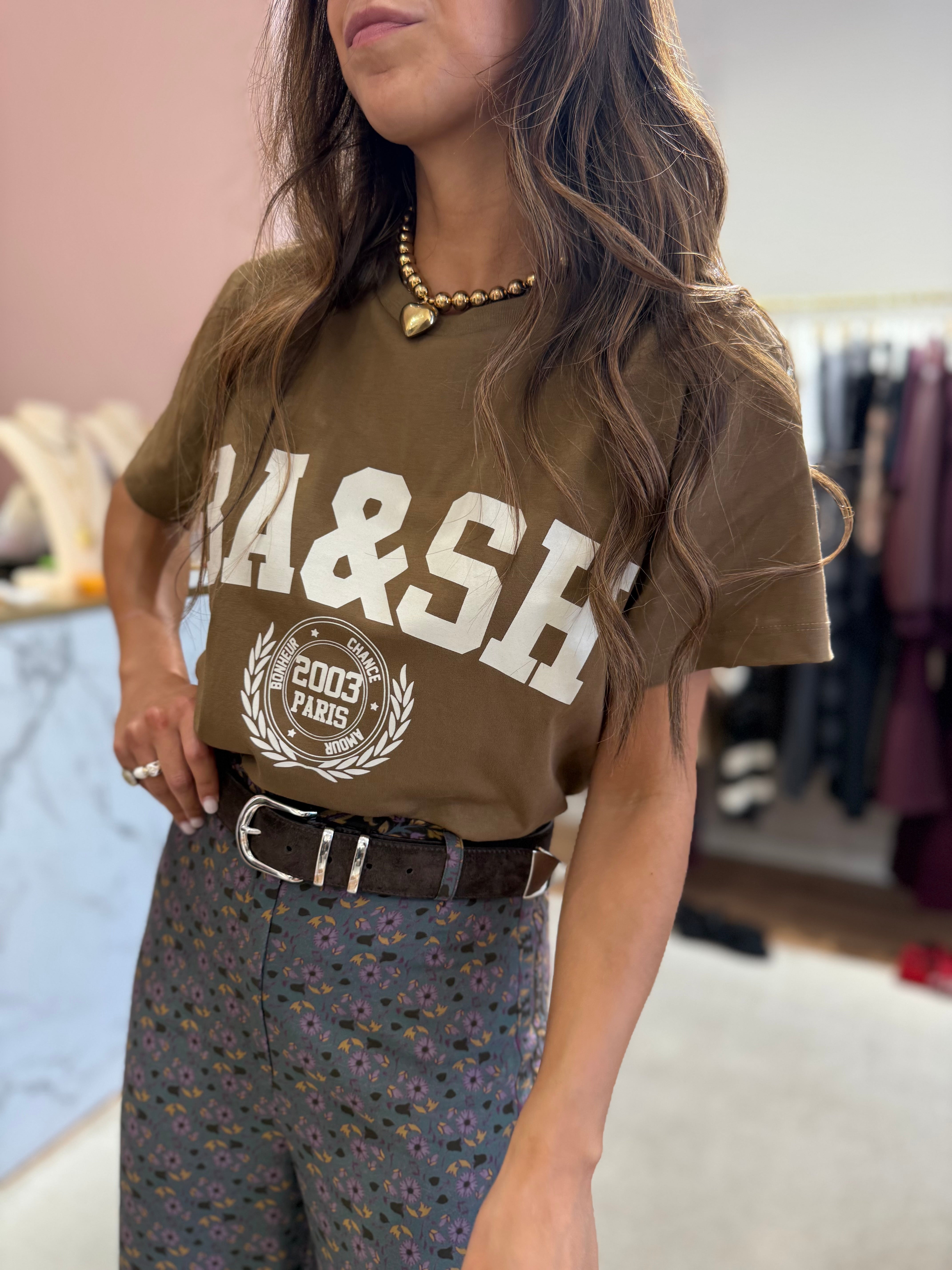 A T-shirt Ioni em tom café com logótipo em branco da ba&sh combina conforto com um estilo moderno e casual. Com um corte reto e gola contrastante, é uma peça versátil que se adapta facilmente a diferentes looks. Feita em algodão orgânico, é suave ao toque e perfeita para o dia a dia. Ideal para usar com calças de ganga, calções ou saias, esta t-shirt é uma escolha prática e cheia de estilo.