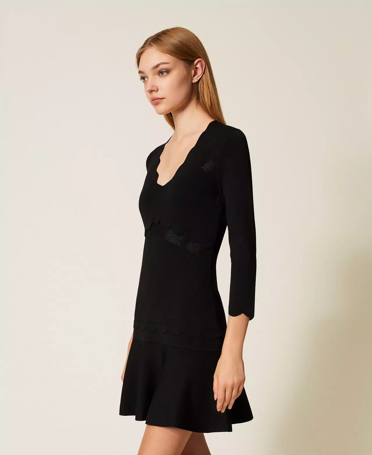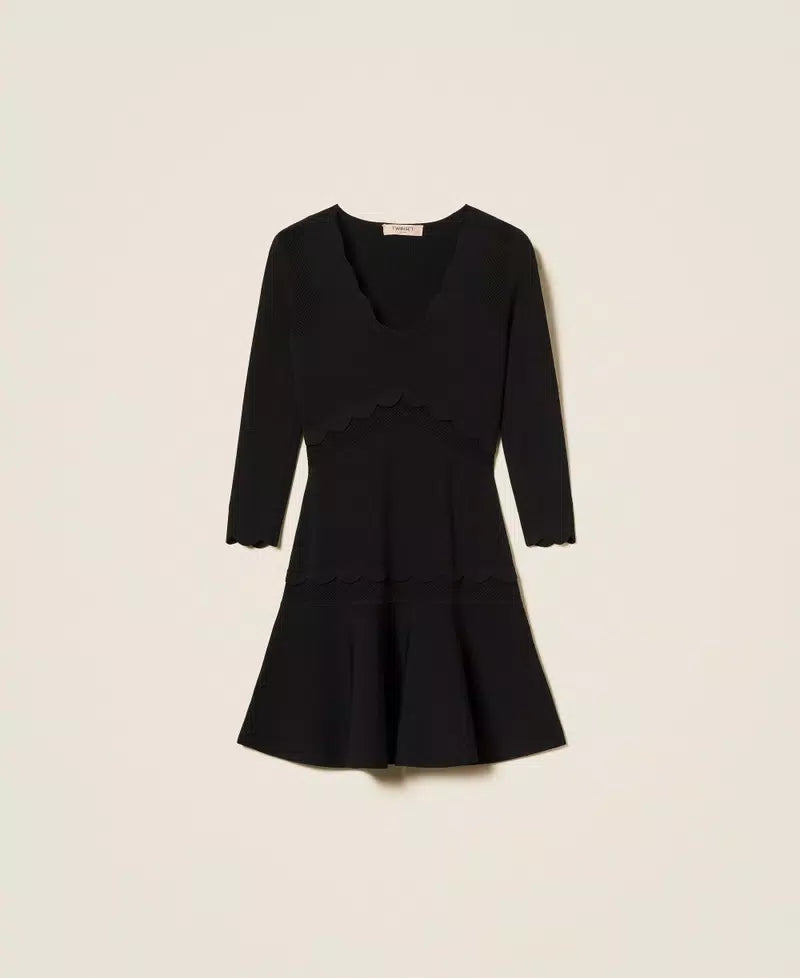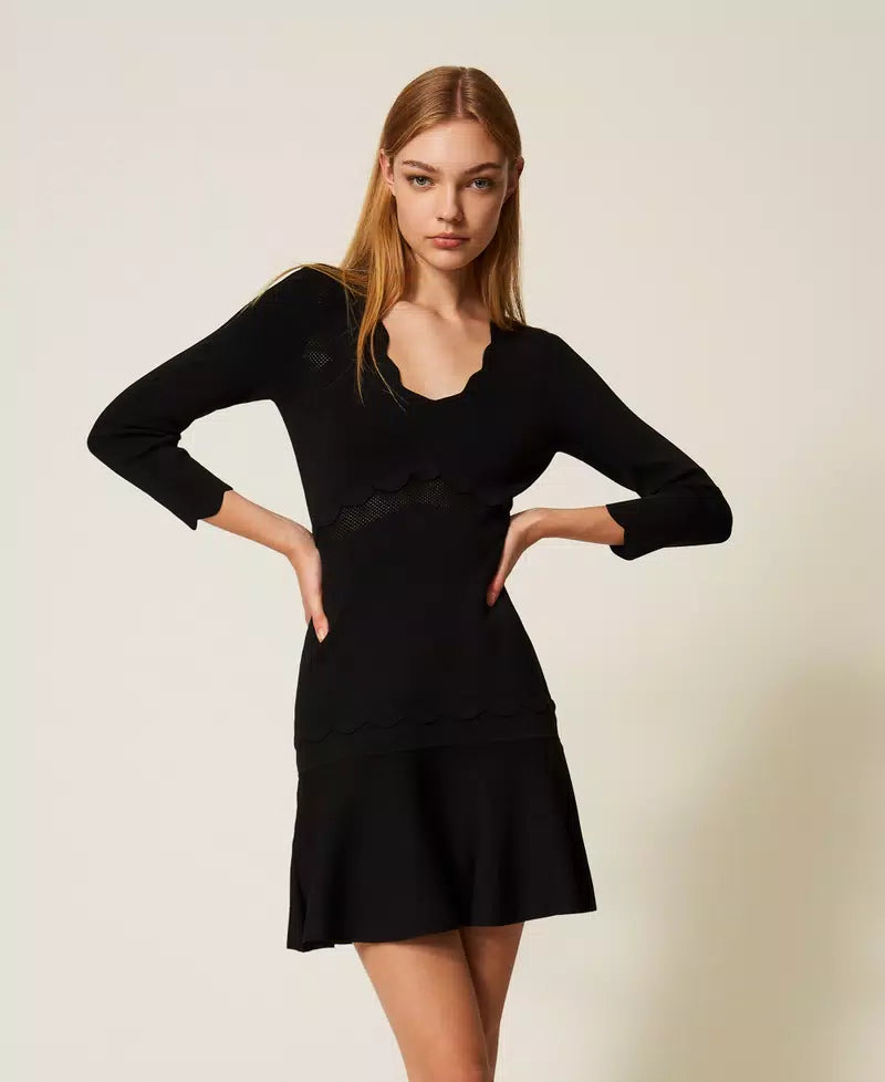 Vestido Curto Malha Fria com Detalhes Ondulados | TWINSET