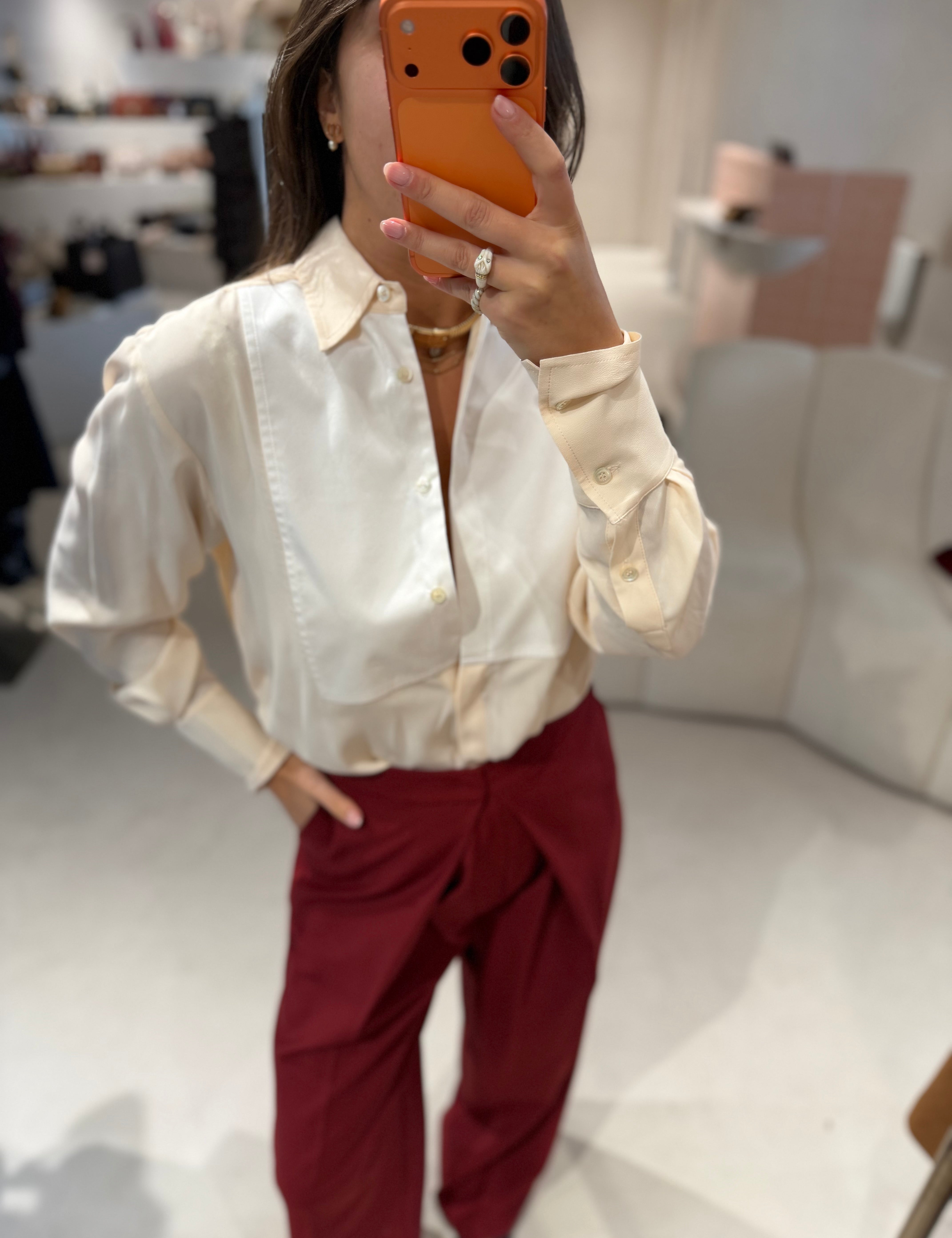 Camisa em Crepe de Chine Bege com Painel em Popelina Branco Krizia | SEMICOUTURE