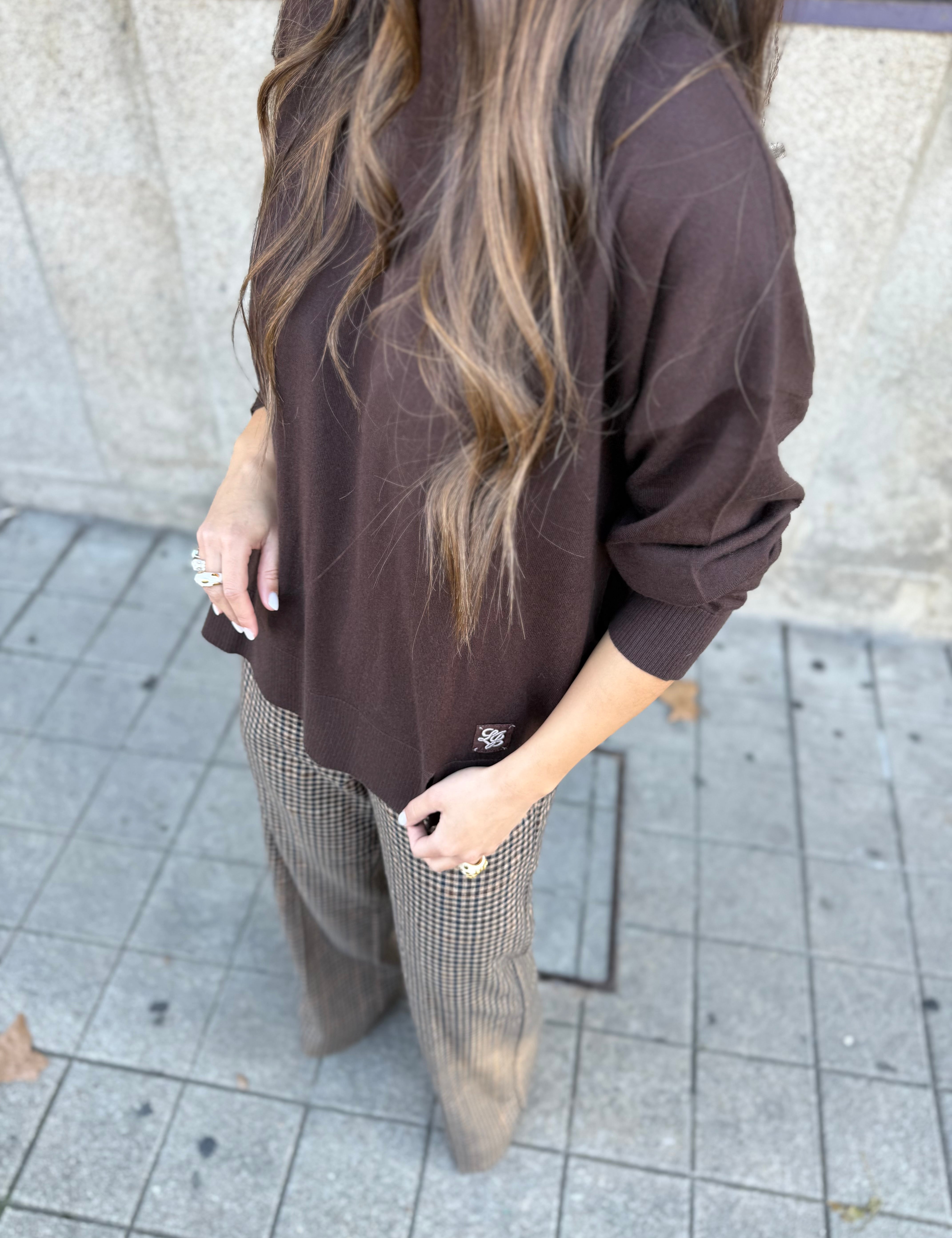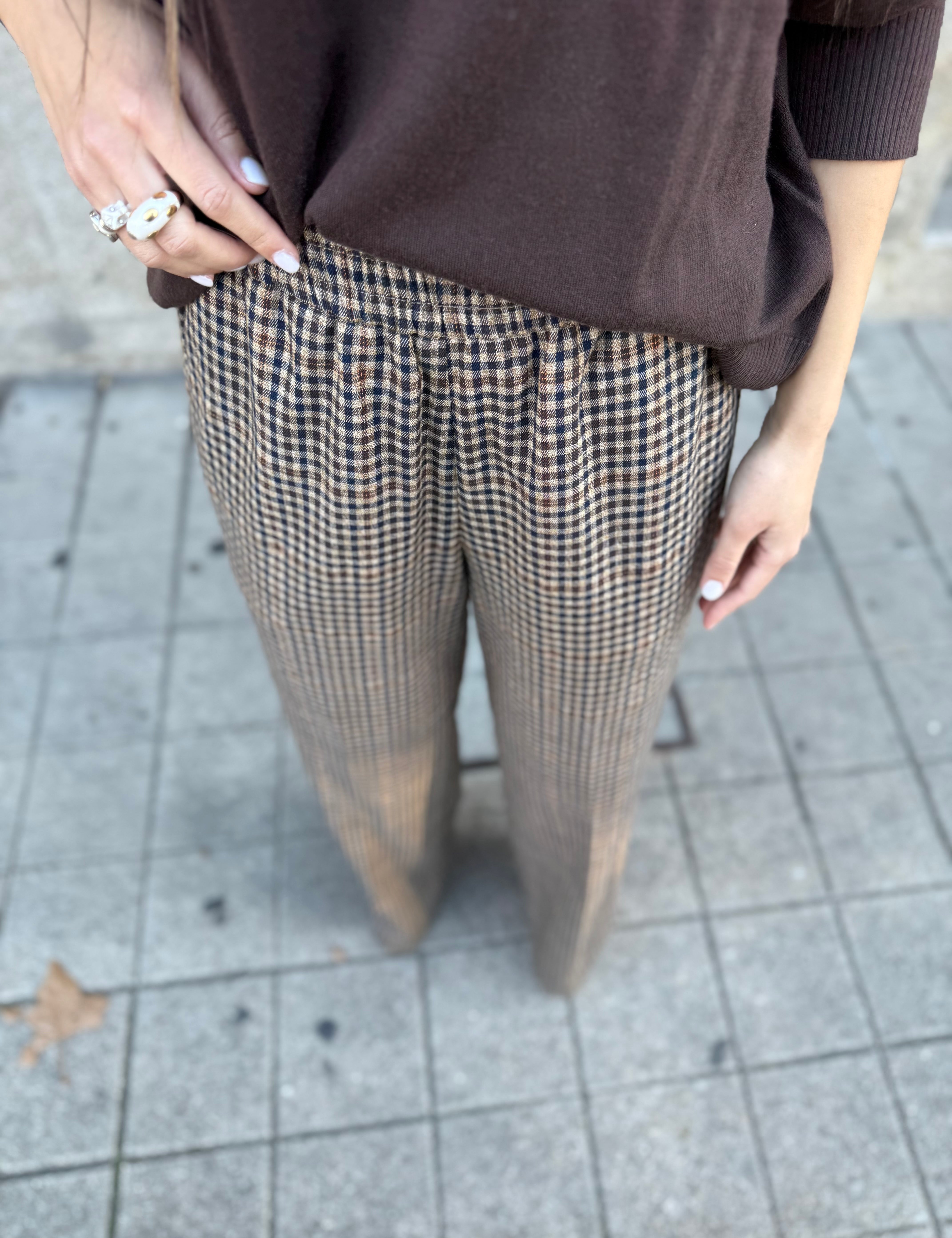Calça Palazzo em Xadrez Castanho | Liu Jo