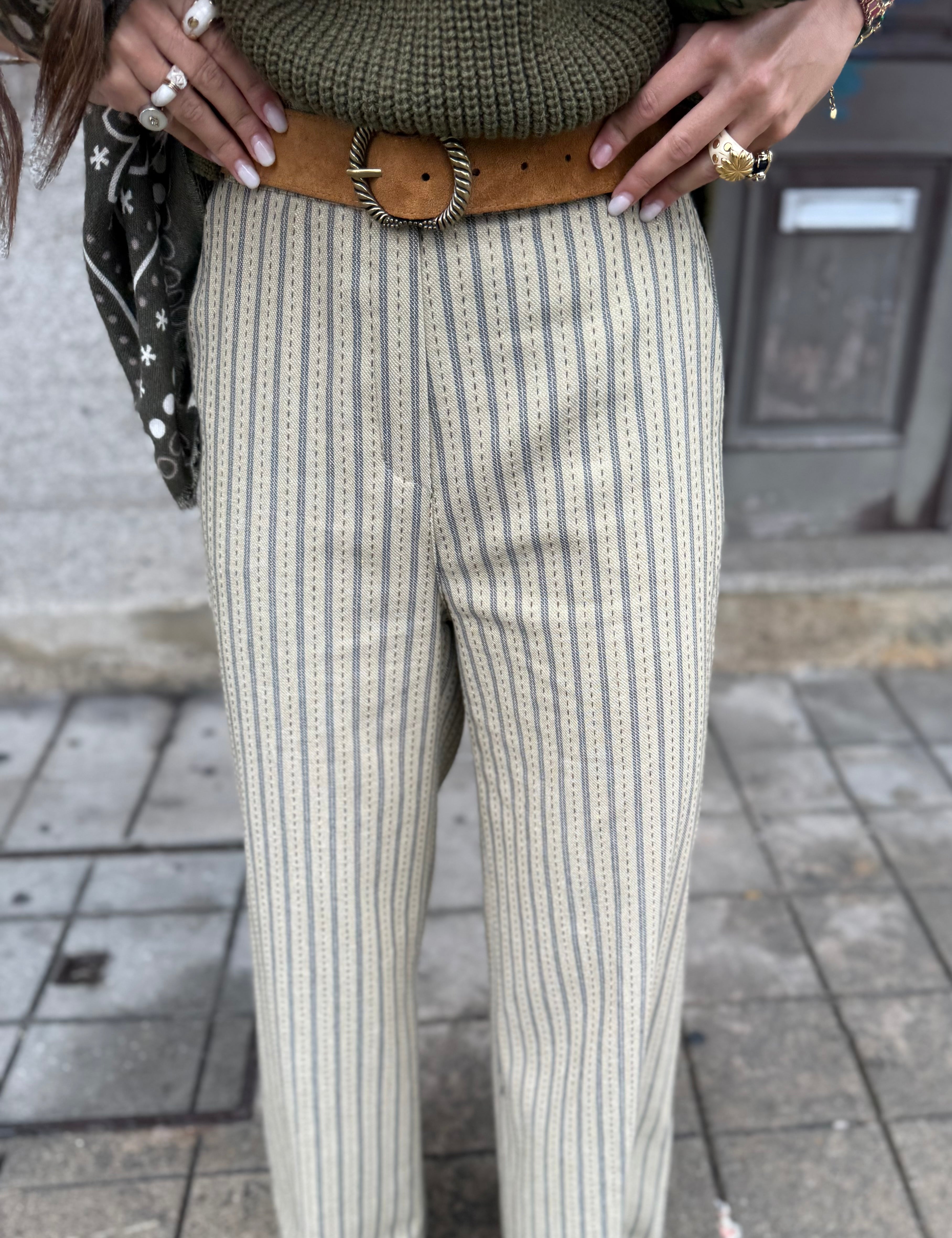 Calça Pantalona em Sarja Sálvia | VIOLETA