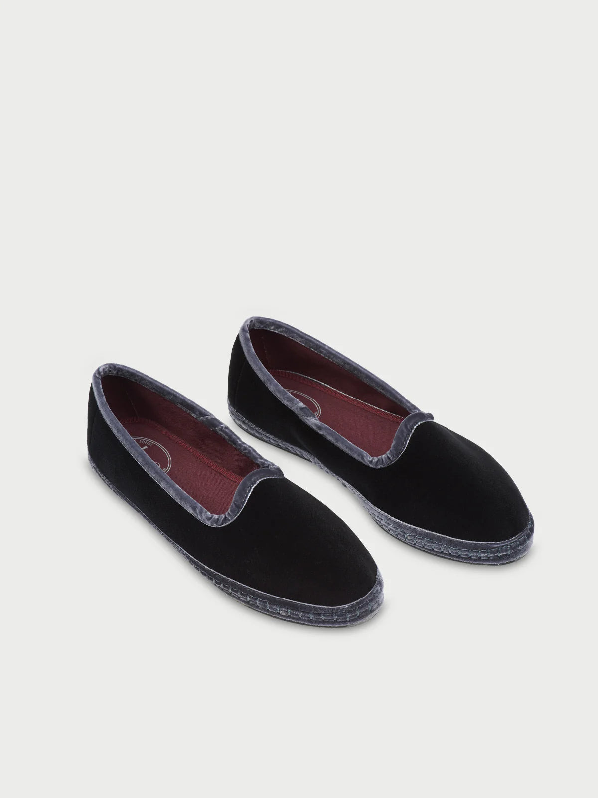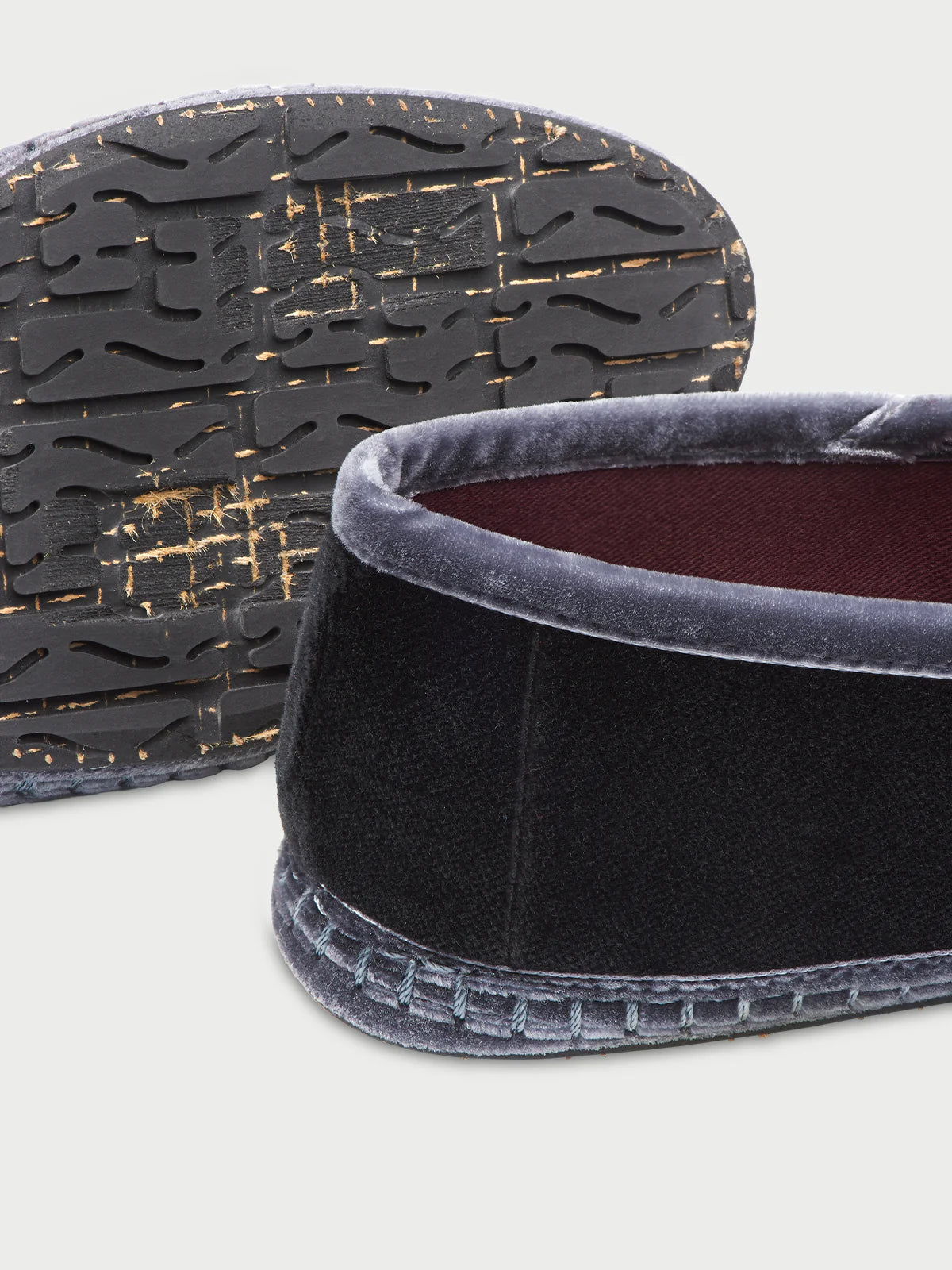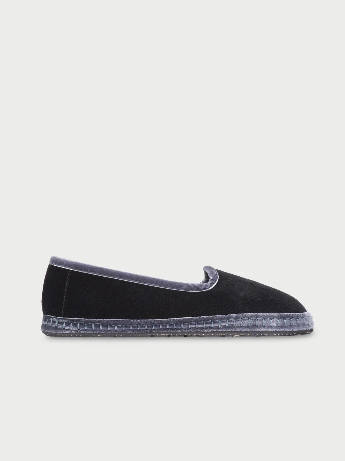 Alpargata de mujer Flabelus, modelo Slipper en terciopelo gris con ribetes de terciopelo gris más claro.