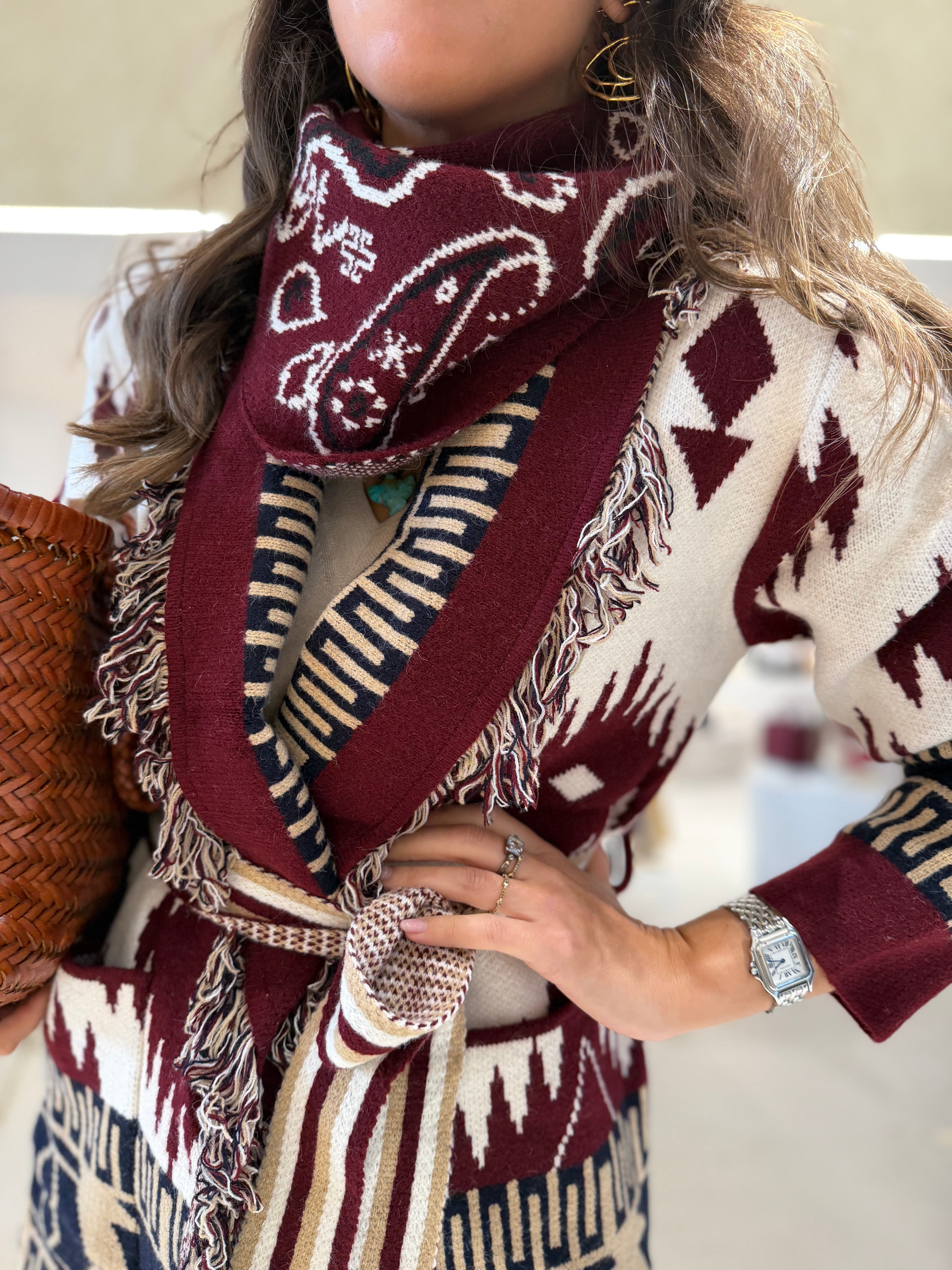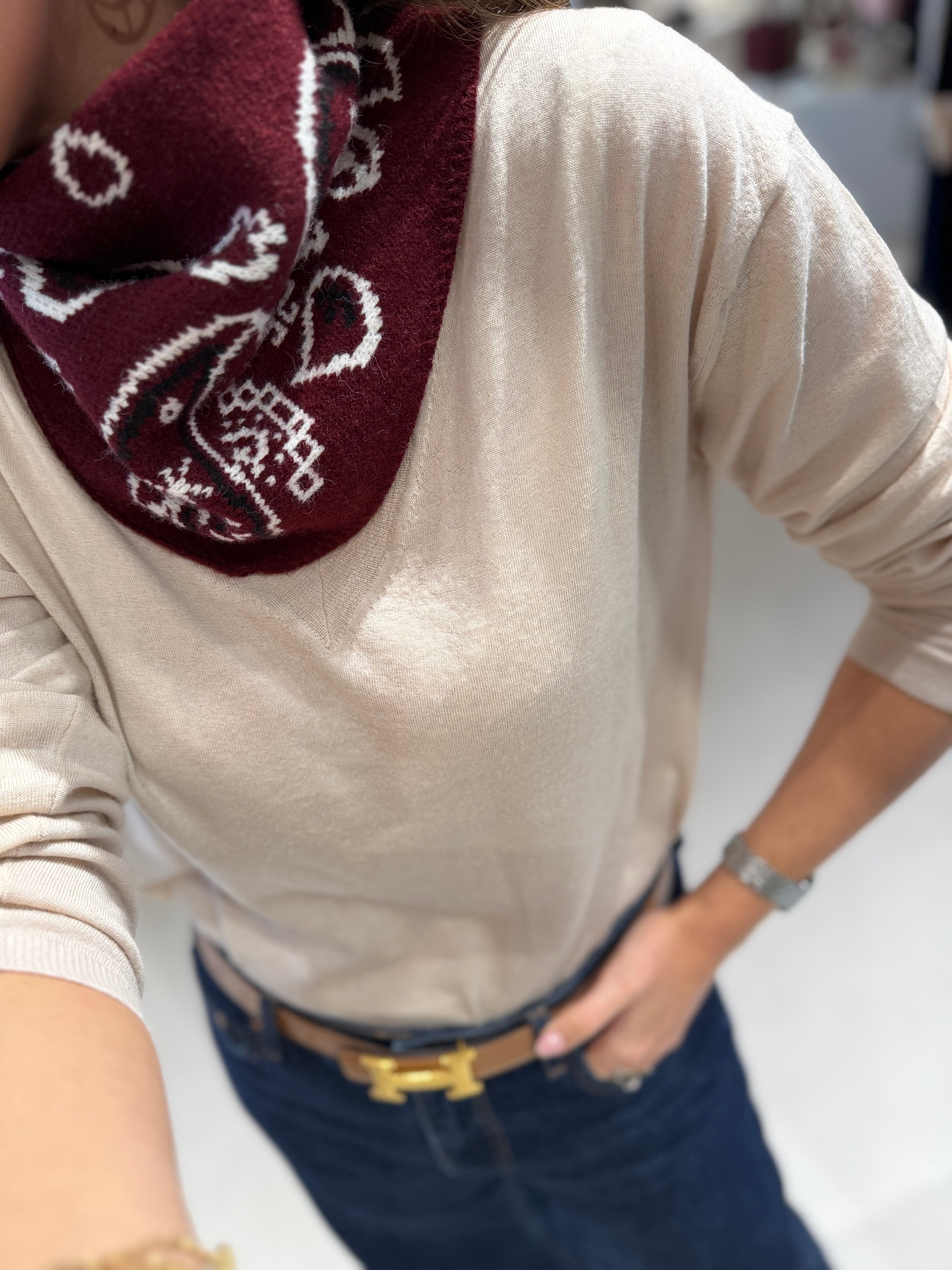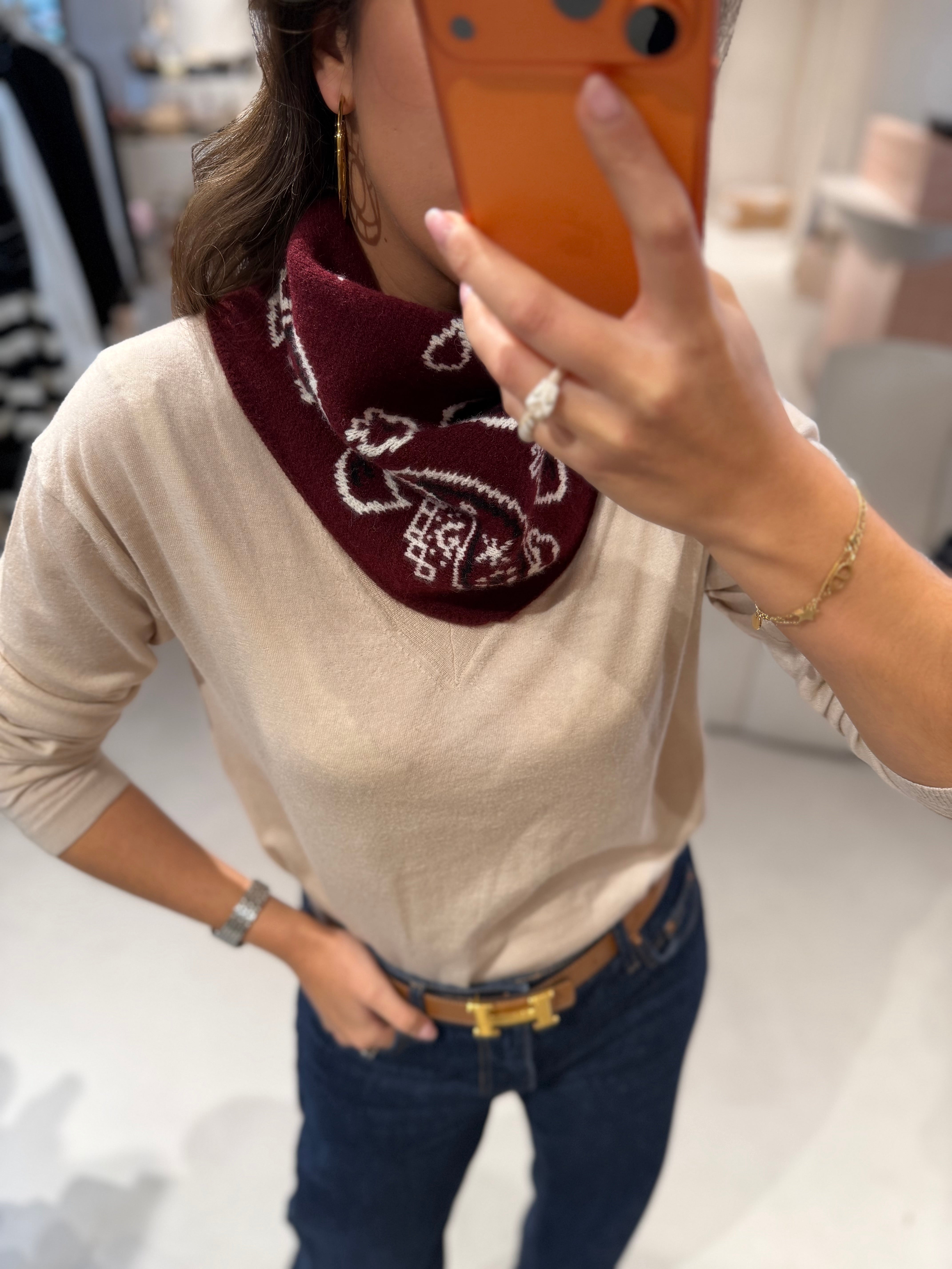 Bandana Triangular Malha com Caxemira Bordeaux | VIOLETA