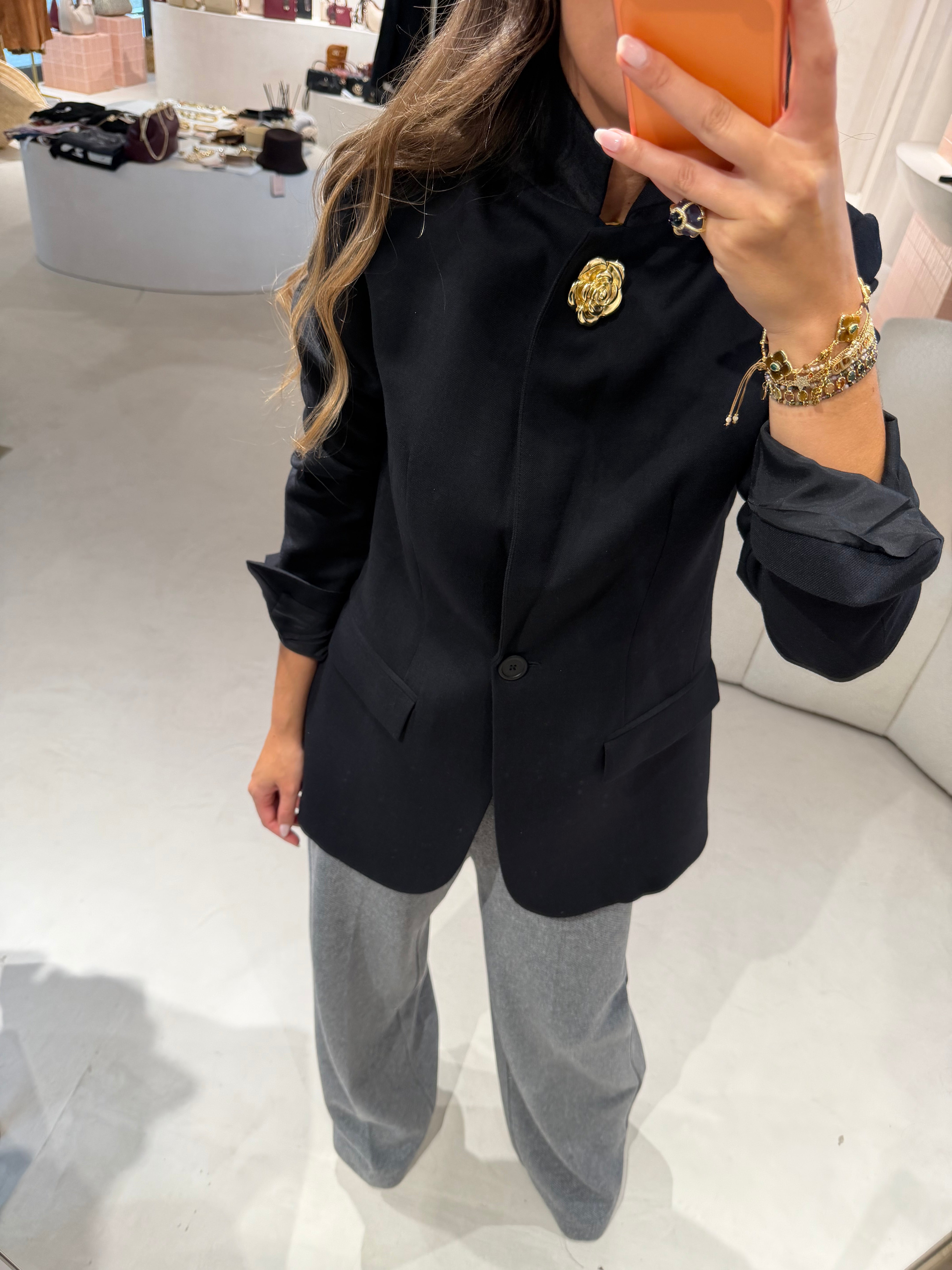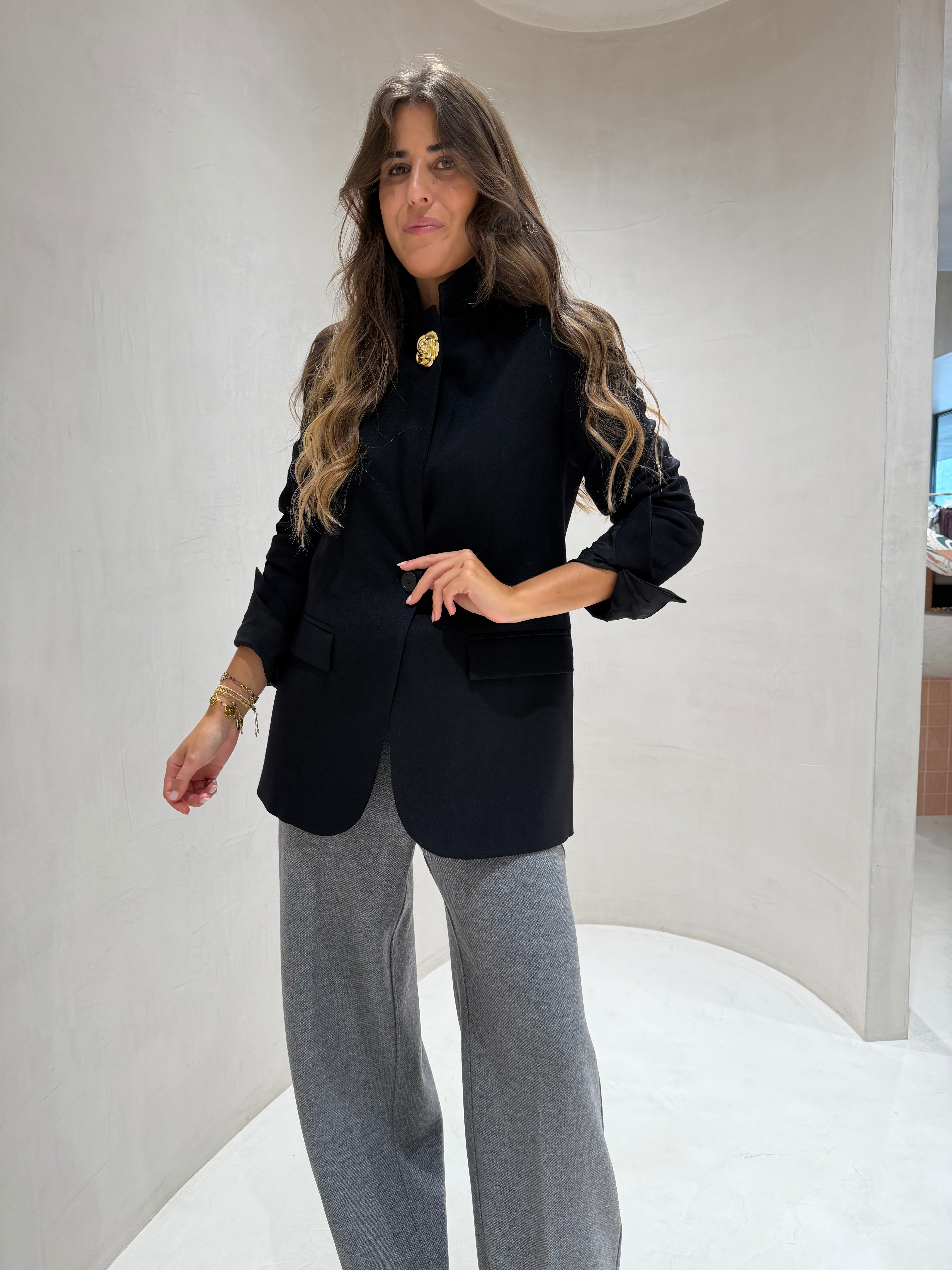 Blazer em flanela com corte regular e detalhe de bolsos com aba. Decote em V e abotoamento simples para um look elegante e versátil. Conforto premium com acabamento.