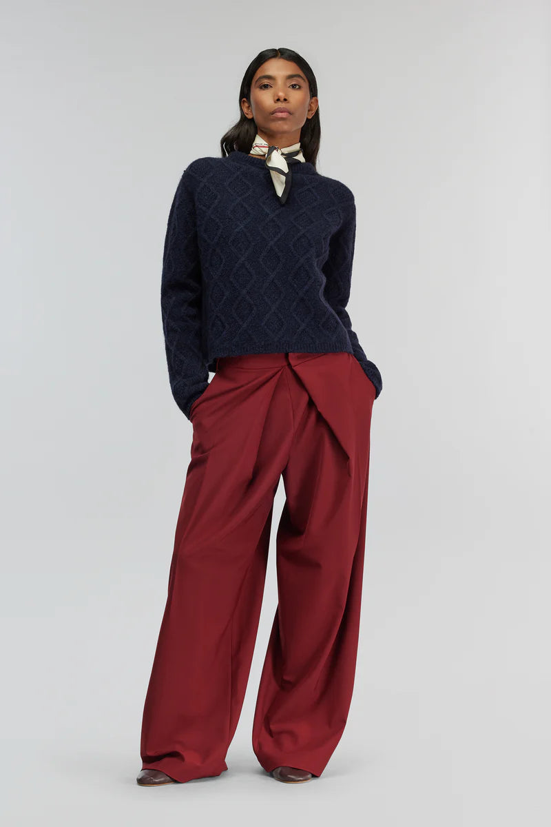 Calça em Lã Bordeaux com Pinças Frontais Vivienne | SEMICOUTURE
