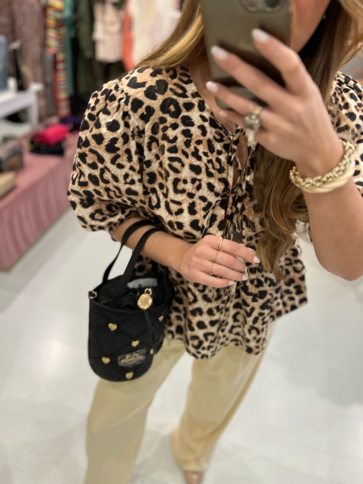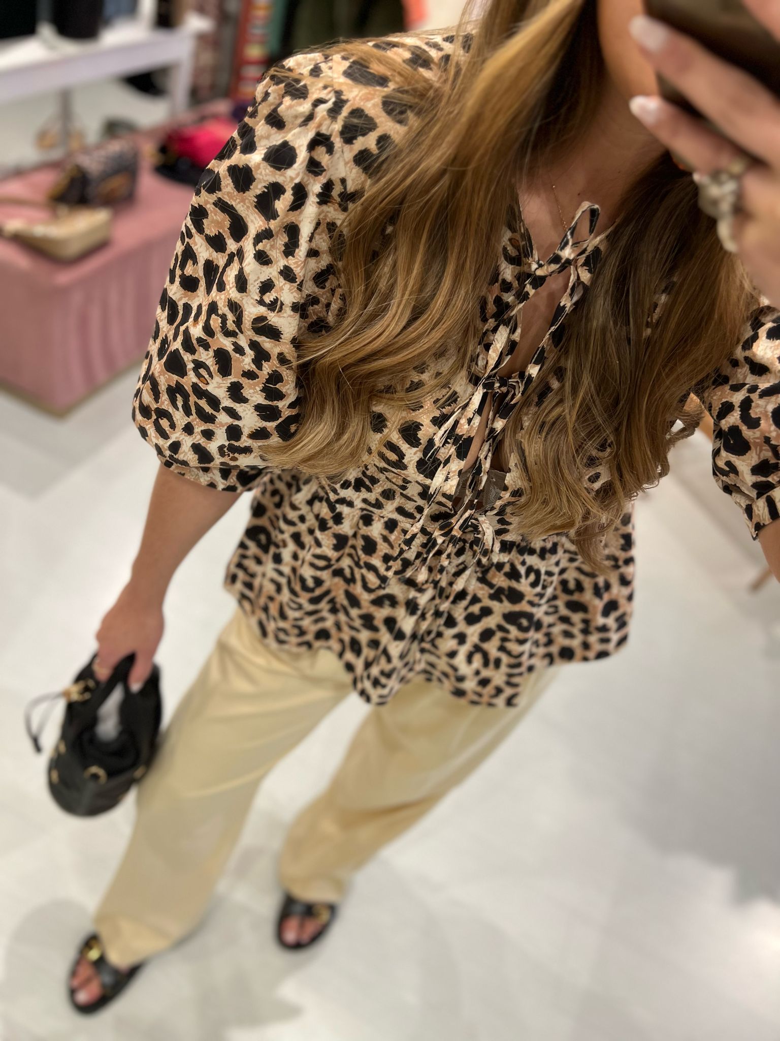 A modelo mede 1,73m e está a vestir o tamanho M.