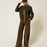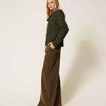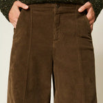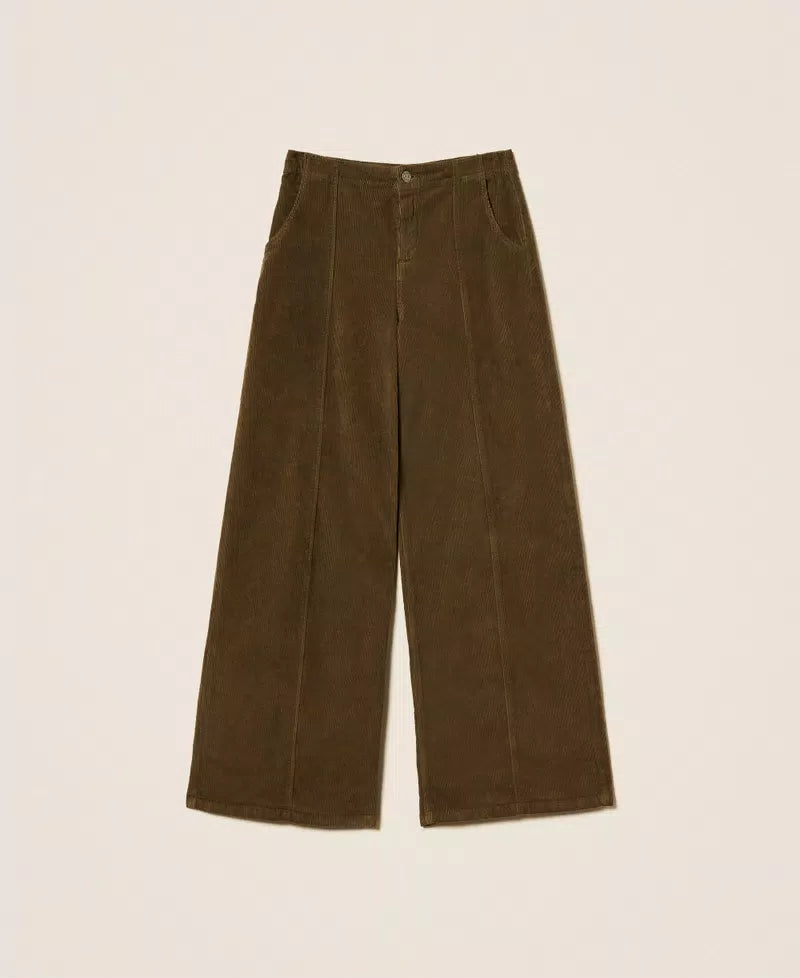 Calças em veludo cotelê de corte amplo (“wide leg”) que abraçam a silhueta com elegância e conforto. A textura marcante do corduroy confere profundidade visual, enquanto a cintura alta e o corte fluido criam alongamento. Detalhes como pregas frontais sutis e bolsos funcionais equilibram estilo e usabilidade. Versáteis, ficam impecáveis com camisarias estruturadas para o dia ou camisolas oversized e botas nos looks de outono/inverno.