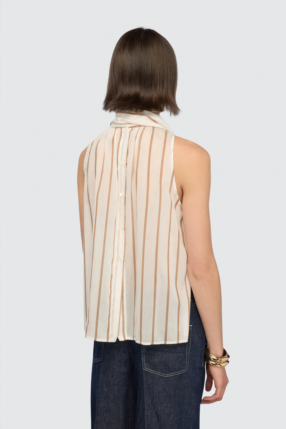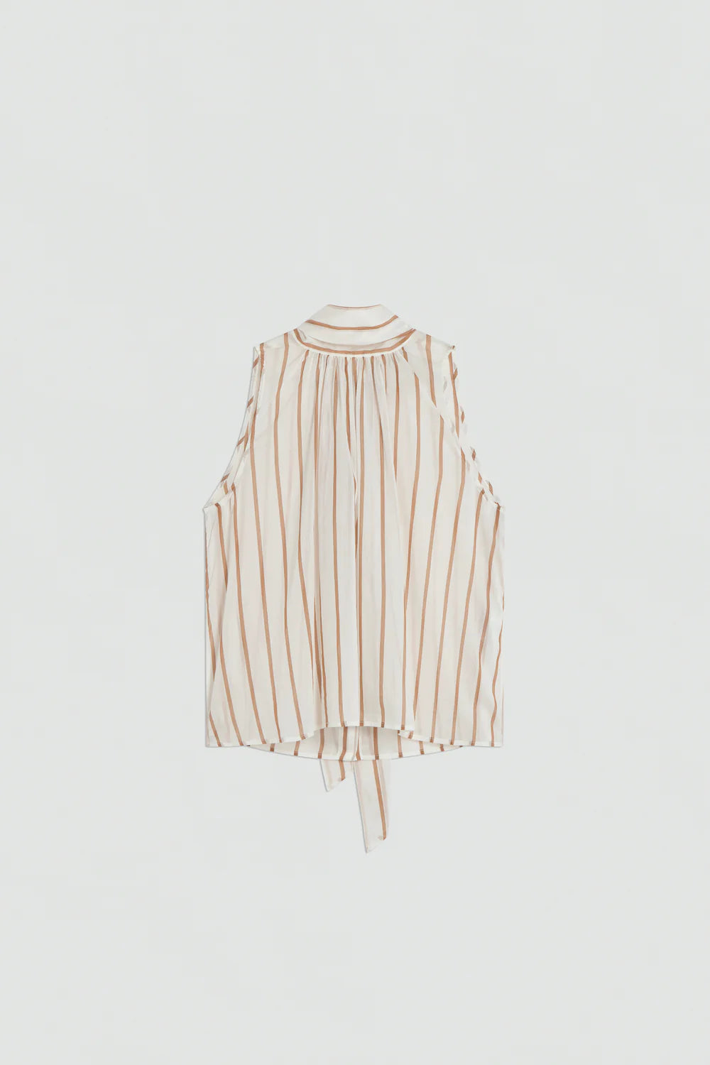Camisa em cotton muslin às riscas (white & jute stripe) com um toque contemporâneo e espírito leve, combinando conforto e estilo urbano com elegância italiana. A silhueta regular fit oferece um caimento fluido que veste de forma natural, enquanto a gola alta (stand‑up collar) acrescenta um detalhe distintivo e moderno. As mangas amplas conferem movimento e presença, equilibrando a estrutura clássica da camisa com um toque atual.