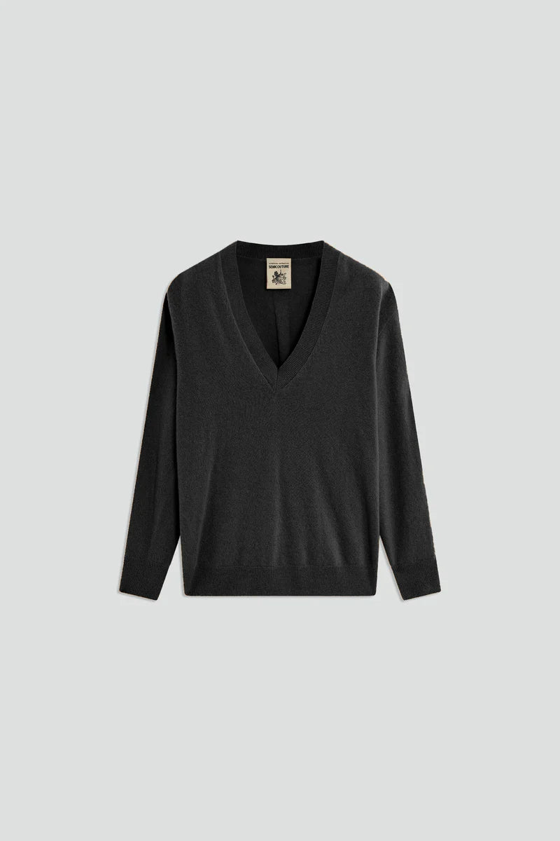 Camisola em malha de lã e caxemira Semicouture em preto de corte regular, gola em bico e punhos canelados.
