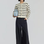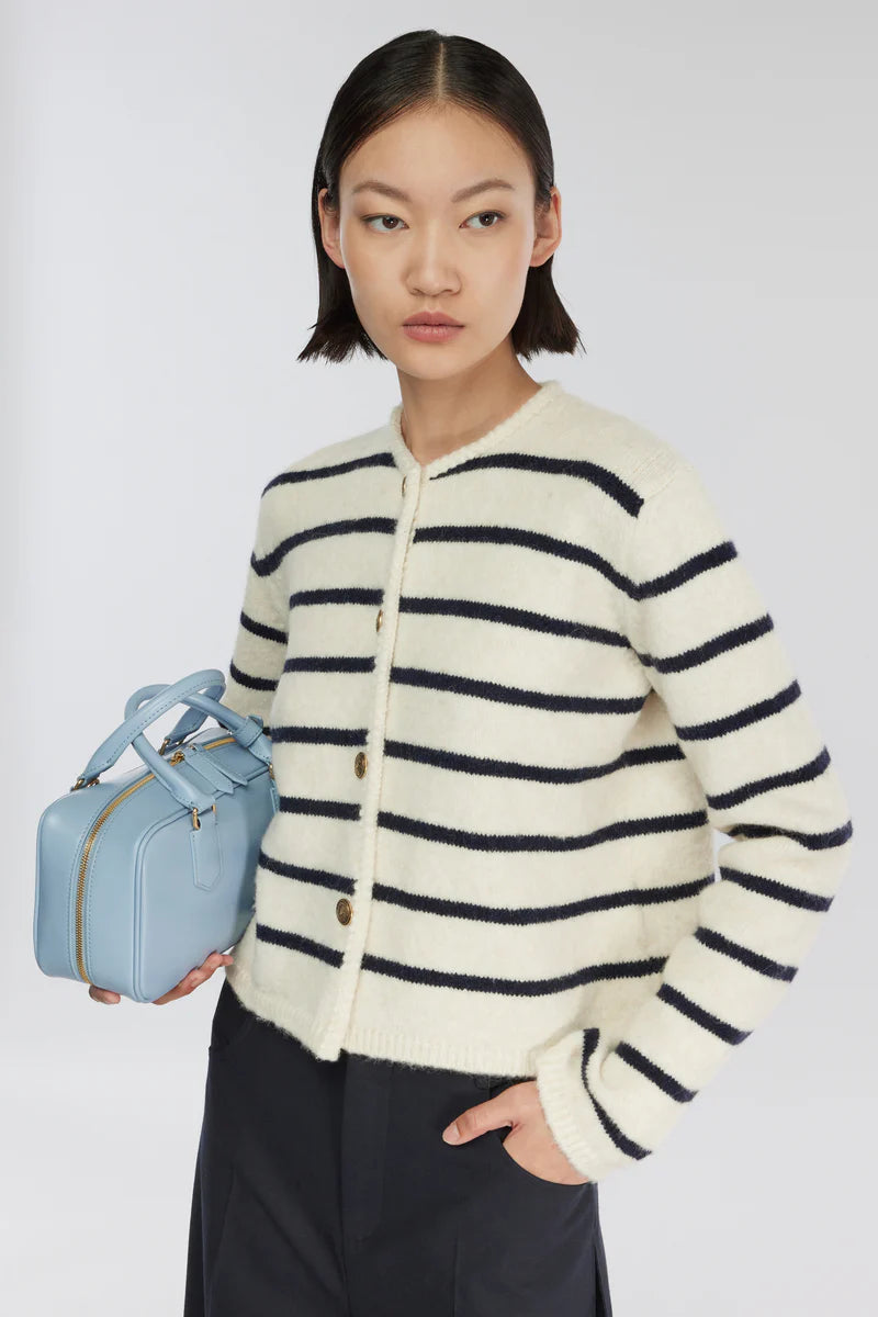 Cardigan em Malha de Alpaca com Riscas Azuis Lea | SEMICOUTURE