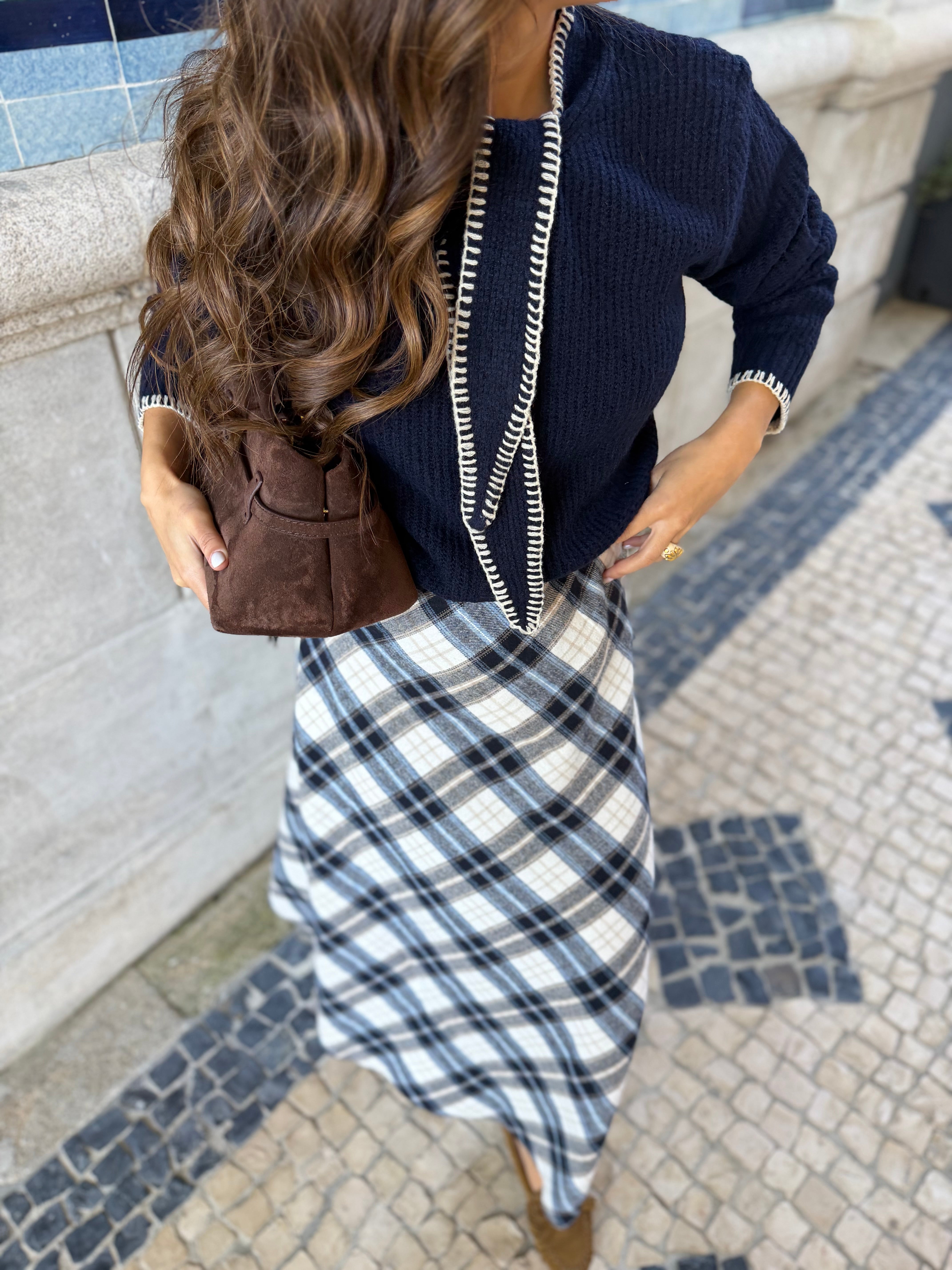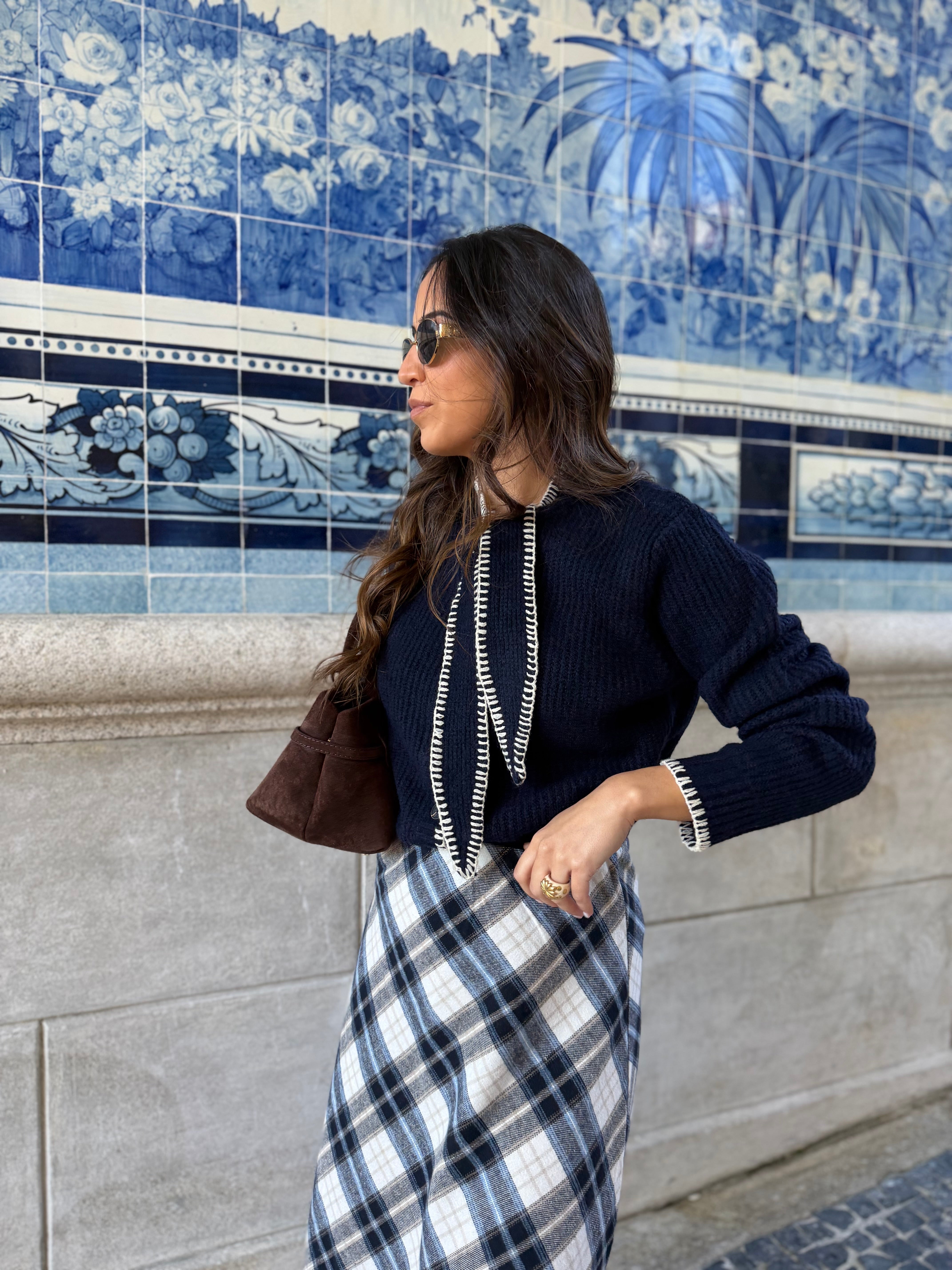 Cardigan Malha Azul Marinho com Laço | VIOLETA STORE