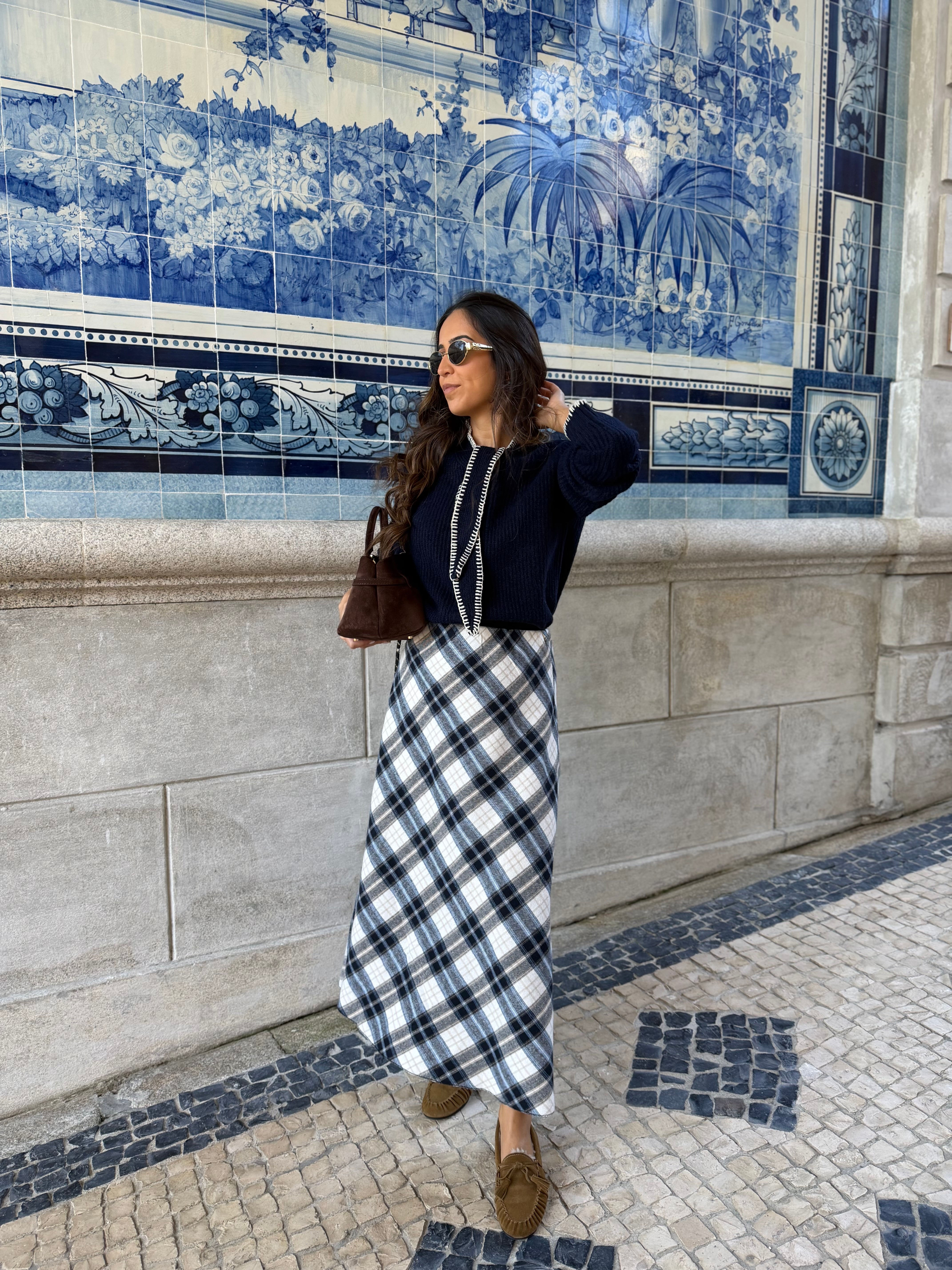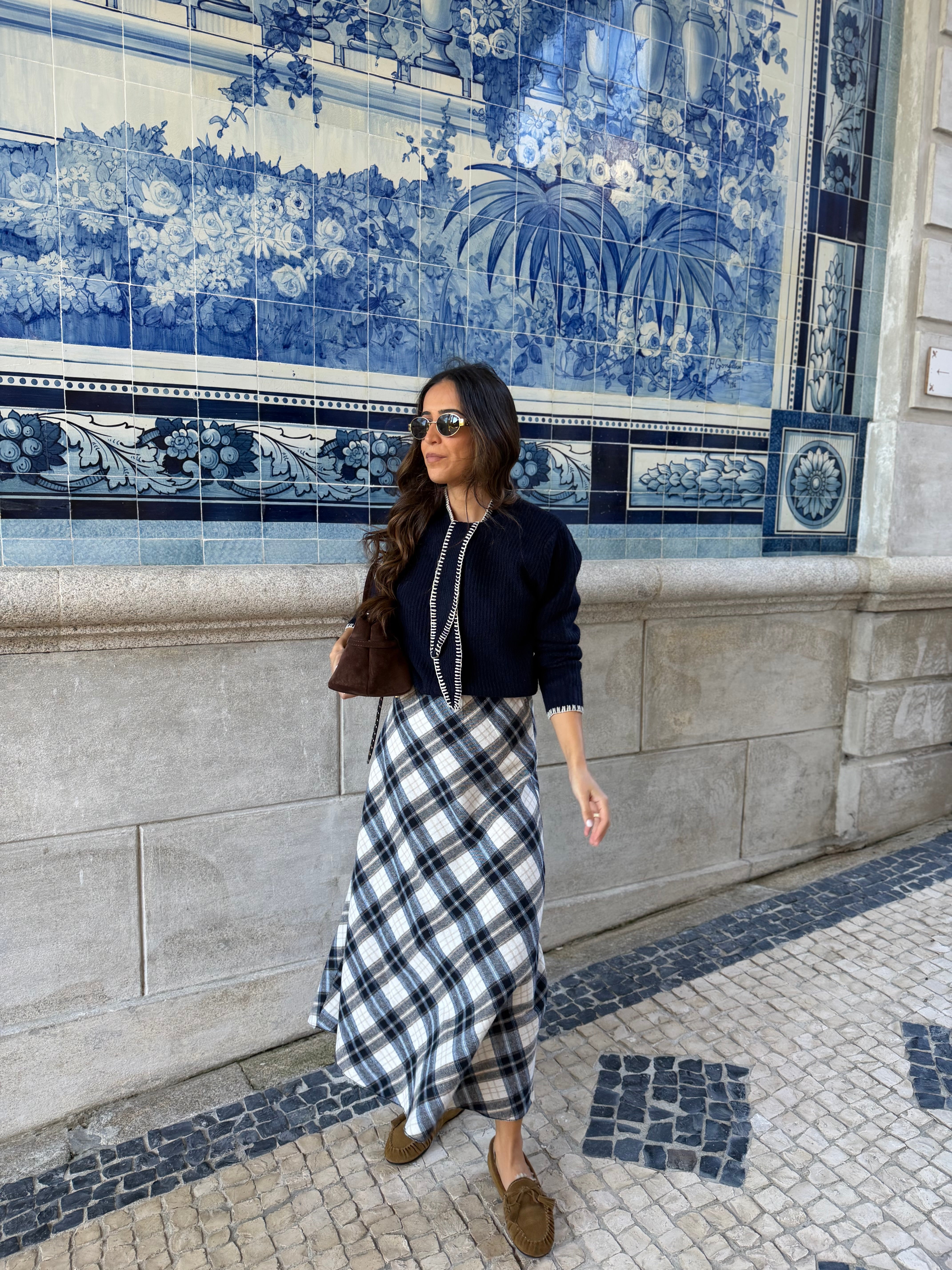 Este cardigan de malha combina charme e feminilidade com um design delicado e confortável. Tem um colarinho tipo mandarim (alto), laço frontal que confere um toque romântico, e ribagens contrastantes em branco que realçam os detalhes. As mangas longas tornam-no perfeito para usar nos dias mais frescos, seja para um look casual ou no trabalho.