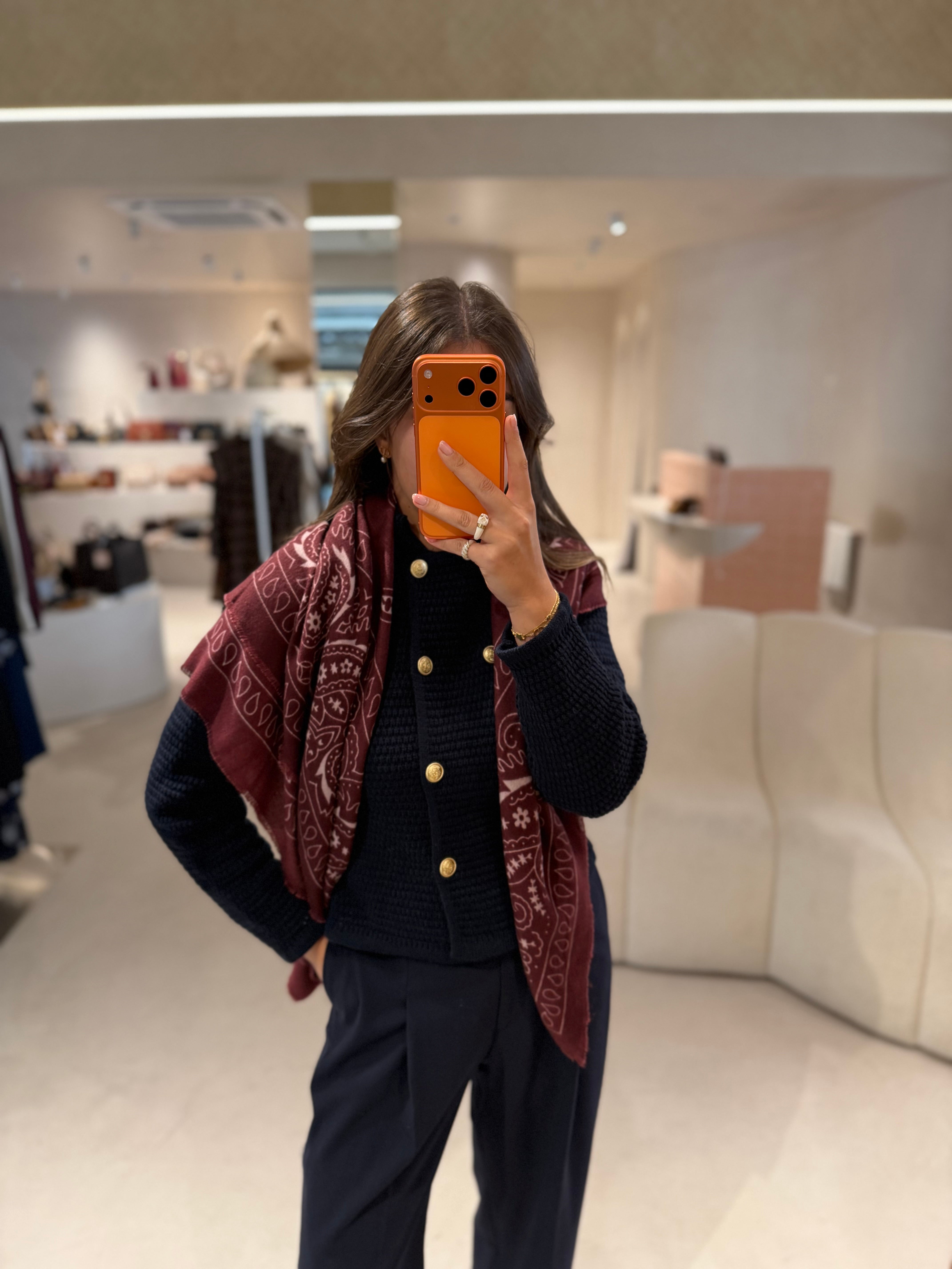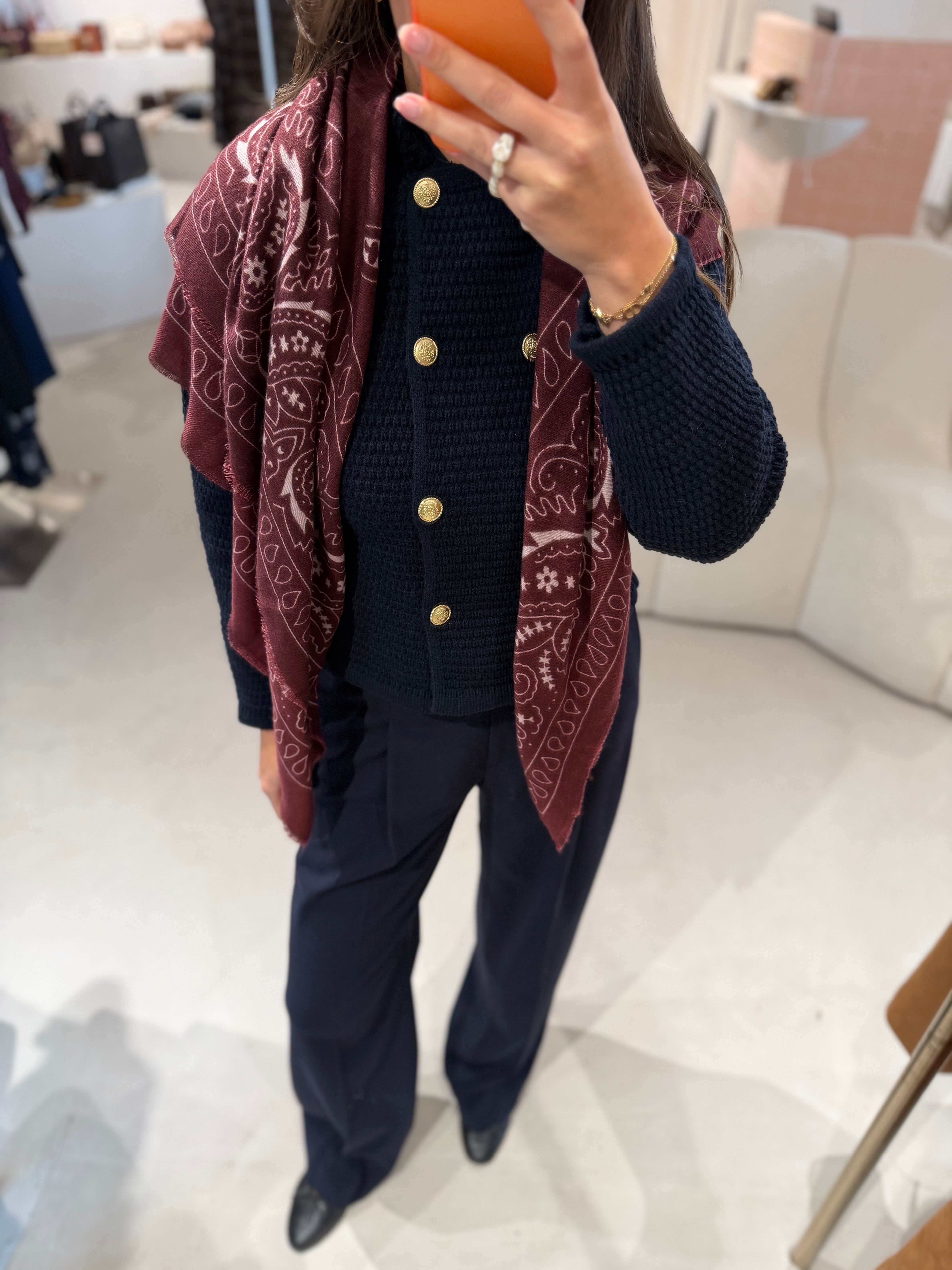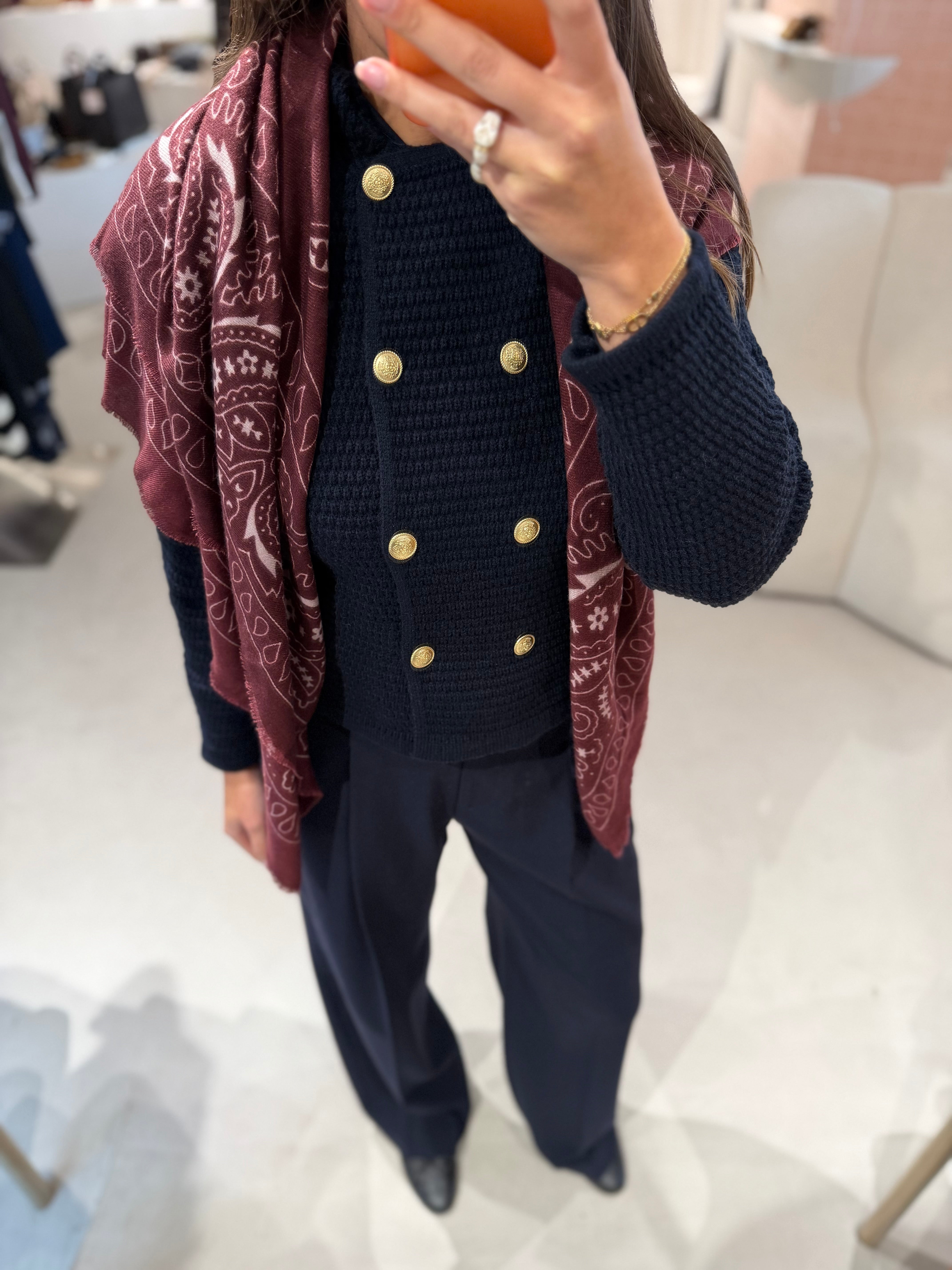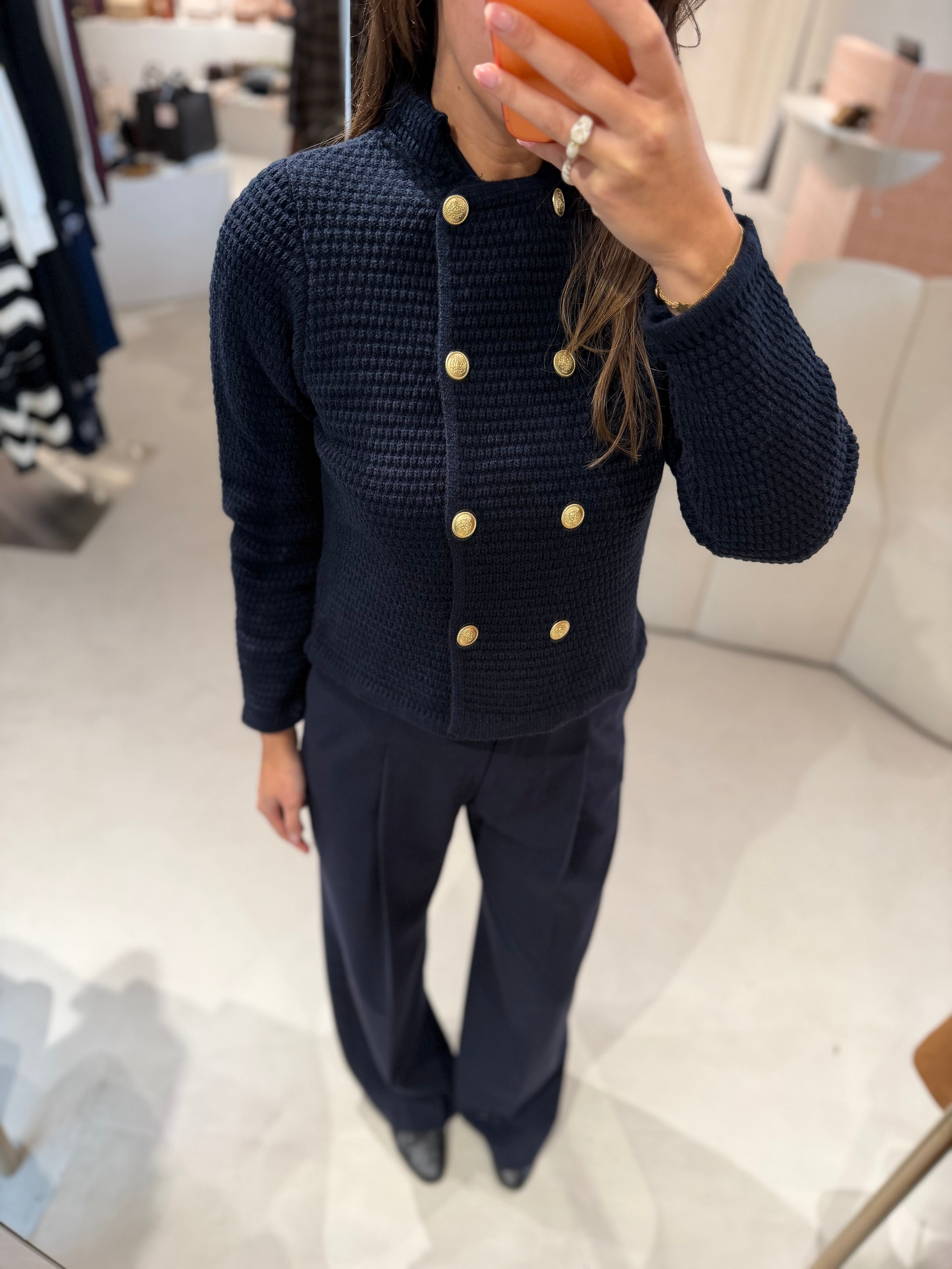 Casaco de malha feminino com gola alta, botões dourados e corte estruturado que valoriza a silhueta. Confeccionado em malha quente com toque macio, combina sofisticação e conforto, ideal para o outono/inverno. Um essencial versátil e atemporal no guarda-roupa.
