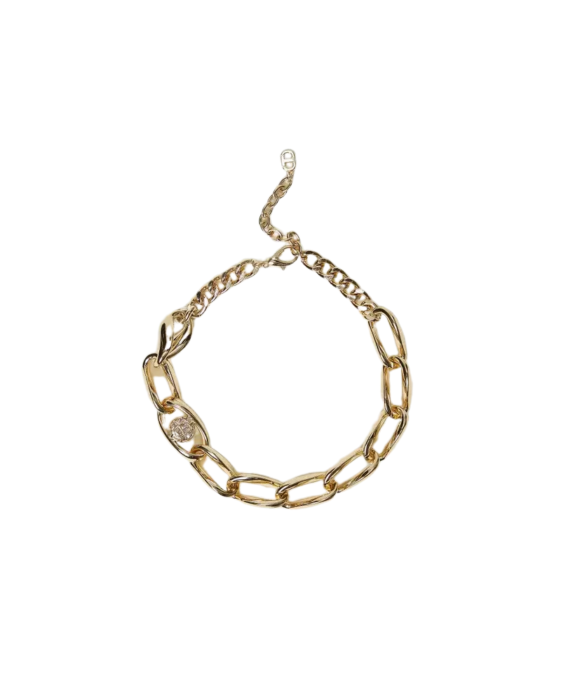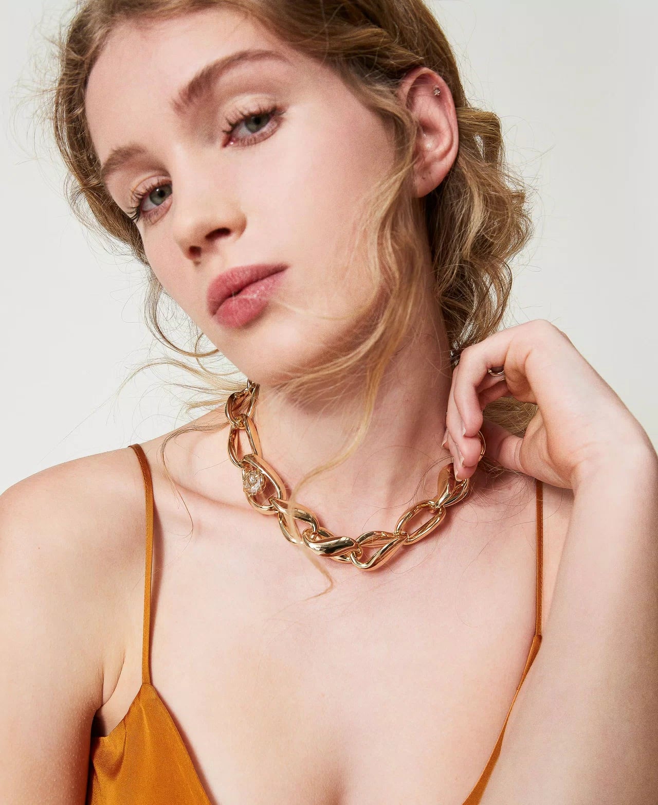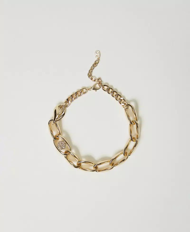 Gargantilha em corrente dourada TWINSET com logotipo em strass.