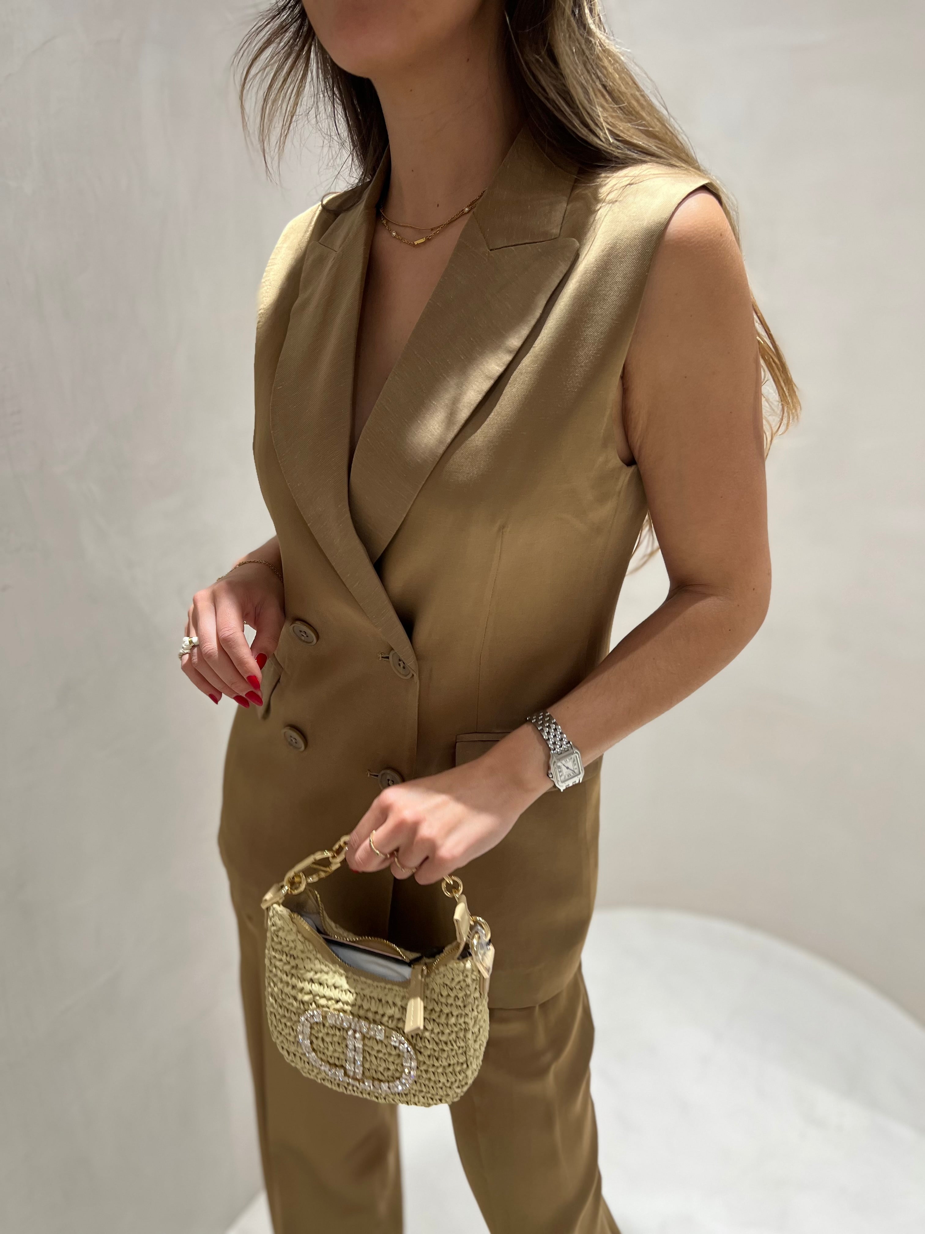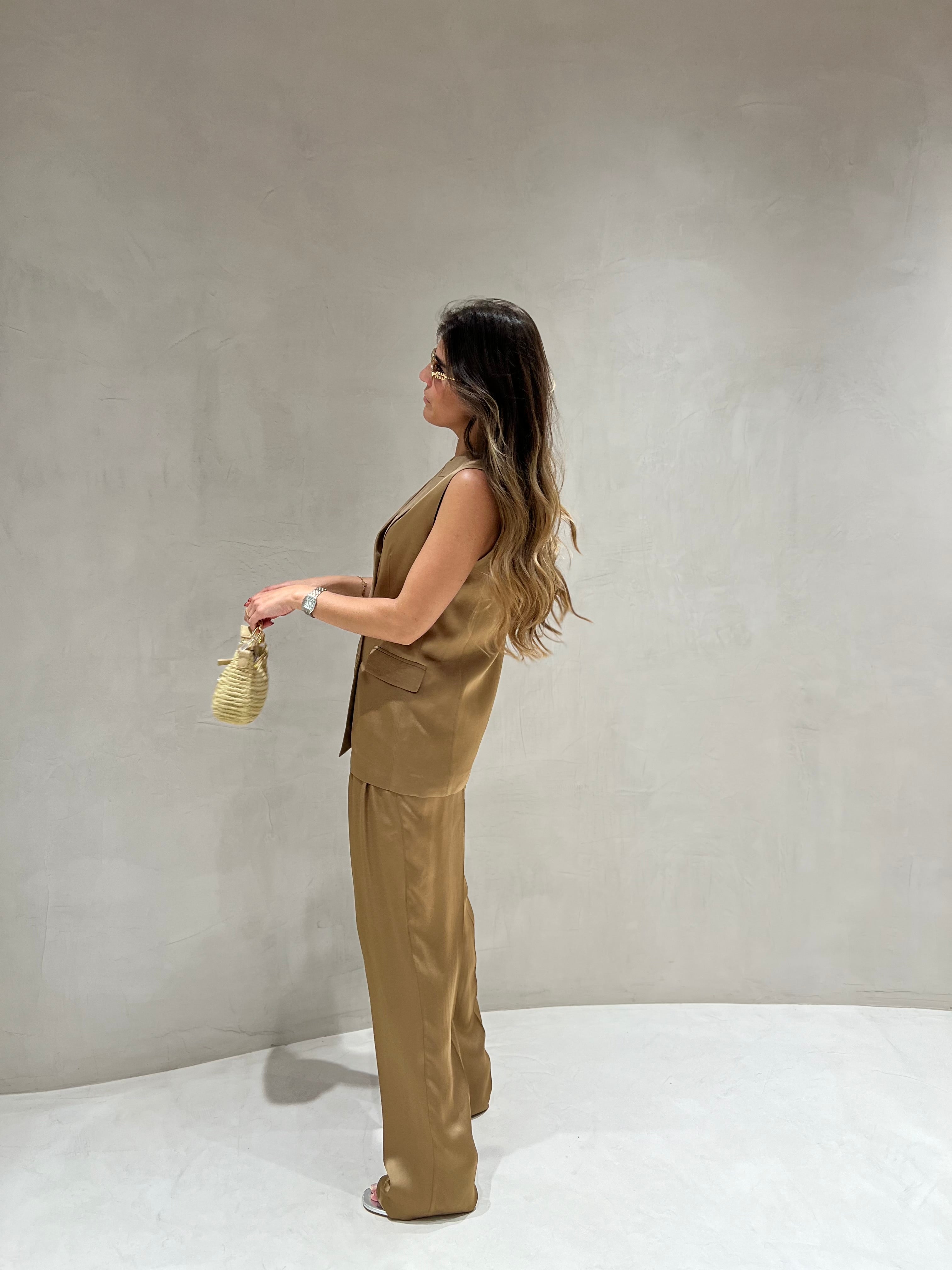 Colete TWINSET acetinado em kaki com golas de lapela, fecho de trespasse com botões e bolsos de chapa à frente.