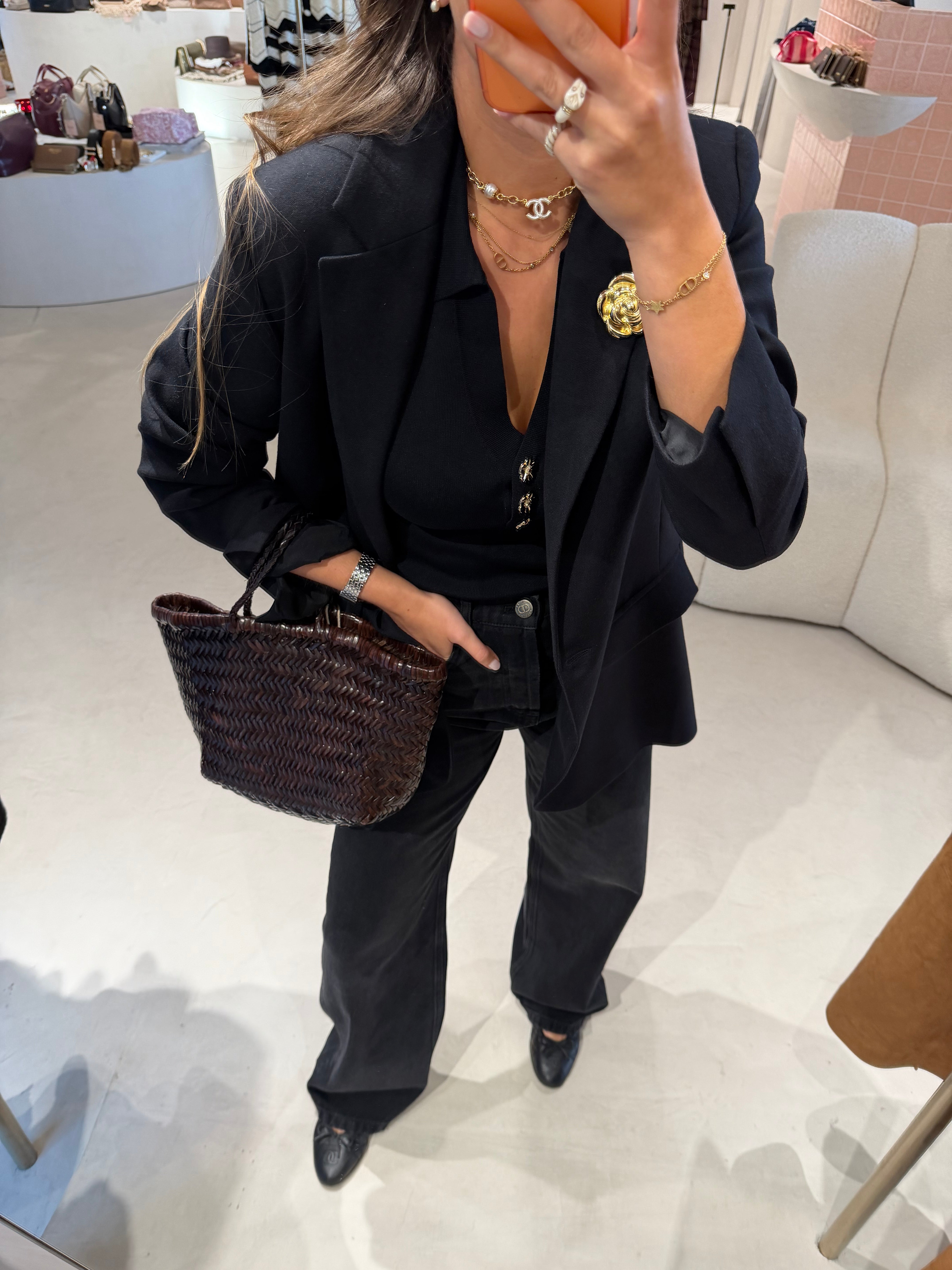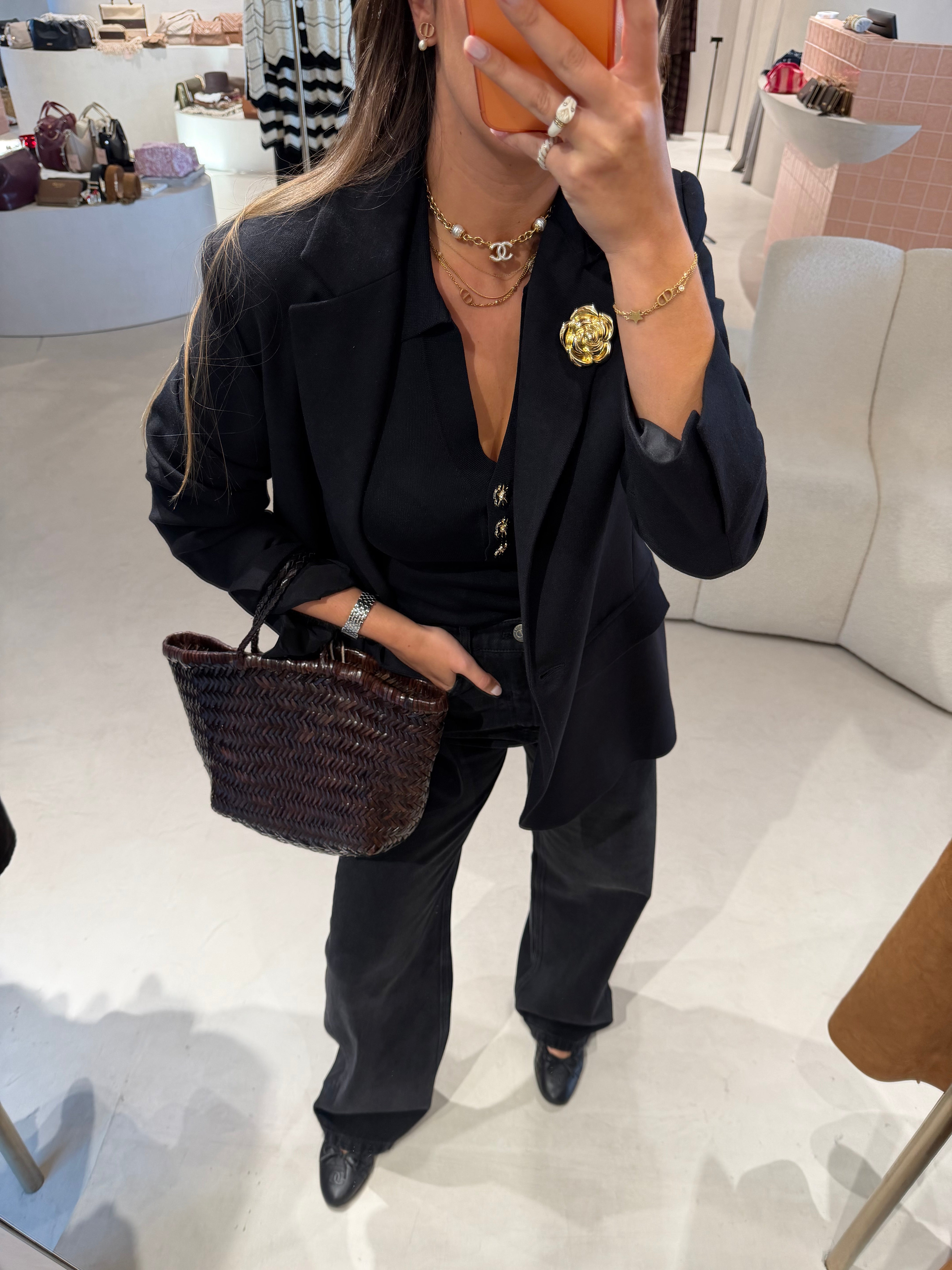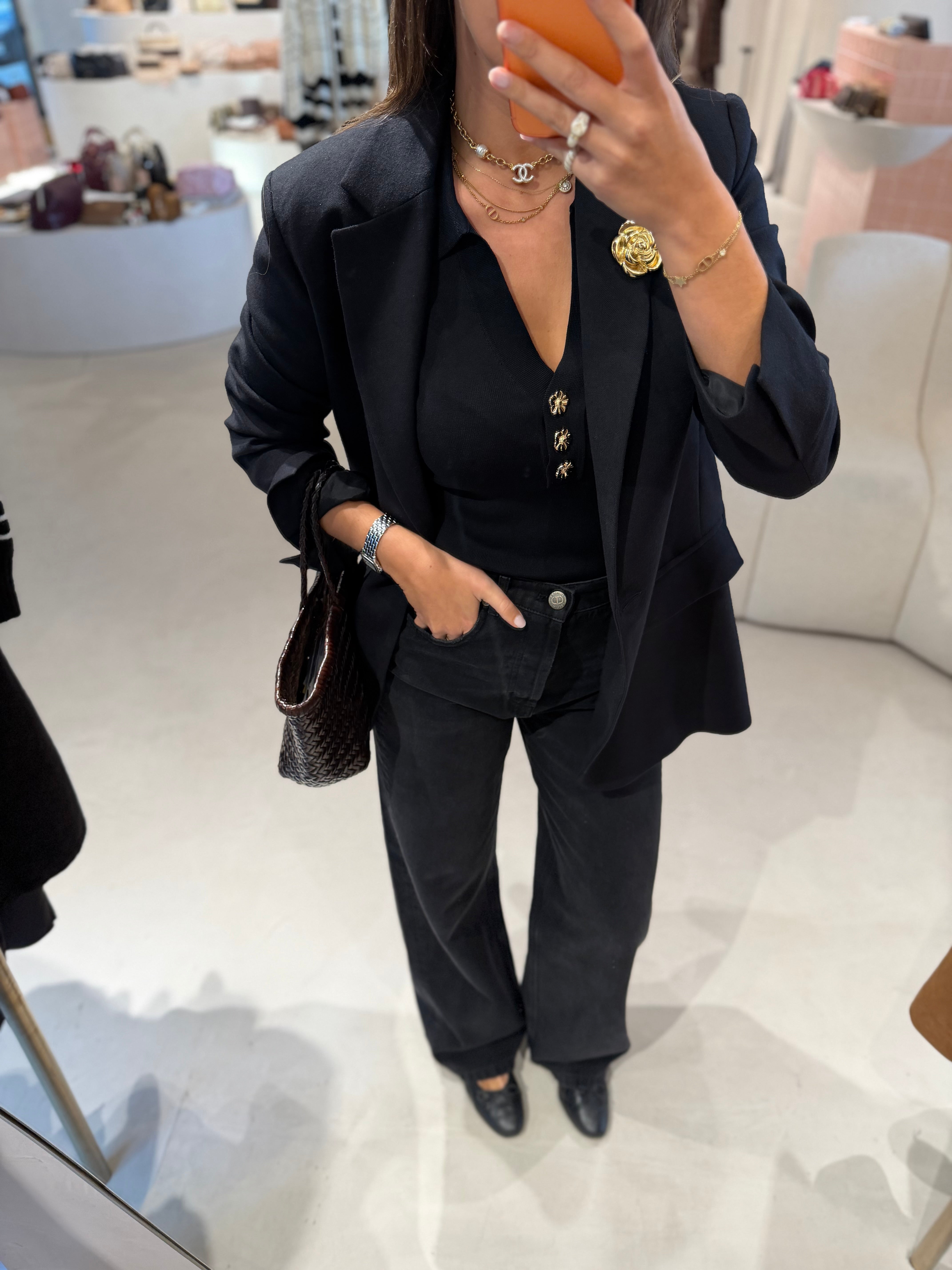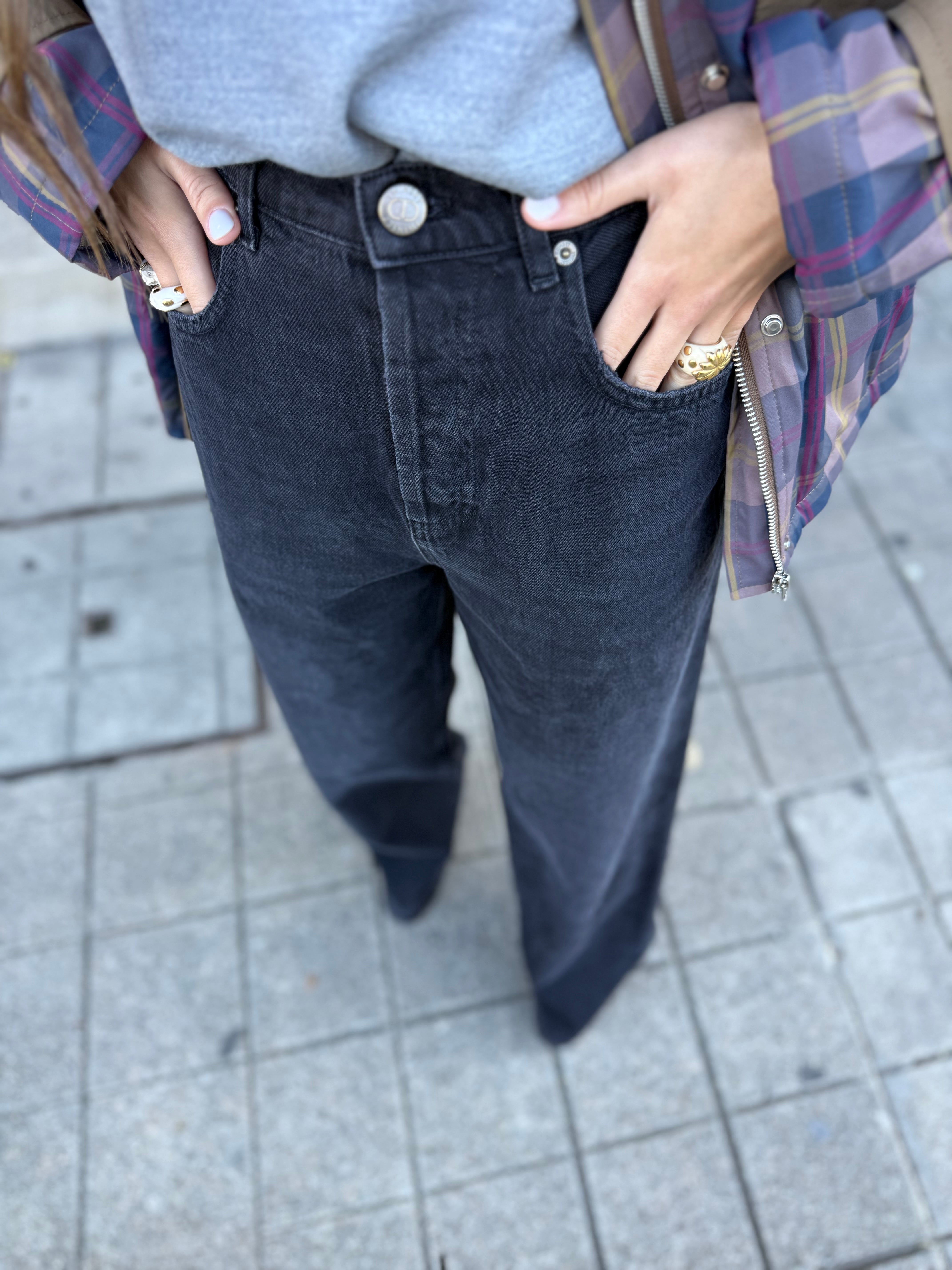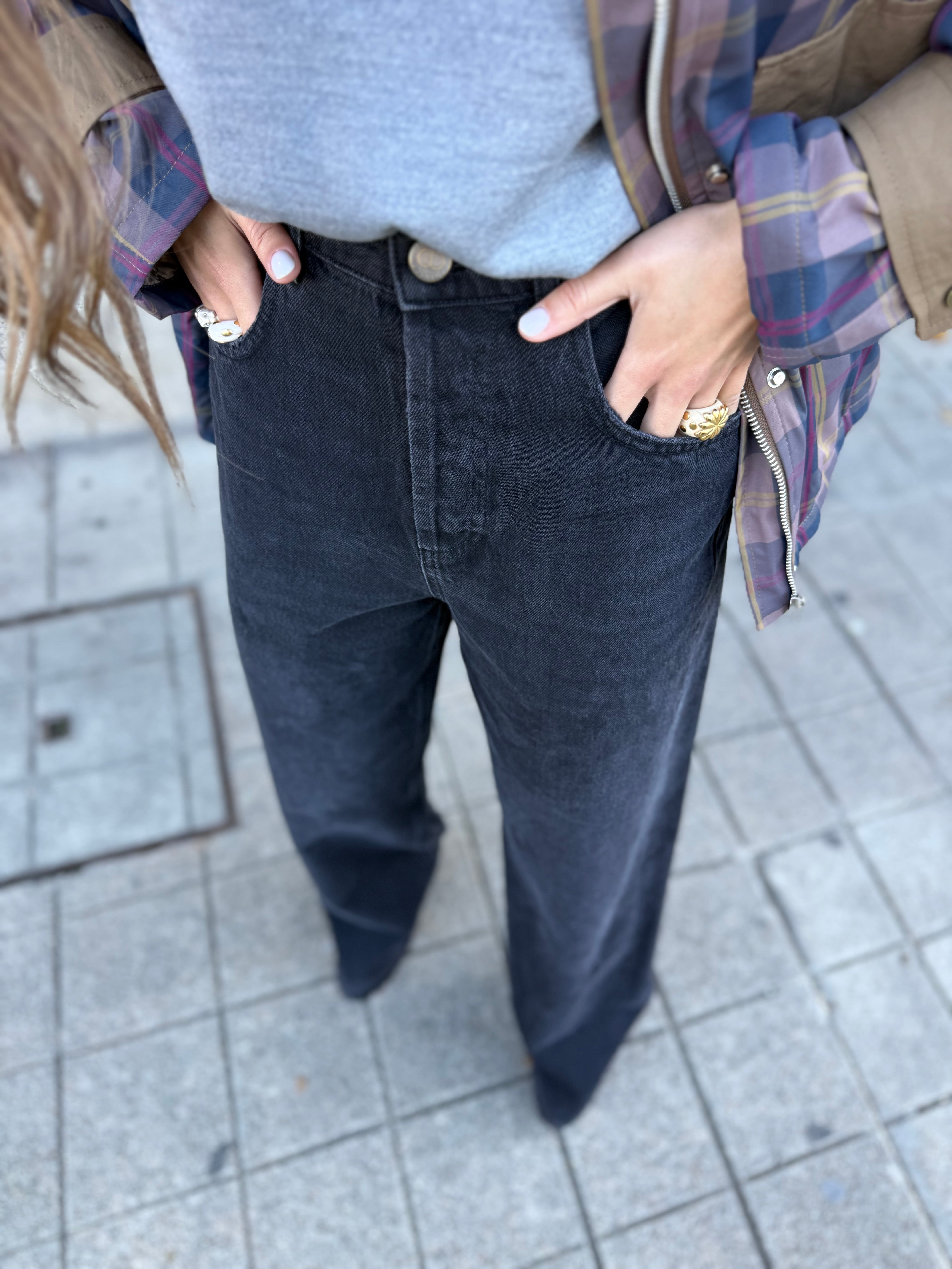 Jeans Twinset em algodão preto com corte wide leg e cintura alta. Modelo de silhueta fluida que alonga as pernas e agrega sofisticação. Combina com blusas estruturadas ou tops justos e saltos finos para um look elegante e moderno.