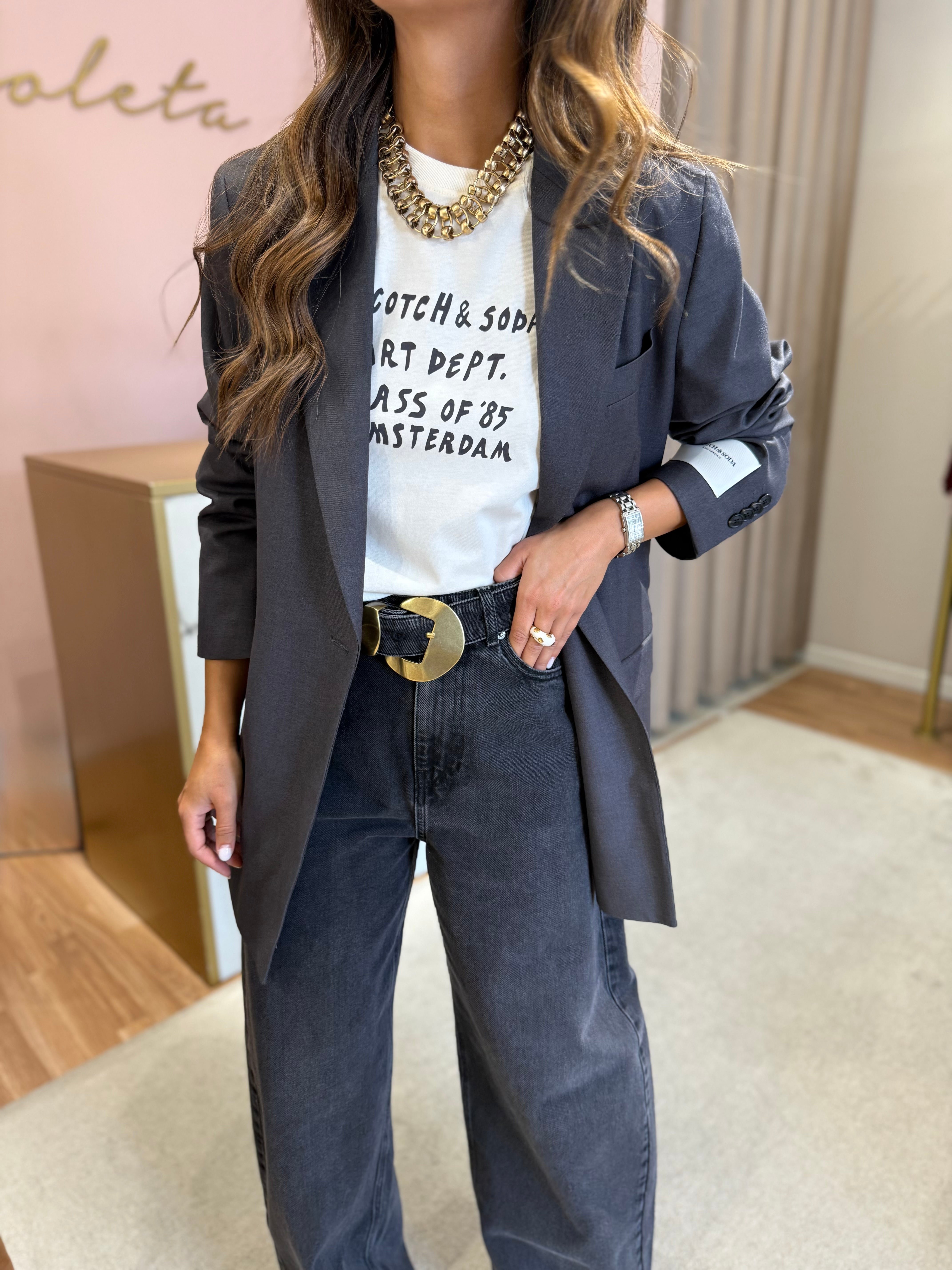 Jeans Cinza Wide com Cinto e Maxi Fivela | TWINSET