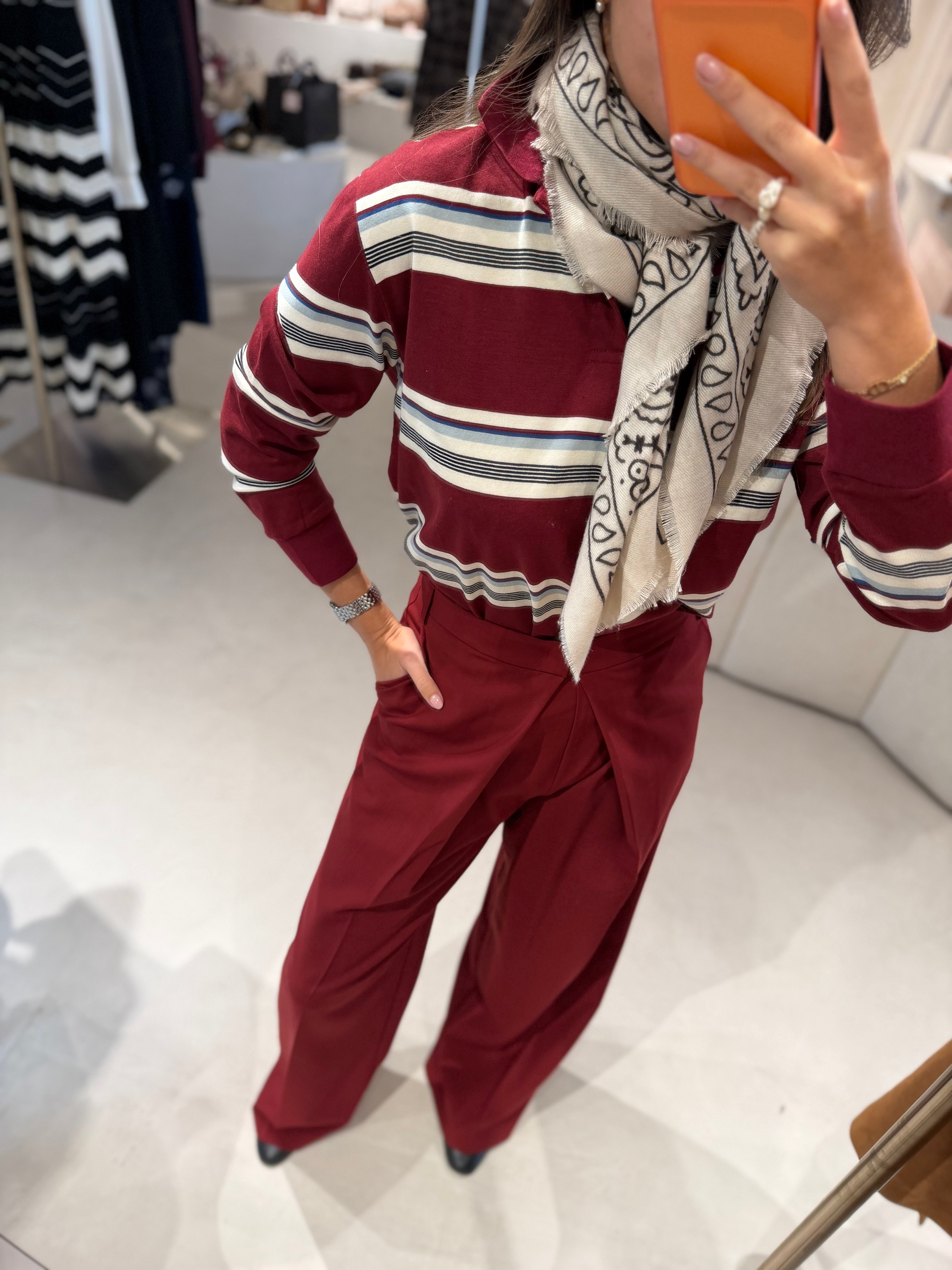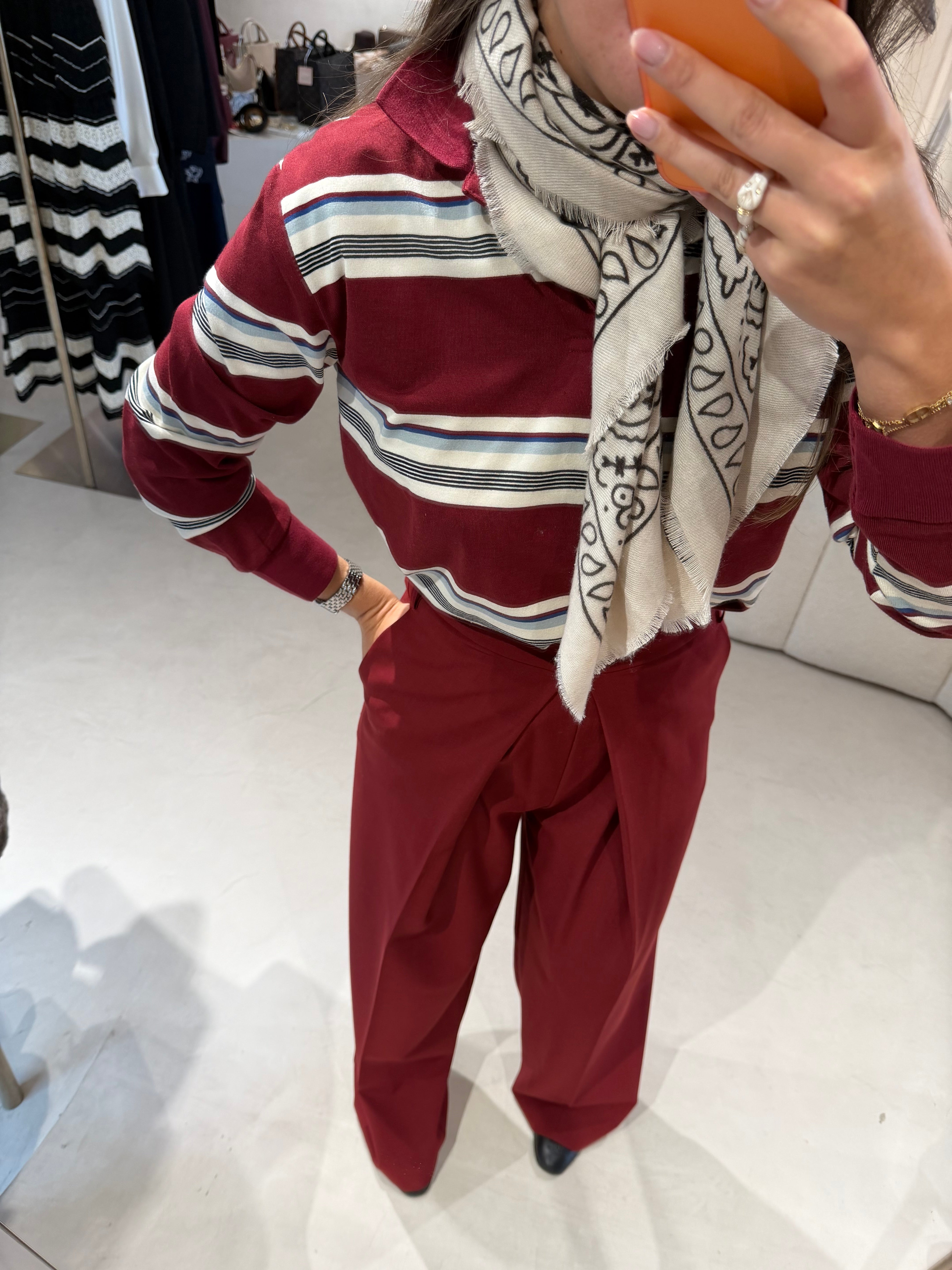 Polo confeccionado em malha fina e suave ao toque, que garante conforto e leveza ao vestir. Apresenta um padrão de riscas que adiciona um toque moderno e versátil à peça. O corte ligeiramente oversized confere um caimento descontraído e atual, mantendo a elegância característica do modelo polo. Possui gola clássica com abotoamento frontal curto, ideal para composições casuais ou smart-casual.