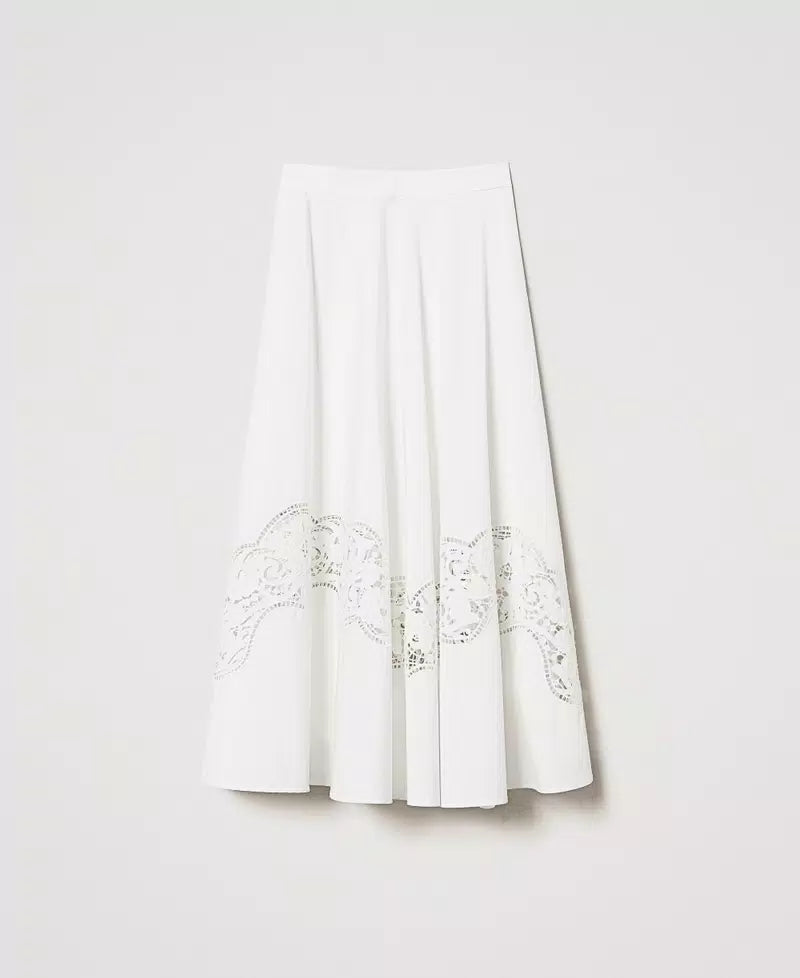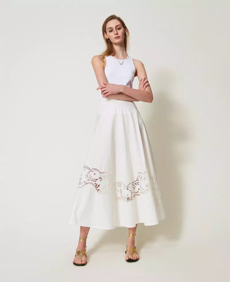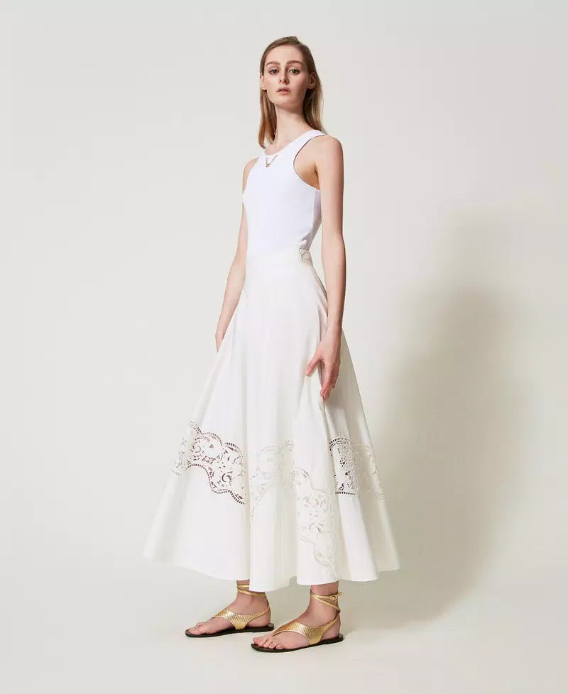Saia de algodão TWINSET com bordado inglês, de corte evasê com fecho lateral invisível.